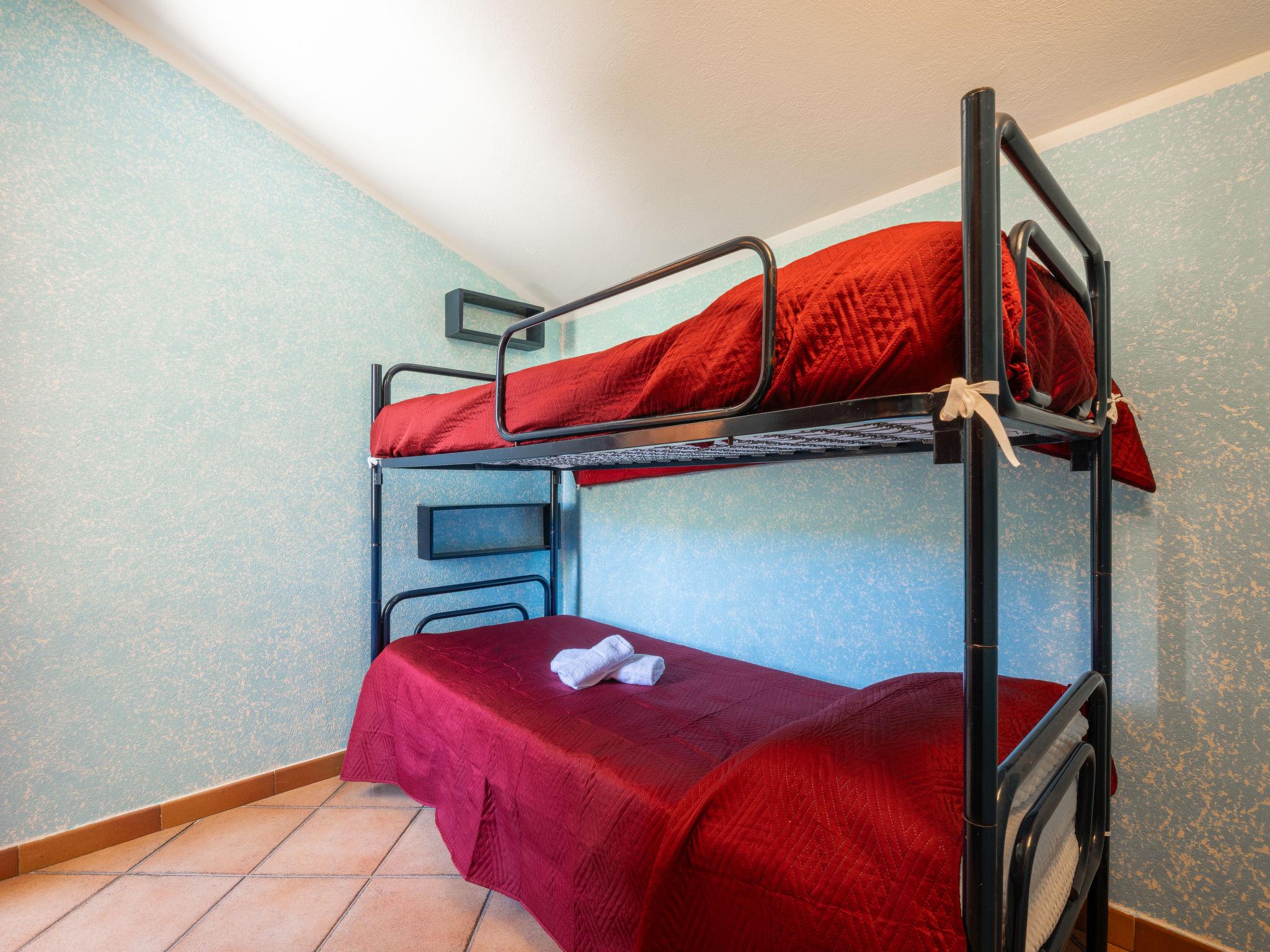"Luli", 4-room house 80 m2 on 2 levels, on the ground floor. Simple and comfortable furnishings: living/dining room with dining table, satellite TV and fan. Exit to the veranda. Kitchenette (4 gas rings, kettle, electric coffee machine). Shower/bidet/WC. Upper floor: 1 room with 1 double bed. Exit to the balcony. 1 room with 1 x 2 bunk beds. Exit to the balcony. 1 room with 2 beds. Shower/bidet/WC. Air-conditioning, forced-air heating (extra). Heating not available in all rooms. Large patio roofed. Terrace furniture, barbecue. Panoramic view of the mountains and the countryside. Facilities: washing machine, children's high chair, baby cot (extra). Extra. IT111105C2000S1027