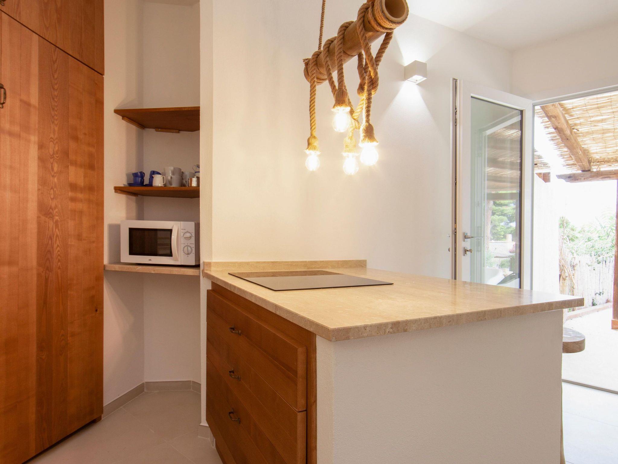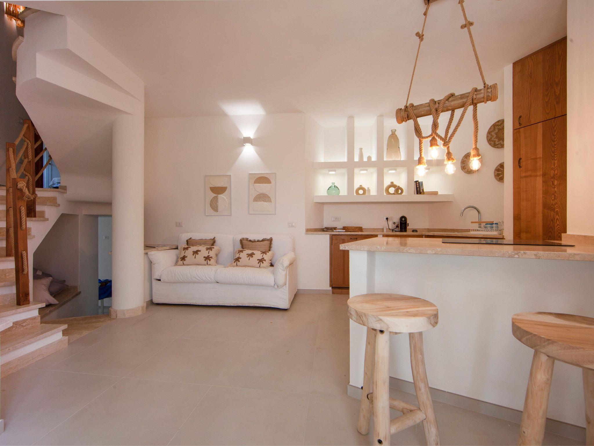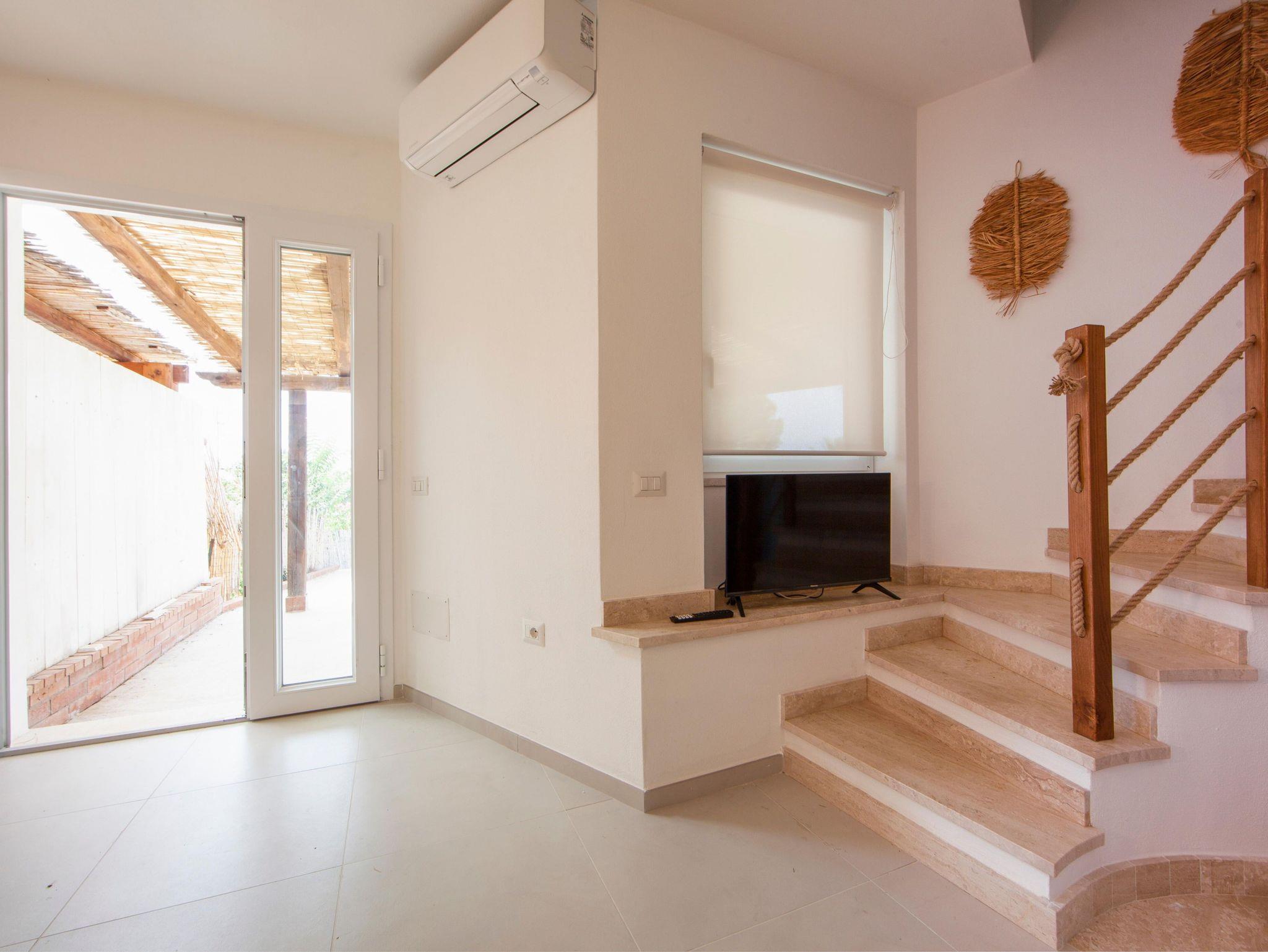 Bei der Renovierung dieser, auf drei Ebenen errichten Villa, wurde auf modernen Wohnkomfort und eine optimale Nutzung der vorhandenen Räumlichkeiten geachtet. So entstanden drei Schlafzimmer und drei Bäder, die allesamt auf verschiedenen Ebenen liegen. Das im Untergeschoss befindliche Schlafzimmer verfügt aufgrund der Zimmergröße über ein modernes Ausziehbett, sodass auch hier bequem zwei (nicht allzu große) Personen nächtigen können. Prunkstück der Villa ist aber ohne Frage der wunderschöne Außenbereich. Abgesehen von dem geschmackvoll angelegten, großen Garten, sorgen die große Terrasse mit ihrem Blick auf das nahe Meer, ein schöner Grillplatz und die obligatorische Außendusche für pure Sommerfreuden.
