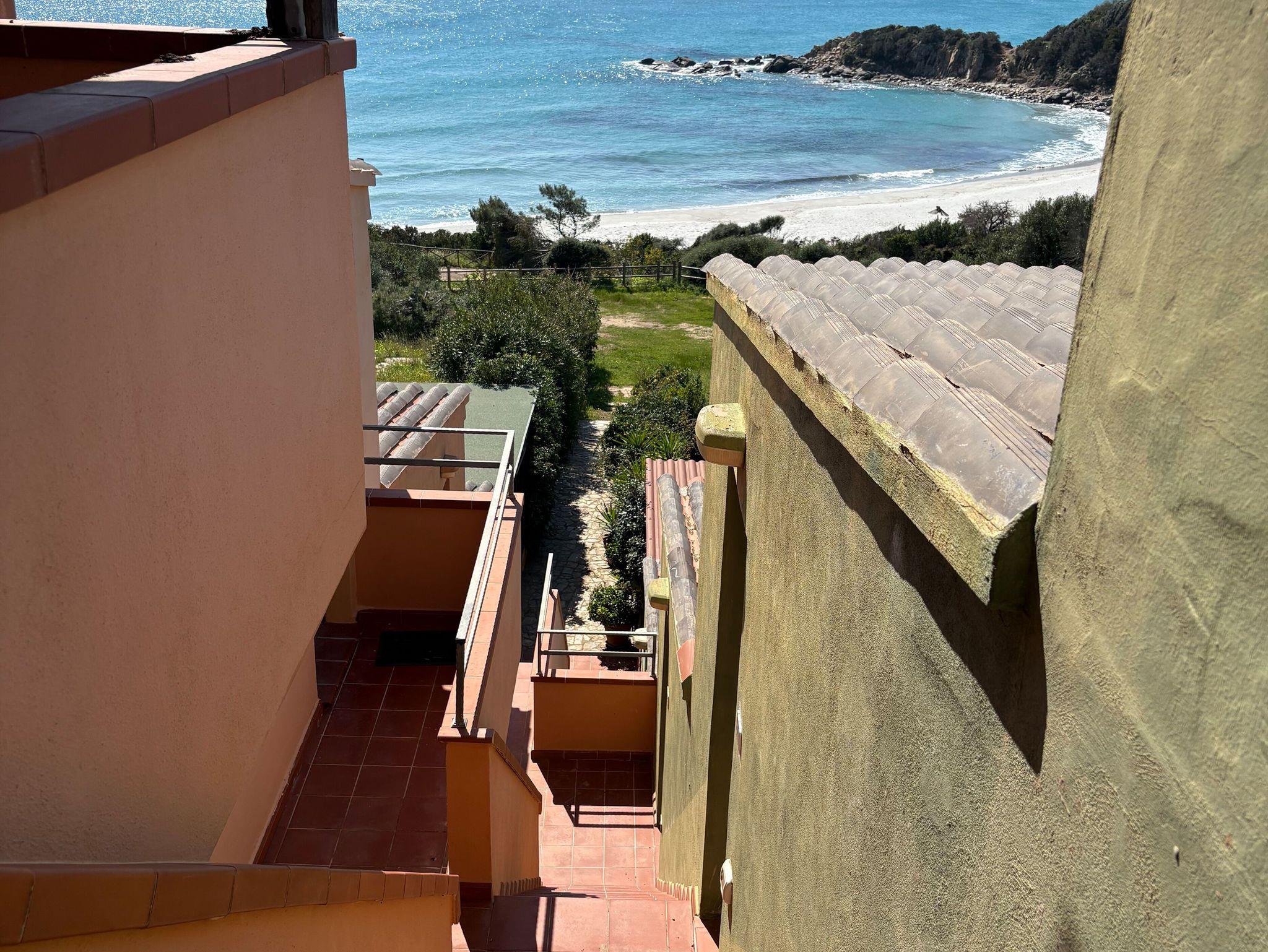 Das oberste in einer kleinen Appartemtreihe ist unser Haus über der Traumbucht. Über den hinter dem Haus gelegenen privaten Parkplatz gelnagt man mühelos über ein paar Stufen zum Eingang der Wohnung.