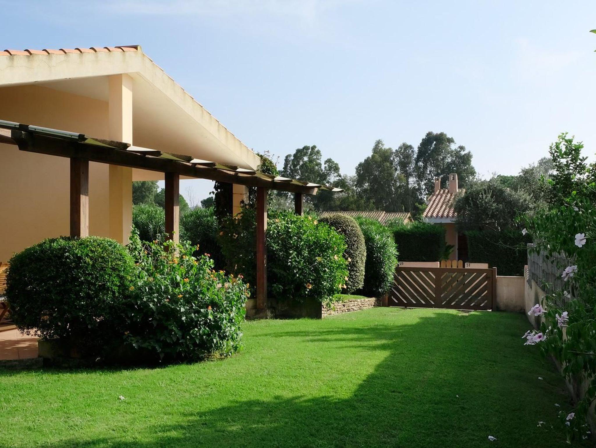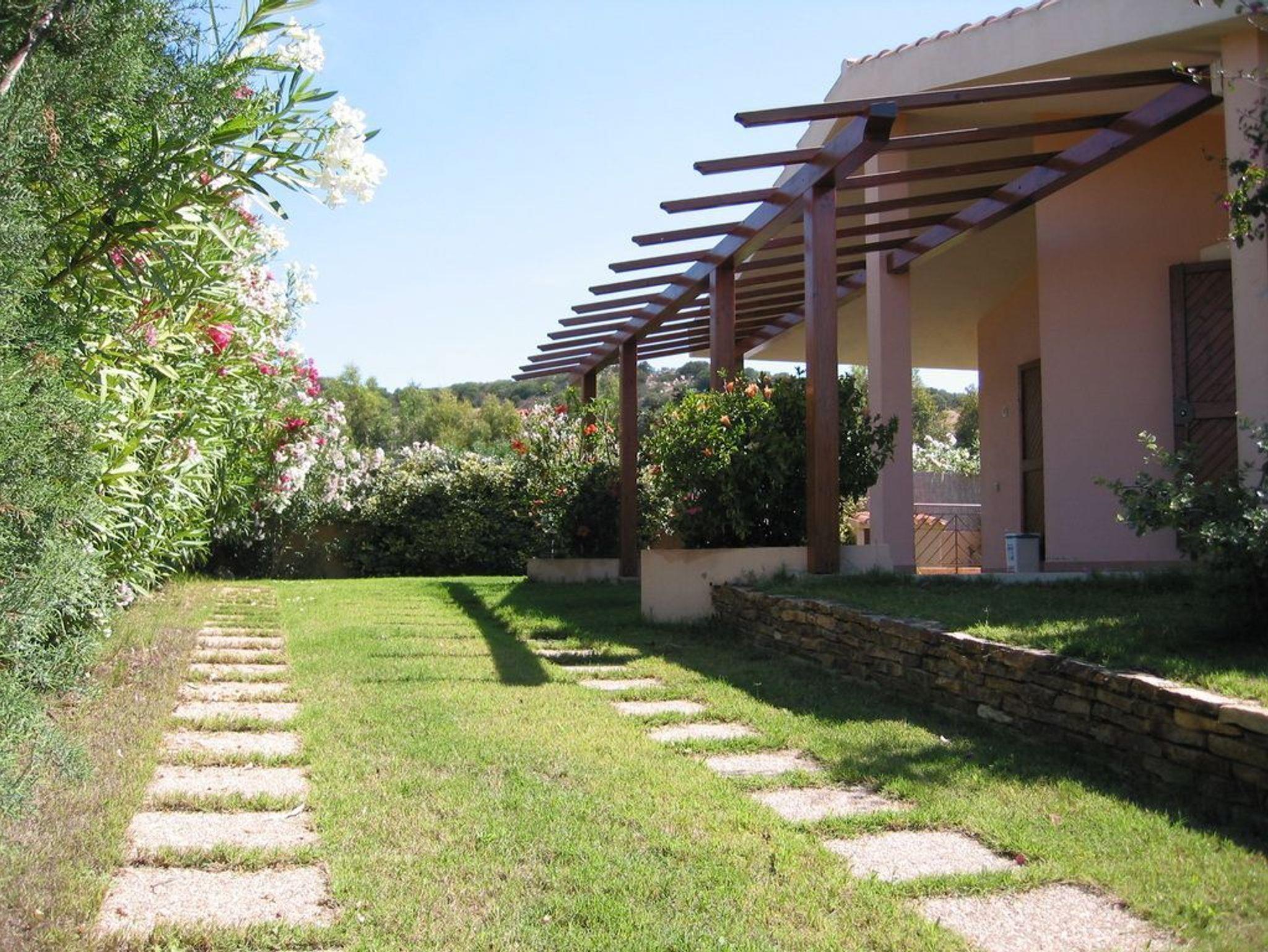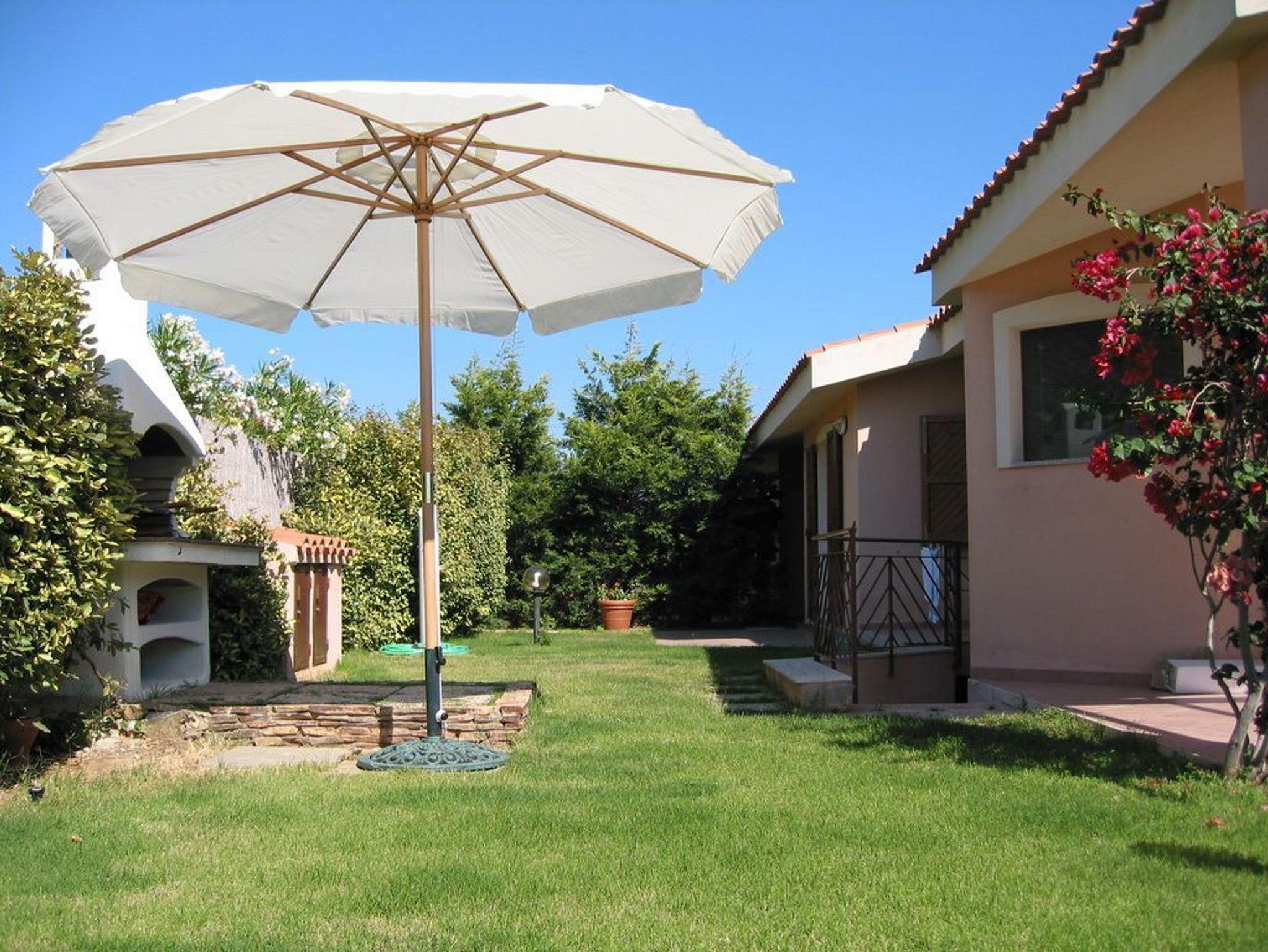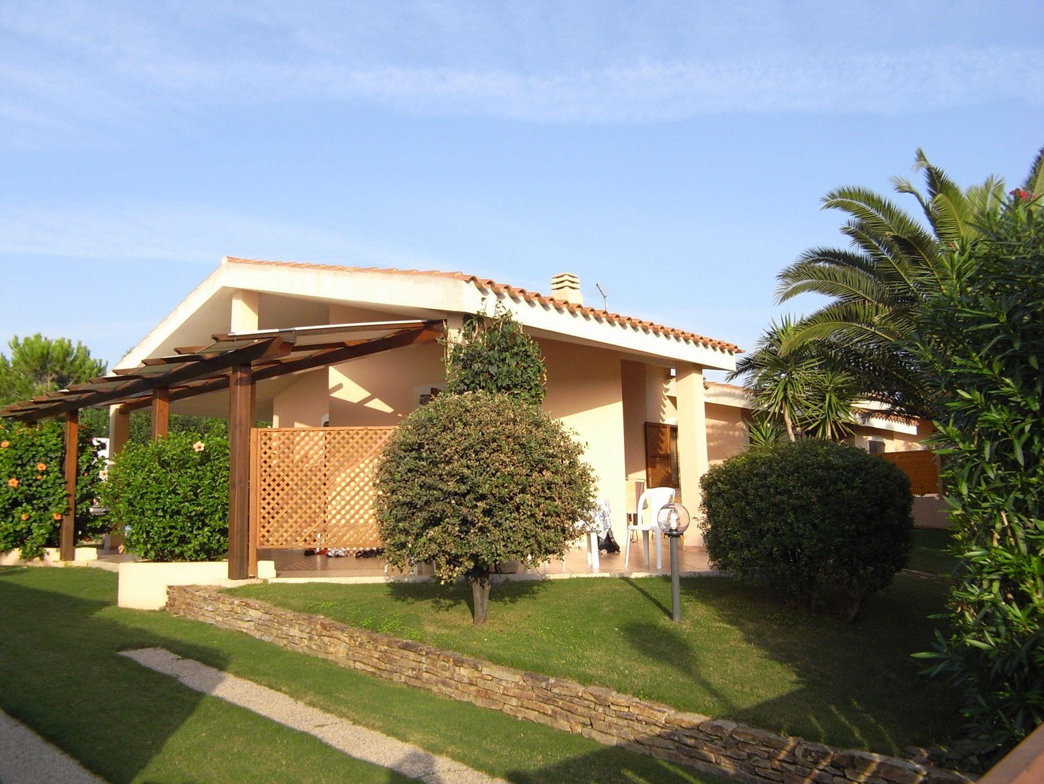 Eingebettet in einen großen, gepflegten Garten, liegt diese Doppelhaushälfte in einem bevorzugten Wohngebiet in Nähe des Campulongu Strandes.