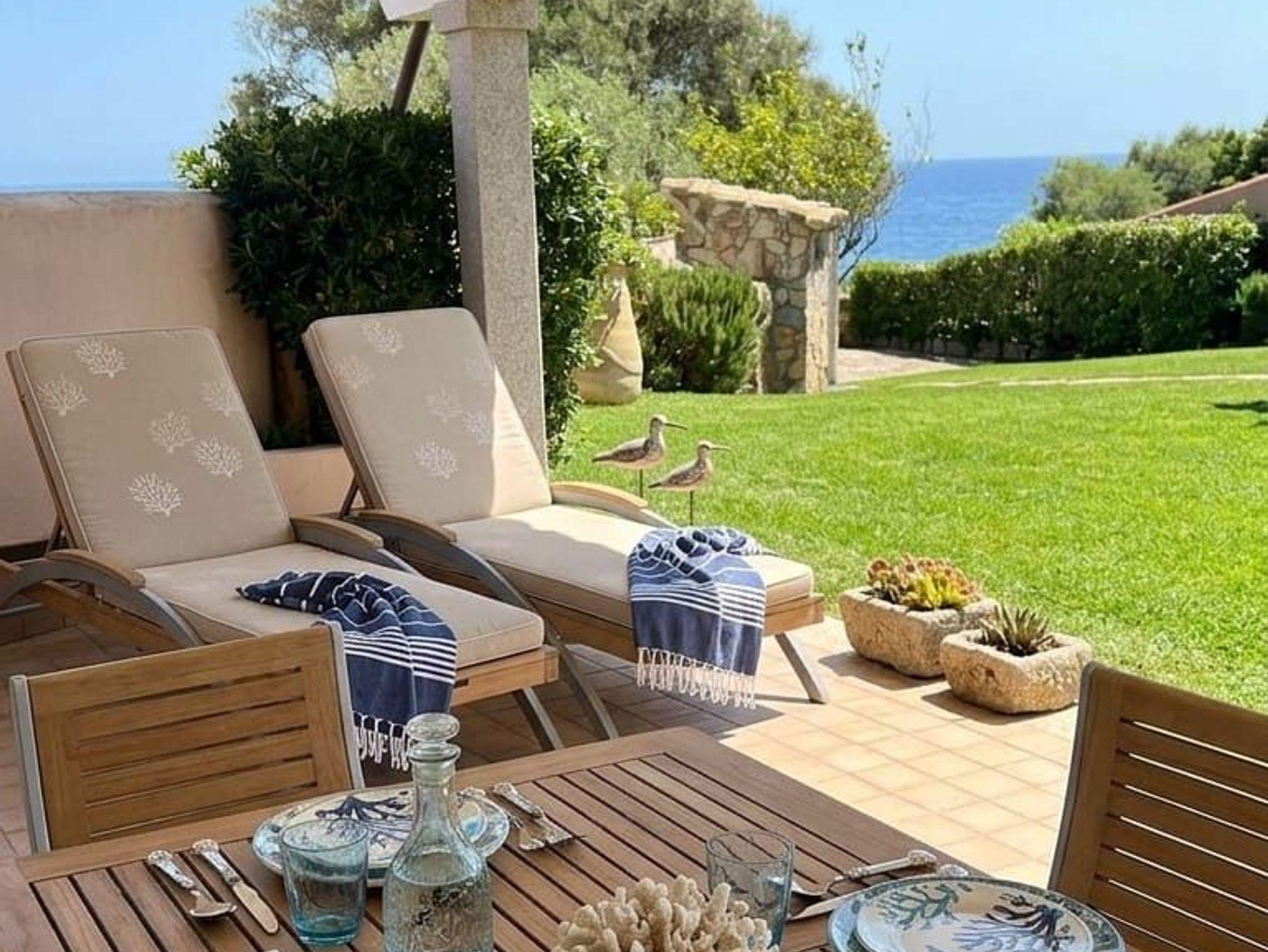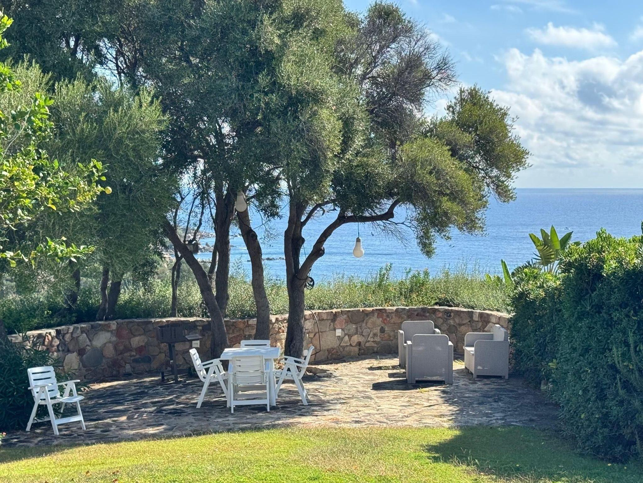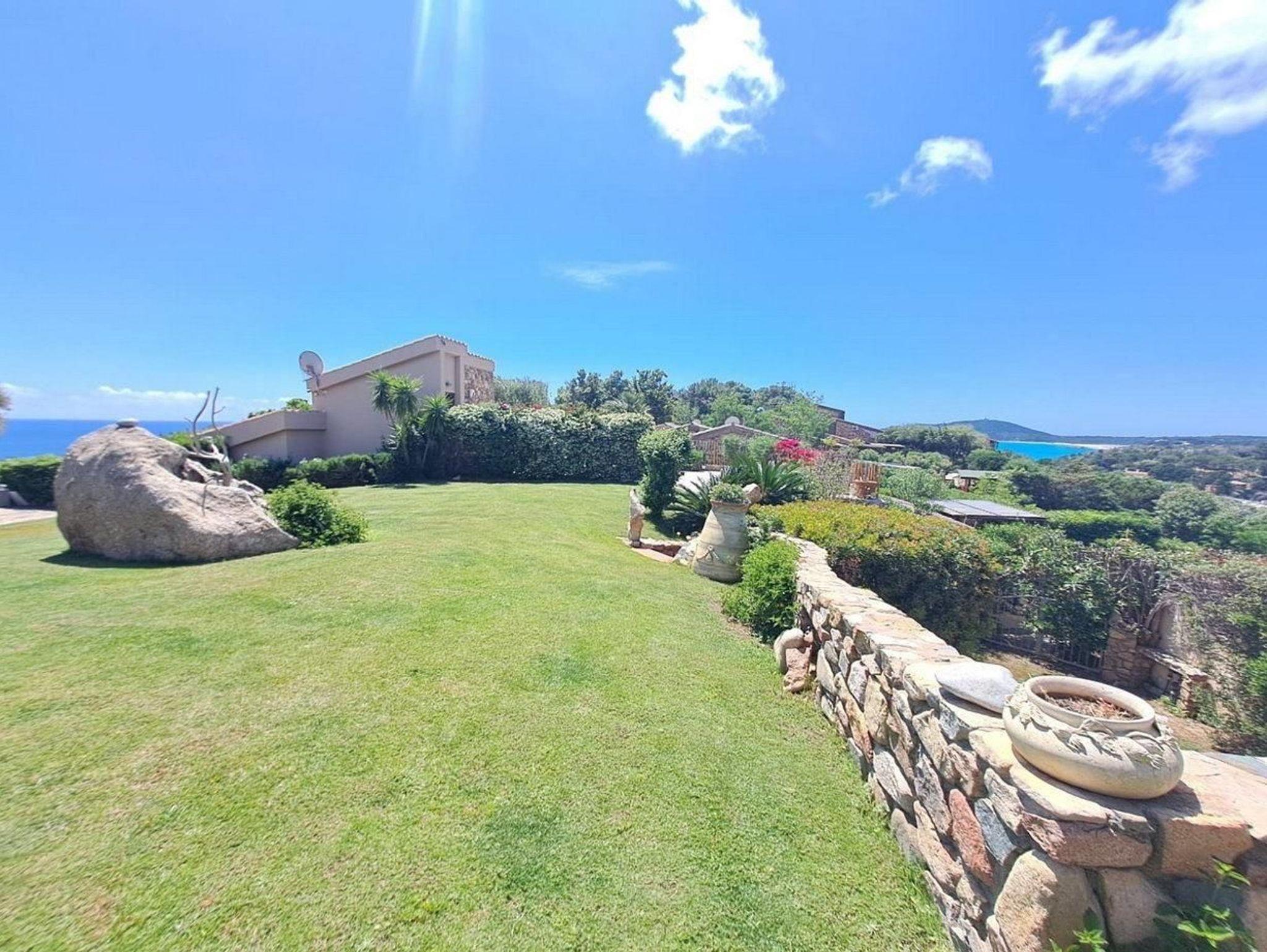 Wie eine sanfte Welle erhebt sich die Villa Onda aus dem satten Grün dieses mit direktem Strandzugang ausgestatteten Wohngebiets. Auf der kleinen Anhöhe kann man den Blick über die Küstenlandschaft Südostsardiniens schweifen und den Gedanken freien Lauf lassen. Das wunderschön angelegte Grundstück bietet im Außenbereich neben einer großen zum Haus führenden Grünfläche und der großen sonnengeschützten Panoramaterrasse ein weiteres Highliht. Am Rande des Grundstücks, wo der Blick aufs unter dem Grundstück befindliche Meer besonders schön ist, hat der Eigentümer einen mit Loungemöbeln ausgestatteten und von mediterraner Pflanzenpracht umgebenen Grillplatz errichtet. Allein dieser Platz sorgt schon für so viel Urlaubsgefühl, dass man vor lauter Schwärmen fast vergessen könnte auch noch ein paar Worte über das Haus an sich zu verlieren. Und das wäre sehr schade - denn der großzügig gepflegte Eindruck des Außenbereichs, lässt sich mühelos auch auf den Innenbereich übertragen.