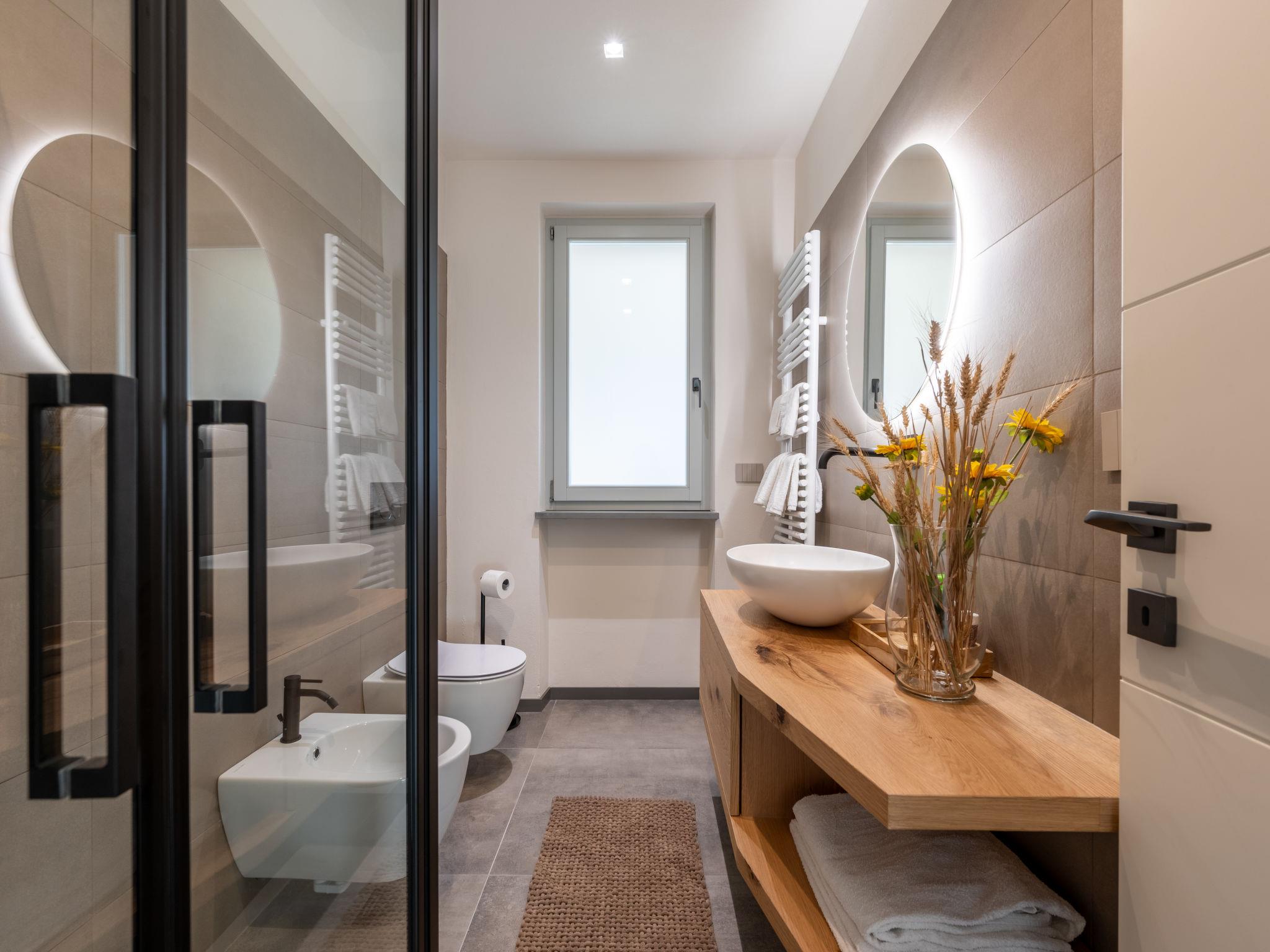 "Laiolo Wine Resort", 4-room apartment 120 m2, on the ground floor. Luxurious and tasteful furnishings: living/sleeping room with panoramic window with 1 double sofabed. Exit to the balcony. 2 rooms, each room with 1 double bed and shower/WC. 1 room with 1 double bed (180 cm, length 200 cm). Open kitchen (oven, dishwasher, 4 induction hot plates, toaster, kettle, microwave, freezer, electric coffee machine). Exit to the balcony. Shower/WC. Heating, air-conditioning. Heating available only from 01.10. to 15.04. Natural stone floors. Large balcony 25 m2, small balcony 15 m2. Balcony furniture, deck chairs (6). Very beautiful panoramic view of the mountains and the countryside. Facilities: washing machine. Internet (WiFi, free). Please note: private entrance. IT005120B5OLJW452S
