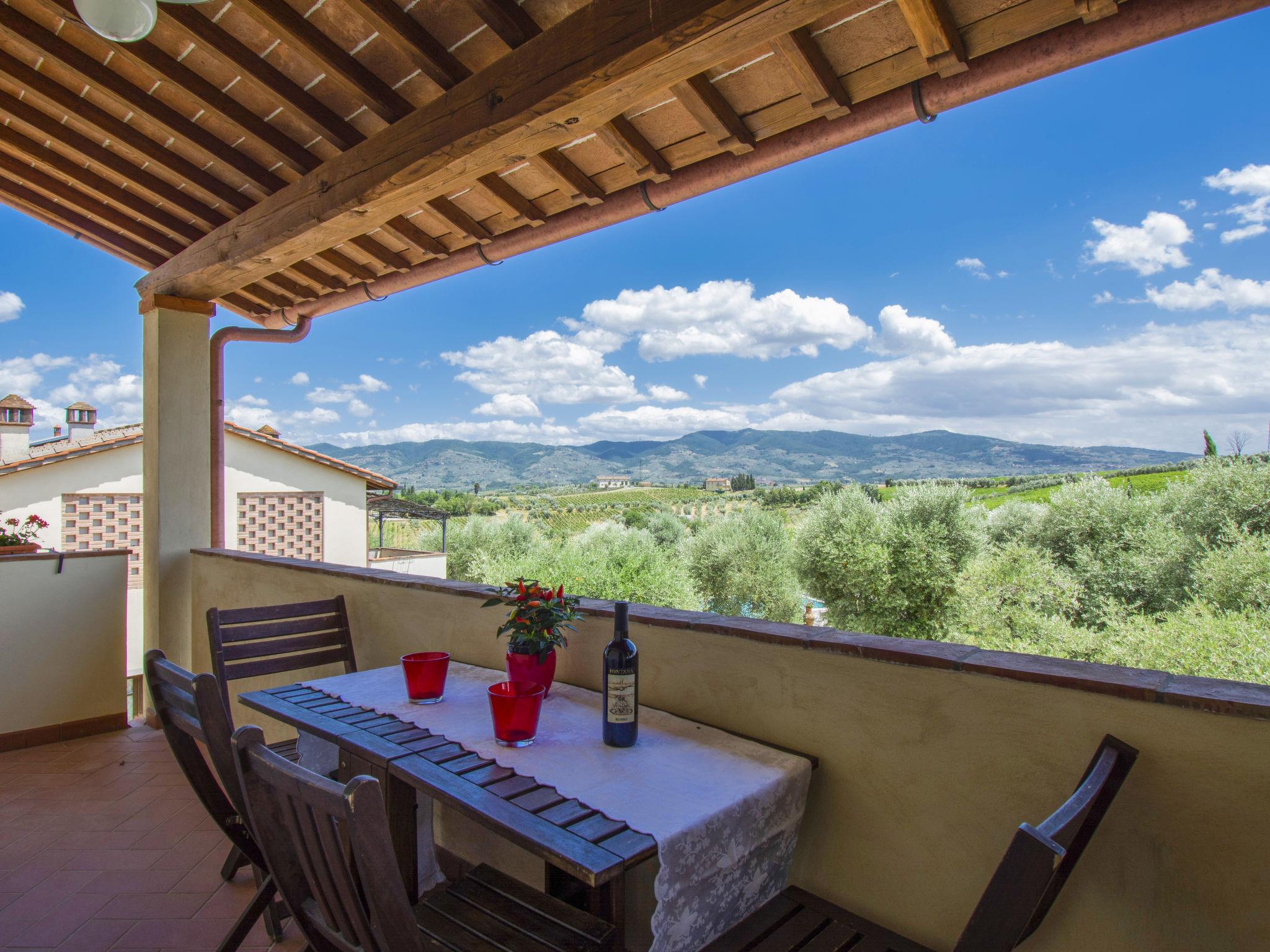 3-room apartment 60 m2, on the upper floor. Spacious, renovated, tasteful and cosy furnishings: 1 double bedroom. 1 room with 2 beds. Kitchen-/living room (4 hot plates, oven, dishwasher, electric coffee machine) with dining table, 1 double sofabed and satellite TV. Exit to the balcony, to the patio. Shower/WC. Heating, air-conditioning (extra). Balcony, patio. Terrace furniture. Very beautiful panoramic view of the swimming pool and the countryside. Maximum 1 pet/ dog allowed. IT048011B538BVZT5N