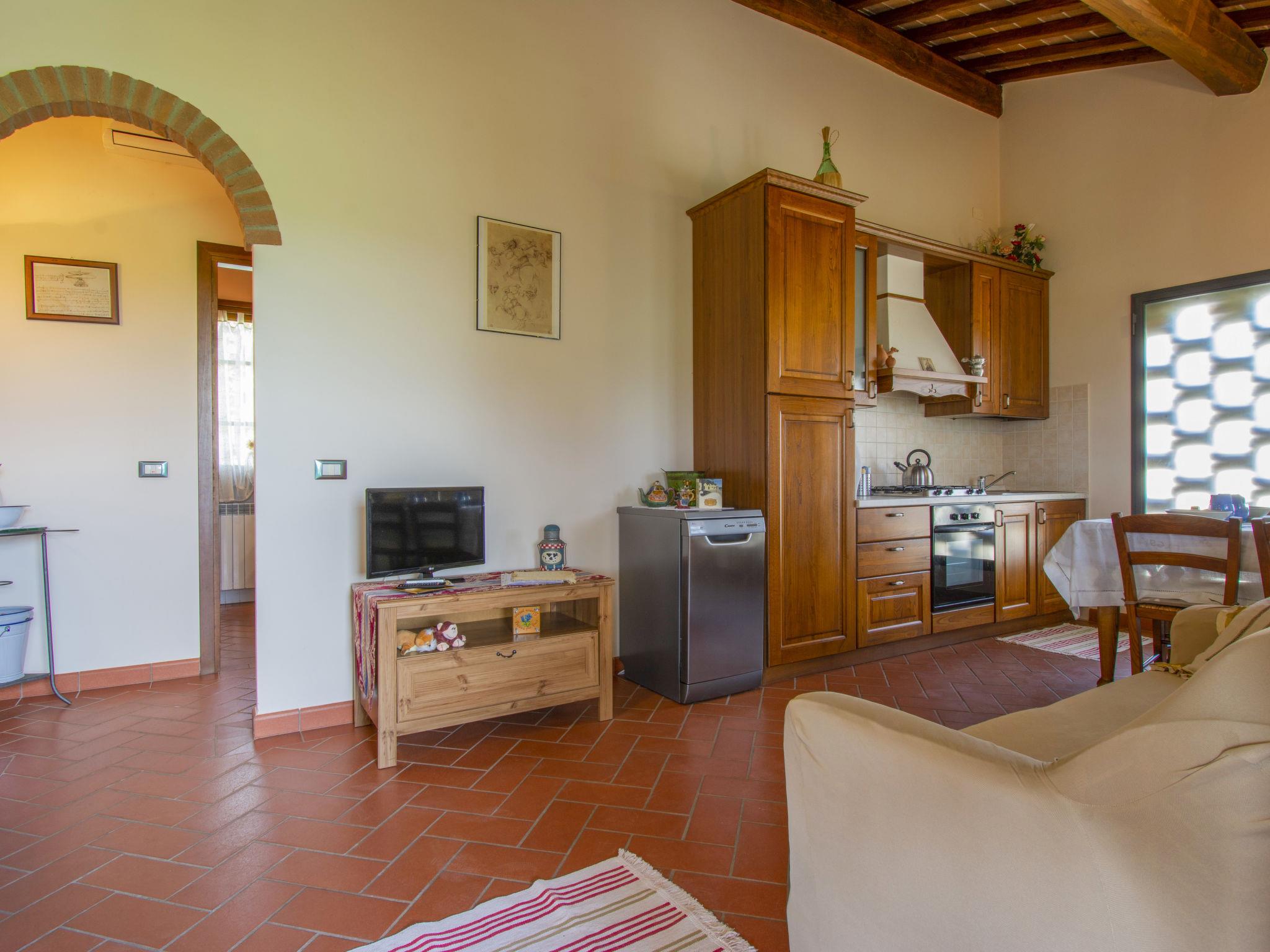 Beautiful country house "Borgo Fontana", from the 18th century, renovated, surrounded by meadows, fields and vineyards. 7 apartments in the residence. 4 km from the centre of Vinci, in a quiet, sunny position on top of a hill, in the countryside. For shared use: property 20 ha, large garden lawn and trees, lawn for sunbathing, natural pond, swimming pool (6 x 12 m, depth 150 cm, seasonal availability: 01.Apr. - 29.Oct.). Outdoor shower, table tennis, patio, terrace, garden furniture, barbecue. In the complex: reception, lounge with TV, internet access, washing machine (for shared use), heating available only from 01.Nov. - 29.Mar., bicycles available (extra). Linen change weekly. Parking on the premises. E-charging station. Shop 2 km, supermarket 4 km, restaurant 2 km, bus stop 400 m, railway station "Empoli" 9 km, sandy beach "Versilia" 60 km. Golf course 5 km. Nearby attractions: San Miniato 10 km, Empoli 10 km, Montecatini Terme 22 km, Firenze, Lucca 40 m. Hiking paths: Montalbano 15 km. Please note: fishing [permit required]. Local sale of farm products. Residence with electric gates.