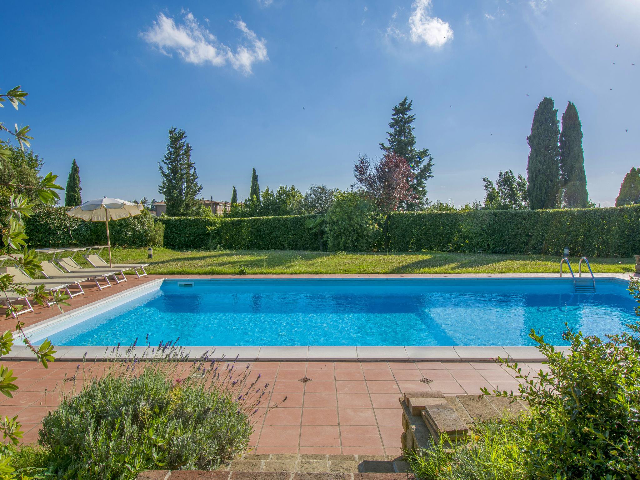 Beautiful villa "di Vinci", renovated, surrounded by fields and vineyards. Outside the resort, on top of a hill. For shared use: property. Private: large, well-kept garden with lawn and flowers, swimming pool (6 x 12 m, depth 140 - 170 cm, seasonal availability: 29.Mar. - 25.Oct.). Outdoor shower, pergola, terrace, garden furniture, barbecue. In the house: internet access, heating to be paid on the spot, heating available only from 29.Mar. - 15.Apr.. Linen change weekly. Room cleaning on request (extra). Cook on request (extra). Parking. Bus stop 200 m, railway station "Empoli" 12 km, sandy beach 50 km. Golf course 5 km, tennis 10 km, riding stable 2 km. Nearby attractions: Pisa 40 km, Firenze 45 km, San Miniato 15 km. Please note: the owner lives on the same property.