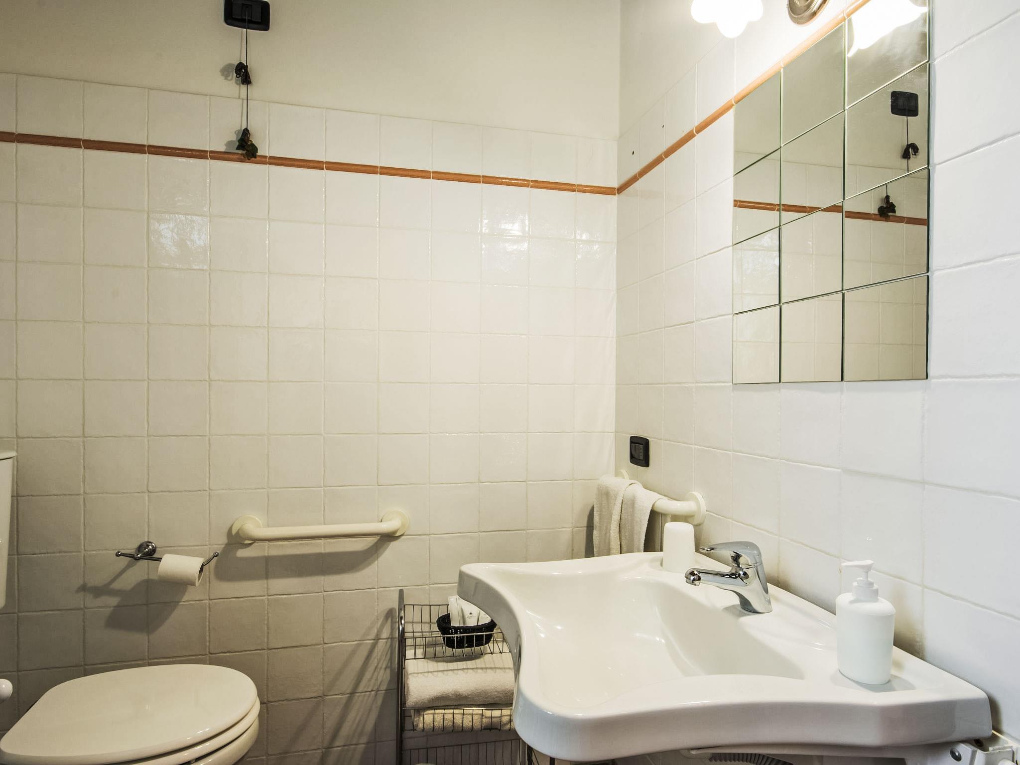 "Loggiato", 2-room apartment 52 m2, on the ground floor. Practical and tasteful furnishings: living/dining room with 1 double sofabed, open-hearth fireplace and satellite TV. 1 double bedroom. Exit to the garden. Kitchenette (4 hot plates, mini-oven). Shower/bidet/WC. Heating (extra). Facilities: mosquito net. Internet (WiFi, free). IT048050B5DTJIH2TC