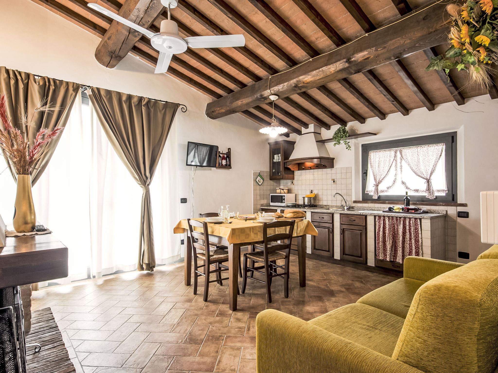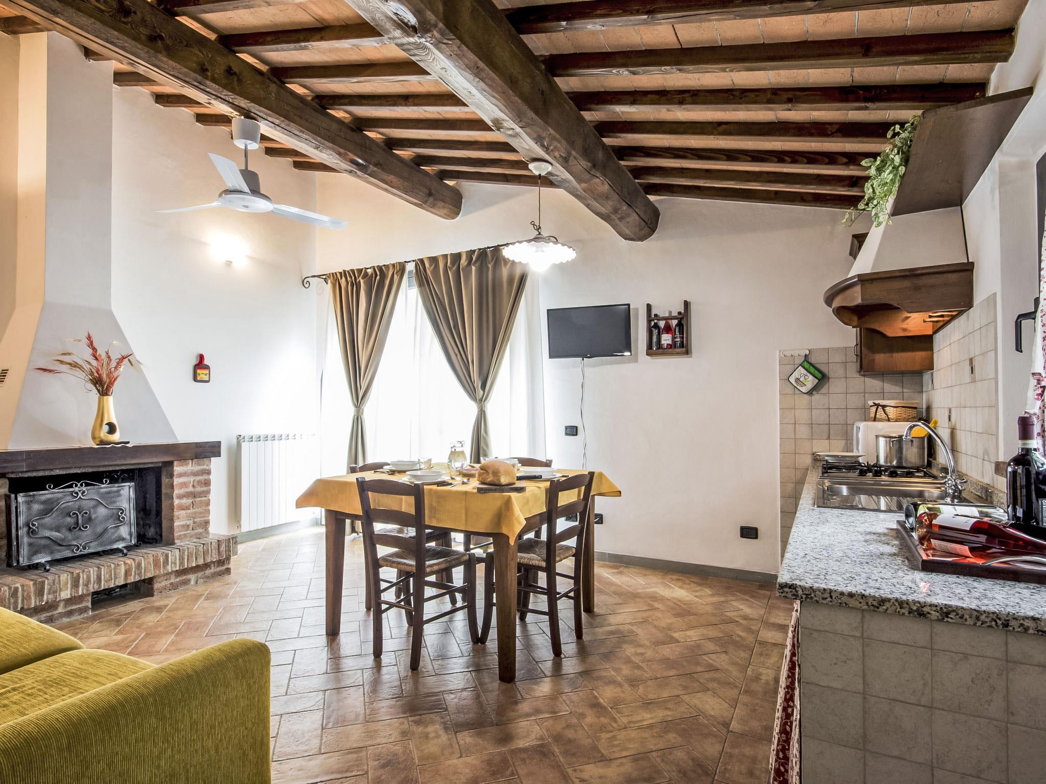 Large working farm 150 m a.s.l.. 4 apartments in the property. 6 km from the centre of Vinci, 48 km from the centre of Firenze, 60 km from the centre of Pisa, located by a road, in the countryside. For shared use: garden 1'000 m2, swimming pool (12 x 6 m, depth 140 cm, seasonal availability: 04.May. - 28.Sep.). Outdoor shower, garden furniture, barbecue. Heating to be paid on the spot, heating available only from 01.Nov. - 07.Apr.. Parking on the premises. Supermarket 5 km, restaurant 5 km, bus stop 2 km, sandy beach "Versilia" 65 km, thermal baths "Montecatini Terme" 19 km. Golf course (18 hole) 14 km. Nearby attractions: San Miniato 16 km, Montecatini Terme 19 km, Carmignano 21 km, Pistoia 23 km, San Casciano in Val di Pesa 42 m, San Gimignano 50 km. Please note: guarded residence. The owner lives on the same property.