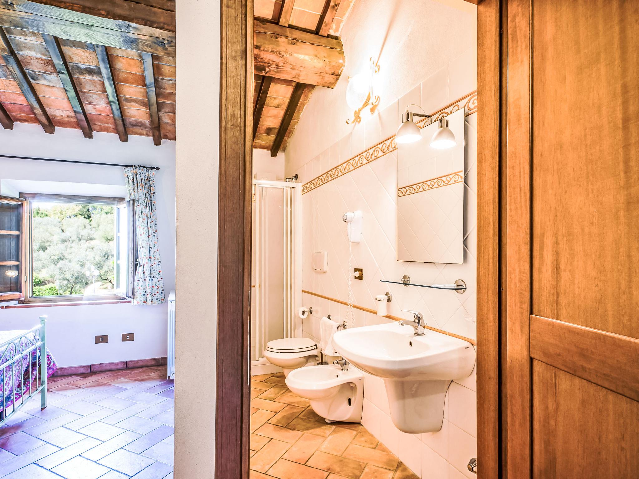 Large working farm "Montereggi", built in 1600. 12 apartments in the property. 12 km from the centre of Vinci, 33 km from the centre of Firenze, 45 km from the centre of San Gimignano, in a secluded, quiet, sunny position on top of a hill, in the countryside. For shared use: property 100 ha, swimming pool fenced (18 x 8 m, depth 100 - 150 cm, seasonal availability: 04.May. - 28.Sep.). Outdoor shower, garden furniture, barbecue. In the complex: WiFi, washing machine. Motor access to the house (600 m via unmade road). Parking at the house. E-charging station. Grocery 1 km, supermarket 3 km, bus stop 300 m, railway station "Montelupo Fiorentino" 3 km, thermal baths "Montecatini Terme" 33 km. Golf course (9 hole) 9 km. Nearby attractions: Montelupo Fiorentino 5 km, Carmignano 10 km, San Miniato 17 km, San Casciano in Val di Pesa 22 km. Local sale of farm products. Please note: the photograph shows a typical example.