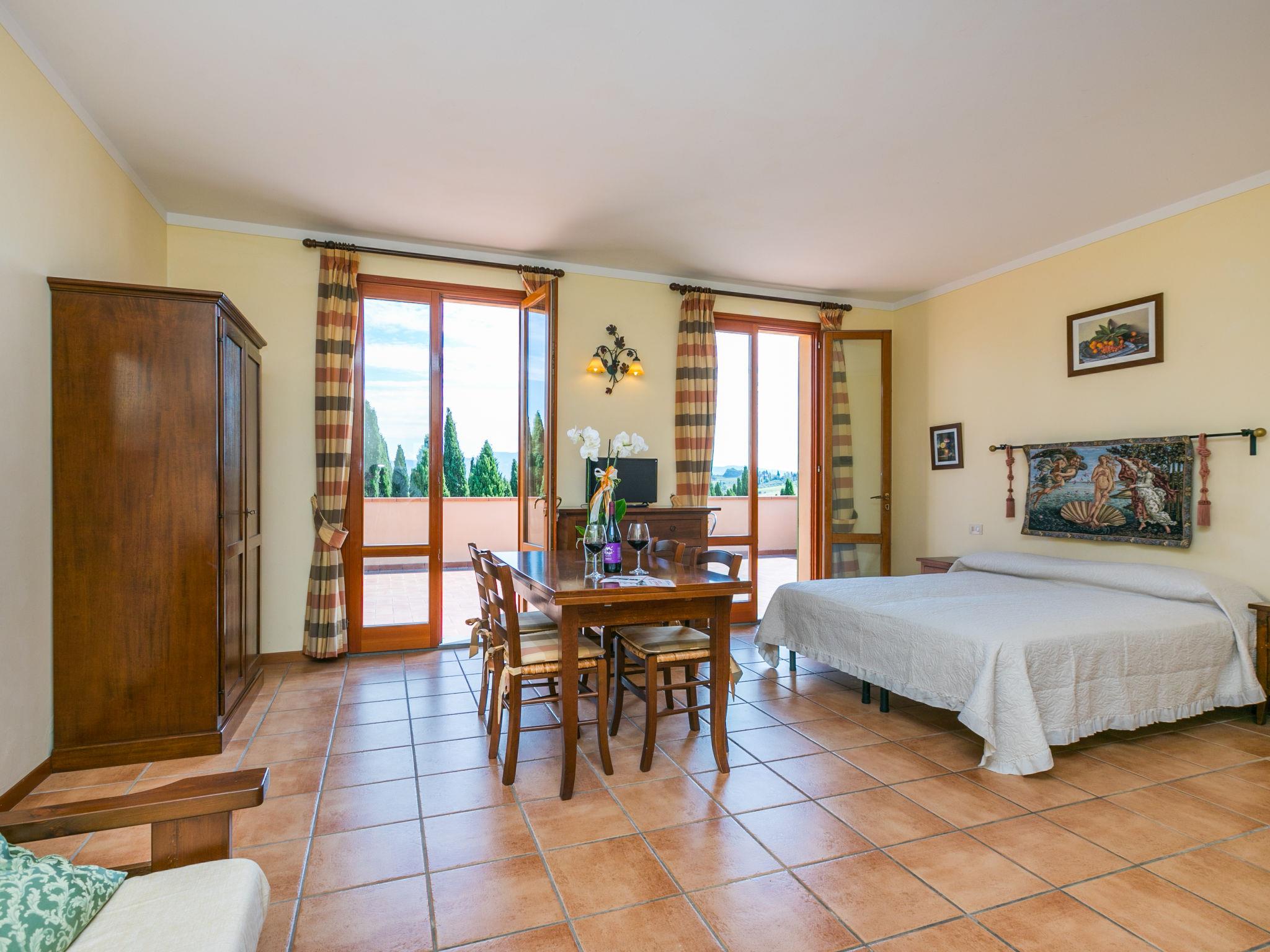 Casalsole, a structure located in the Florentine hills, is made up of twelve apartments (10 studio apartments and 02 two-room apartments). All apartments are equipped with a hideaway kitchenette. Agriturismo "Casalsole", 200 m a.s.l.. 12 apartments in the property. 8 km from the centre of Vinci, 45 km from the centre of Firenze, 53 km from the centre of Pisa, in a sunny position on top of a hill, in the countryside. For shared use: garden 15 ha (not fenced), swimming pool (11 x 5 m, depth 140 cm, seasonal availability: 15.May. - 06.Oct.). Outdoor shower, garden furniture, barbecue, pool maintenance by the owner/gardener. In the house: laundry, washing machine (for shared use). Parking on the premises. Shop 3 km, grocery 3 km, supermarket 3 km, bus stop 2.5 km, sandy beach "Versilia" 65 km, thermal baths "Montecatini Terme" 22 km. Golf course (18 hole) 18 km. Nearby attractions: San Miniato 11 km, Montecatini Terme 22 km, Carmignanano 30 km, Lucca 46 km, San Gimignano 48 km, Volterra 59 km. Local sale of farm products. Please note: the photograph shows a typical example. The farm produces oil and wine and organizes extra tastings in its cellar.