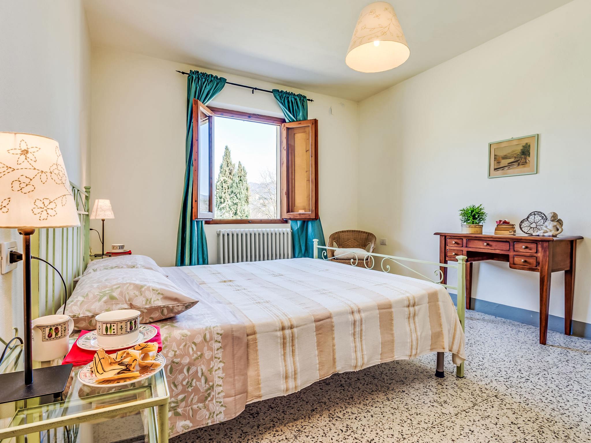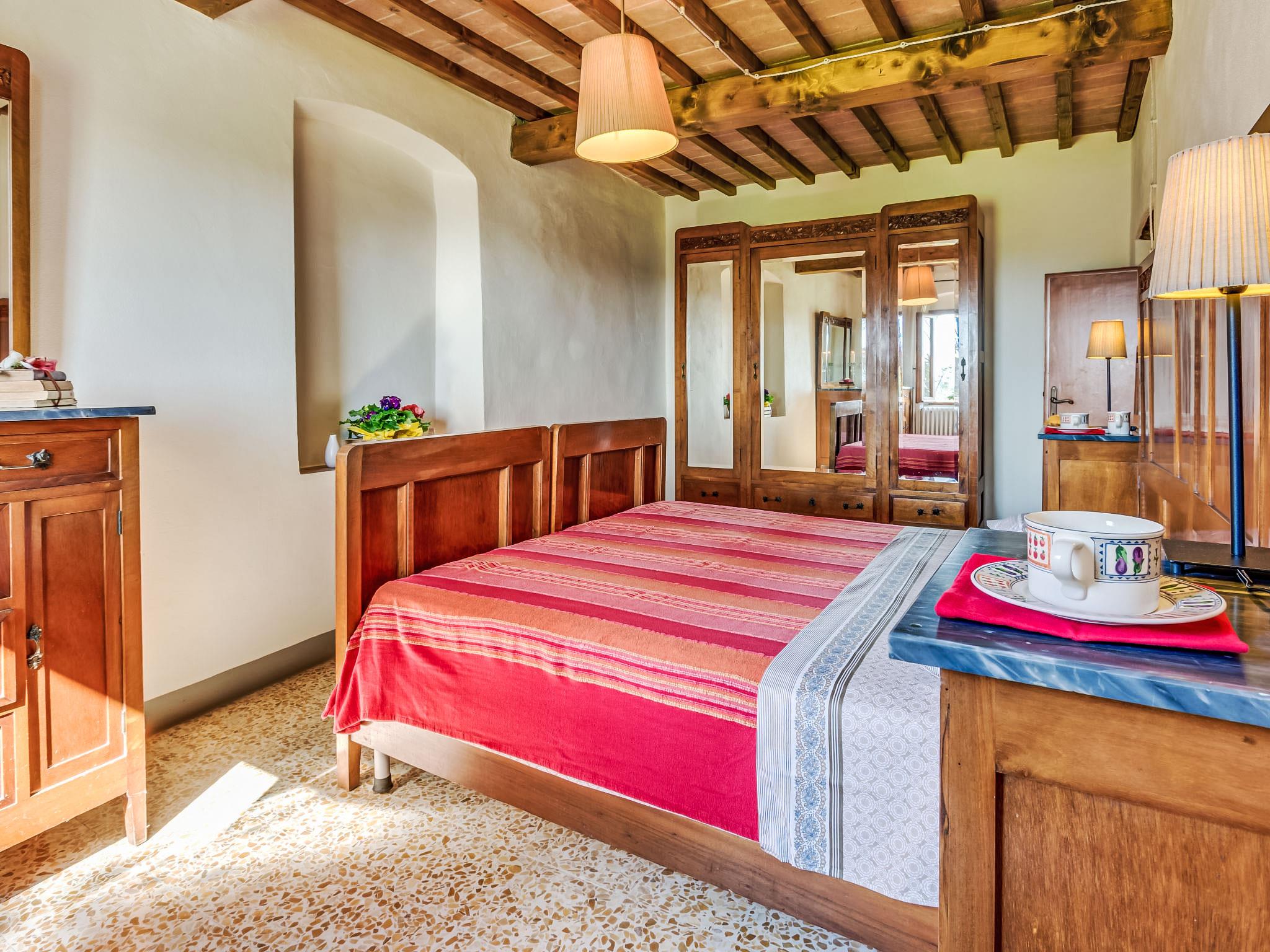 Lamporecchio 5 km from Vinci: Villa "Beboli", detached, renovated in 2006. 5 km from the centre of Vinci, 18 km from the centre of Montecatinit Terme, 45 km from the centre of Firenze, in a secluded, quiet, sunny position. Private: garden 4'000 m2 (fenced), swimming pool (5 x 10 m, depth 150 cm, seasonal availability: 04.May. - 28.Sep.). Outdoor shower, garden furniture, barbecue. In the house: billiard table, heating to be paid on the spot, heating available only from 01.Nov. - 07.Apr.. Room cleaning weekly (included). Motor access to the house (400 m via unmade road). Parking. Grocery 2 km, bus stop 1 km, railway station "Empoli" 15 km, sandy beach "Viareggio - Forte dei Marmi" 65 km, thermal baths "Montecatini Terme" 15 km. Golf course (18 hole) 10 km, riding stable 8 km. Nearby attractions: Montecatini Terme 15 km, Pistoia 21 km, Carmignano 21 km, San Miniato 21 m, San Casciano in Val di Pesa 40 km. Local sale of farm products. On weekdays from 08 am to 10 am the pool maintenance and garden cleaning will be carried out. On request you can book the house for a total of 18 pax (our ref IT5220.980.2), in which case guests have also an additional apartment adjacent to the villa with separate entrance for 4 people.