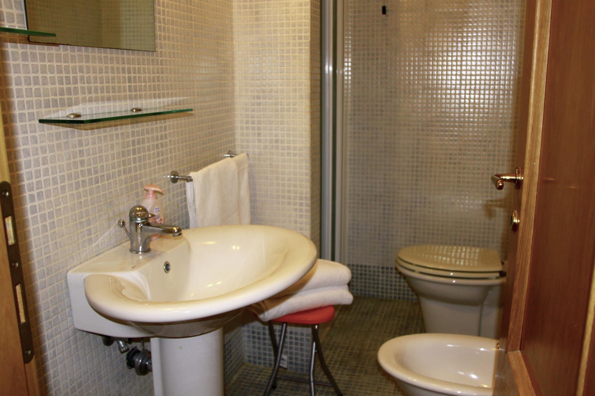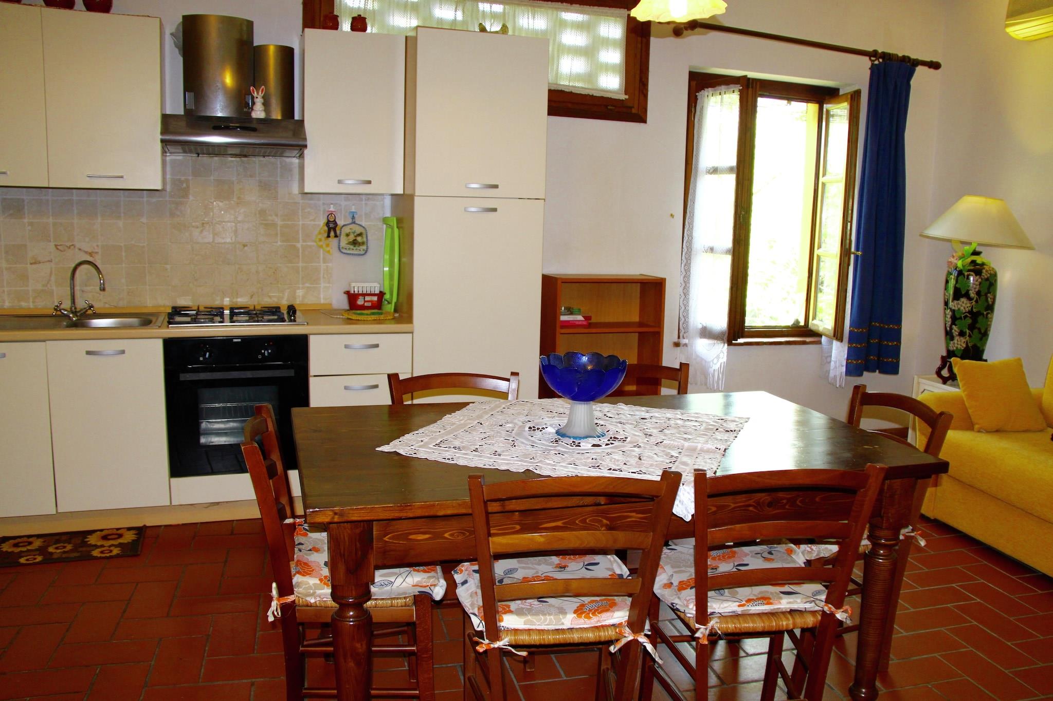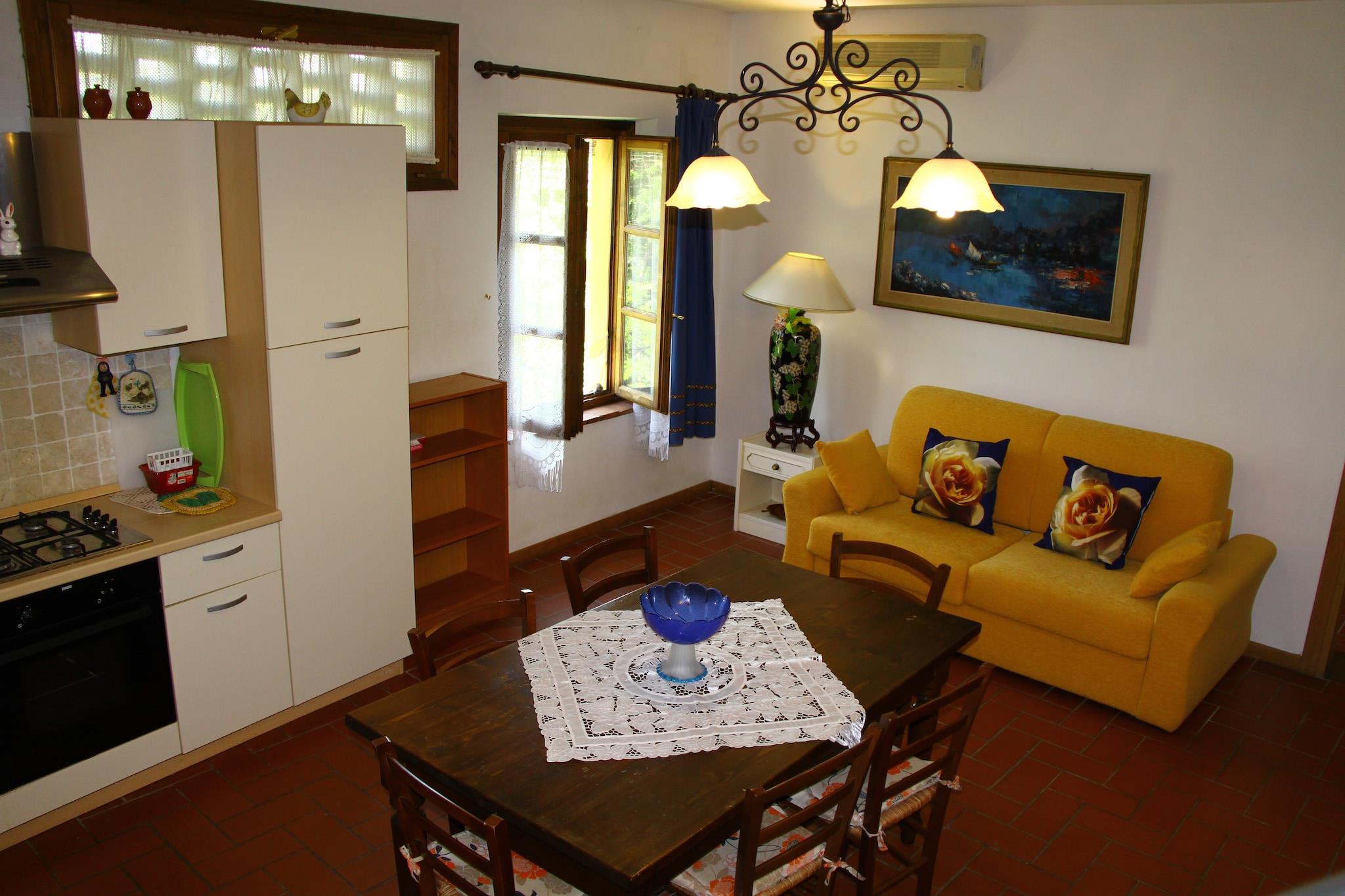 På 1. etage: (åbent køkken(kogeplade, ovn), stue / spisestue(dobbeltsovesofa, Fjernsyn, spisebord, barnestol), soveværelse(dobbeltseng, barneseng), badeværelse(bruser, håndvask, toilet, bidet)) varme, have(deles med andre gæster), havemøbler, grill, swimmingpool(deles med andre gæster, 12 x 6 m., opened from May upto and including 1/2 Oct), kravlegård
