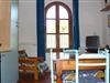 På 1. etage: (åbent køkken(kakkelovn, ovn, håndvask), stue / spisestue(sofahjørne), soveværelse(dobbeltseng, barneseng), badeværelse(bruser, håndvask, toilet, bidet)) varme, have(deles med andre gæster), havemøbler, grill, swimmingpool(deles med andre gæster, 12 x 6 m., opened from May upto and including 1/2 Oct), kravlegård