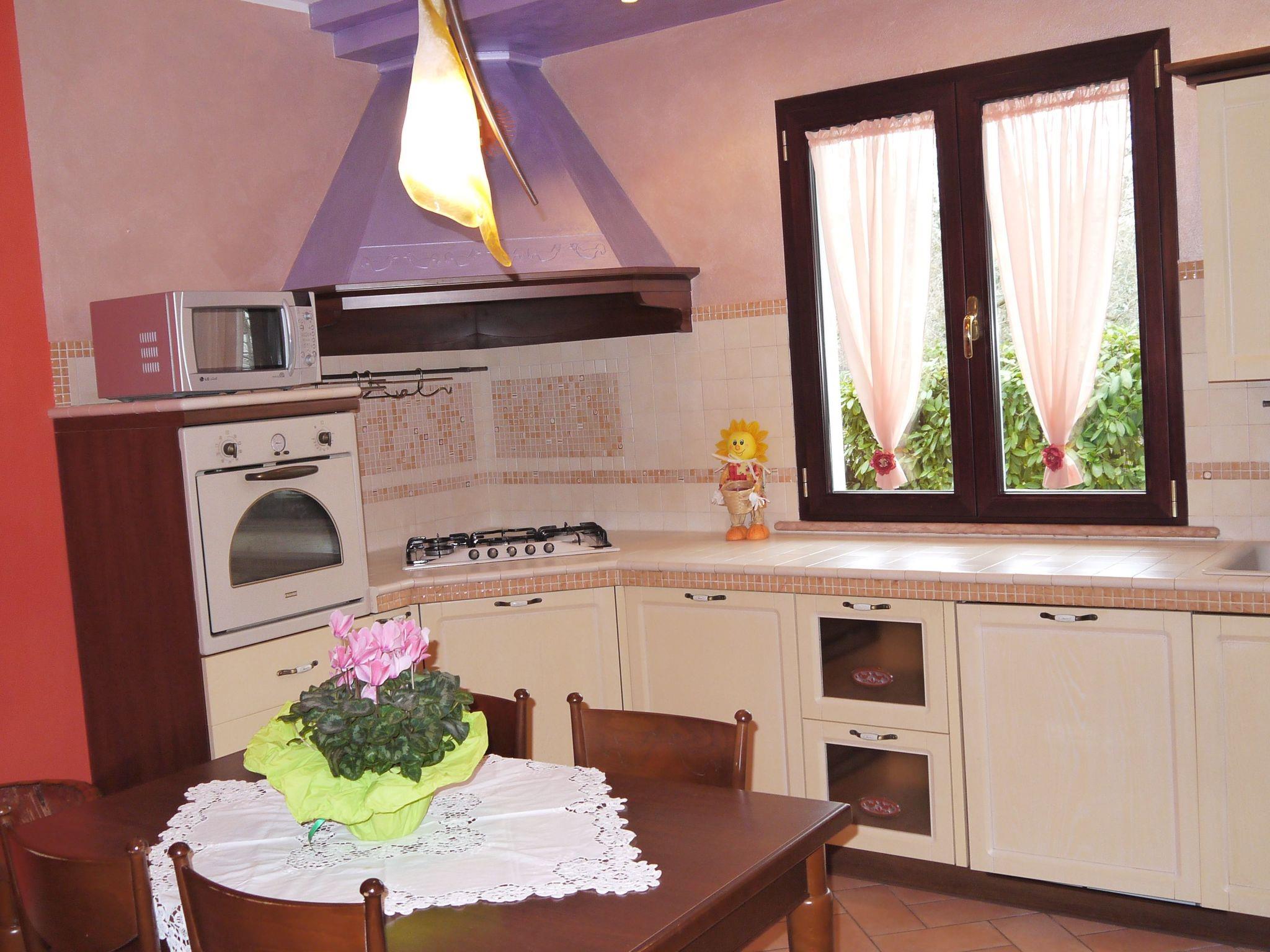 The flat is about ninety square metres, renovated in detail and comfortable. You are welcomed into a large room with a living room and kitchen equipped with every comfort. A short corridor will give you access to the other rooms: two bathrooms, two bedrooms and a study. One room has a double bed, the other has two single beds, one located on the floor and the other accessible via convenient stairs. It is possible to add a fifth bed that can be placed at will in one of the larger rooms of the house.