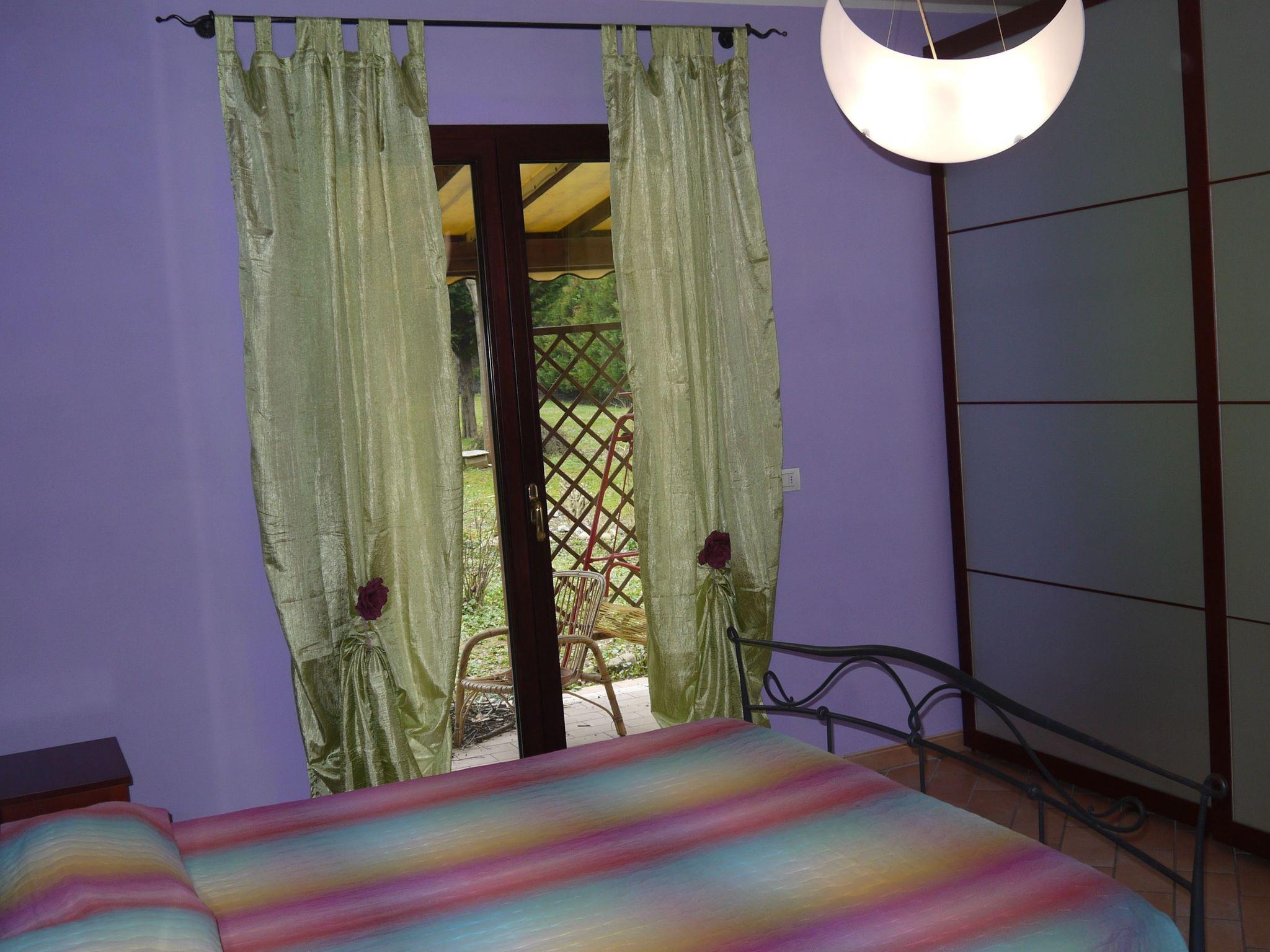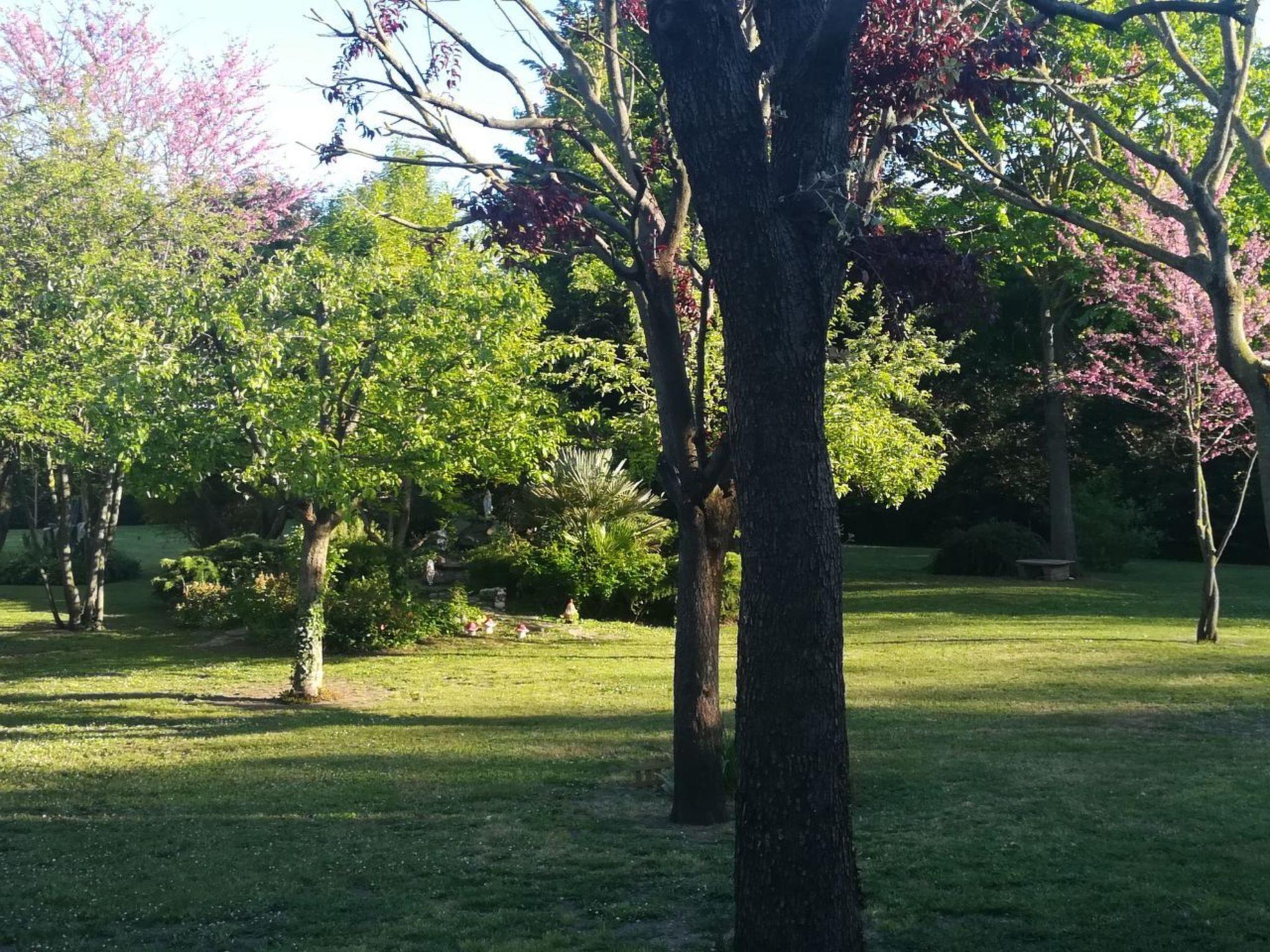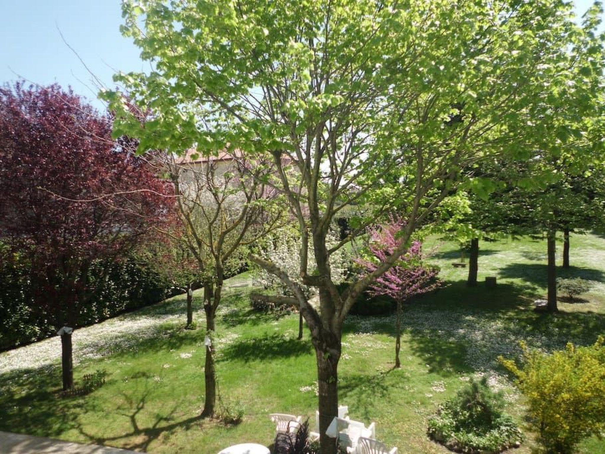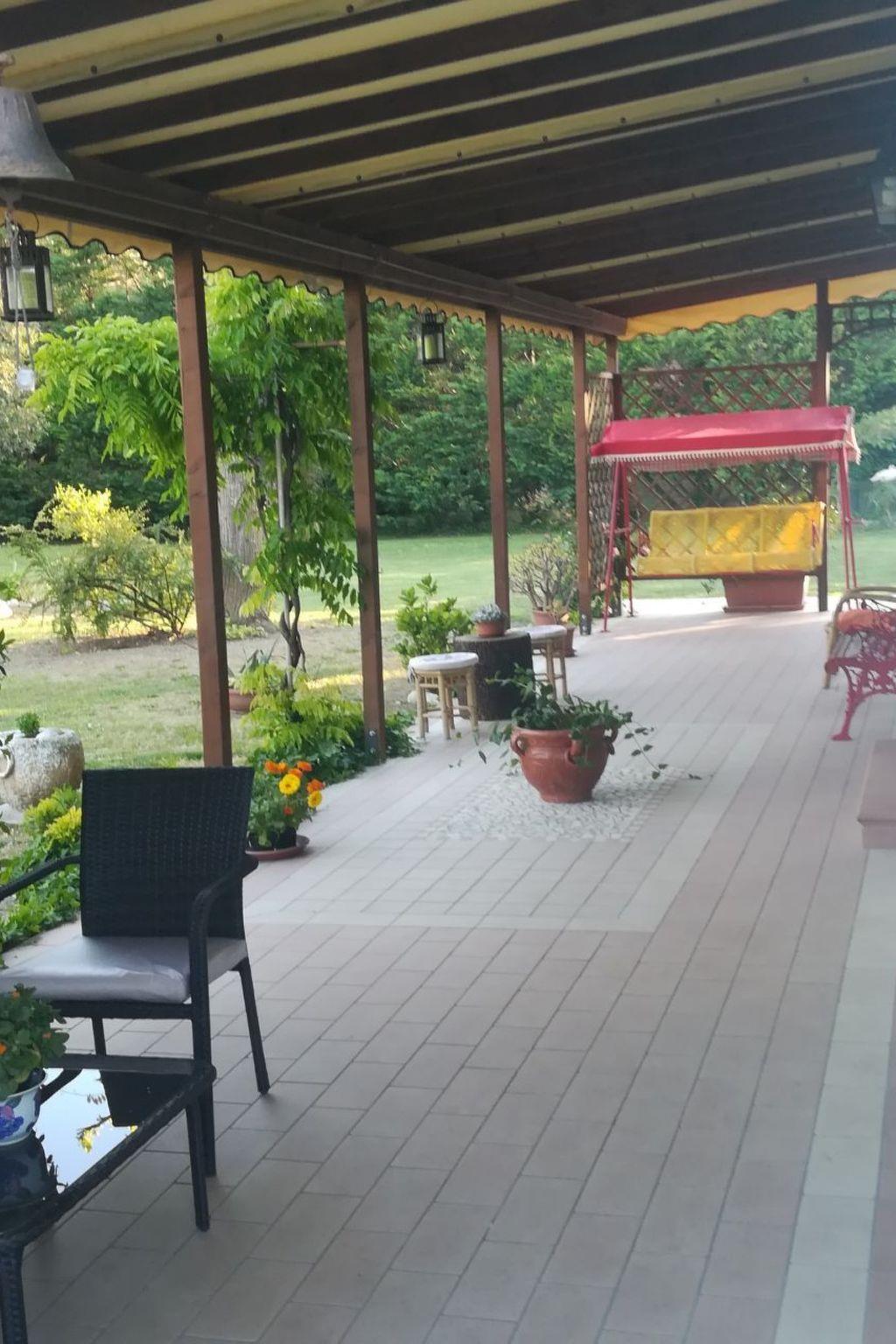 Guests will have the entire flat at their disposal. They can enjoy relaxing under the veranda and stroll through the wooded park in front of the entrance, in the centre of which is an artificial pond with fish and a small waterfall.