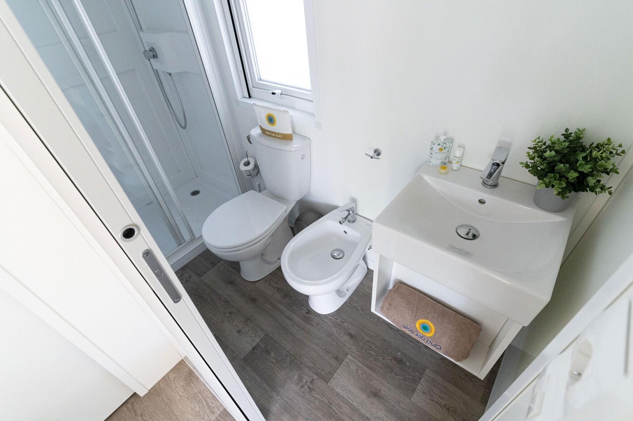 Den perfekte familieferie: Rimini Family Resort ligger direkte på Riminis store strand og tilbyder alt, hvad du har brug for til en vidunderlig pause med dine kære. Hvert medlem af familien kan tilbringe dagene efter deres ønsker, for parken byder på variation for store og små. Du bor i en komfortabel og moderne lodge, der er udstyret med alt hvad du behøver for et behageligt ophold. Nogle af dem har et ekstra badeværelse. Dette er, hvad resortet tilbyder: - Reception - Restaurant, pizzeria, bar - Supermarked, basar, aviskiosk - Strandservice på over 35.000 kvadratmeter strand (service mod et gebyr, afhængig af tilgængelighed) - Hundestrand, hundebassin og motionsområde - Vandland (åbent fra midten af maj til midten af september) - Cykeludlejning (inklusive e-cykler) - Animation, miniklub - Tøjvask - Forskellige sportsmuligheder, såsom fitness, bordtennis og meget mere - Legeplads - 1 parkeringsplads pr. hytte På stedet modtager du et armbånd med kontantfrit betalingssystem - så du nemt kan shoppe dine indkøb og souvenirs til enhver tid. Der tilbydes også forskellige udflugter og guidede ture på stedet. Det venlige team vil hjælpe dig med råd. Det er den ideelle destination for at opdage Rimini og dets natteliv. Men omveje til det omkringliggende område er også en tur værd: Tag for eksempel til San Marino, den lille stat, hvis historiske centrum vil glæde dig.