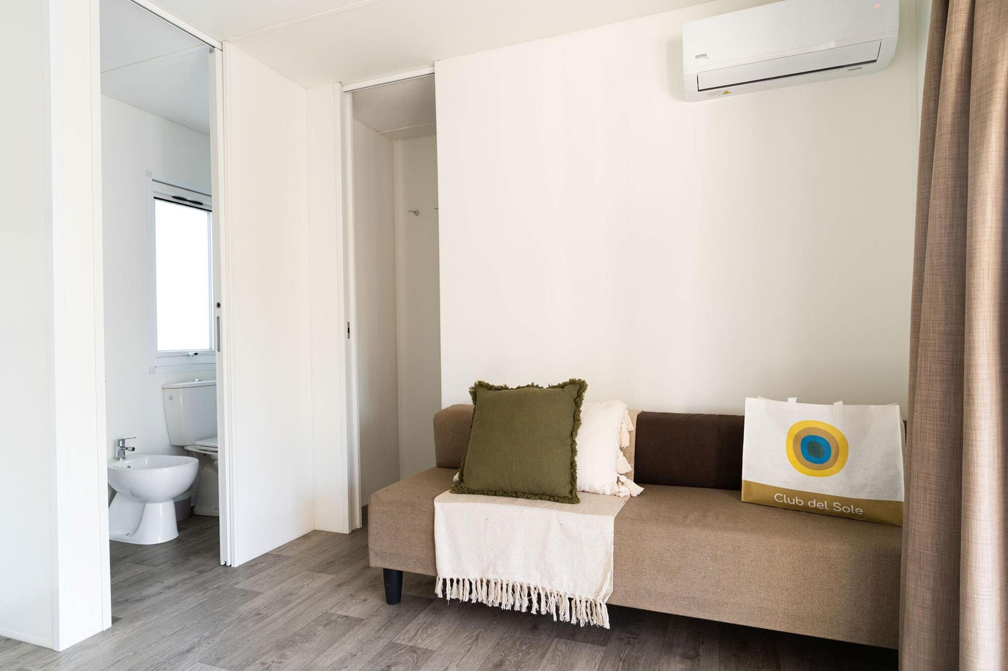 Stueetage: (Stue(enkeltsovesofa, Fjernsyn), tekøkken(kogeplade(gas), mikrobølgeovn, køle-fryseskab), soveværelse(dobbeltseng), soveværelse(enkeltseng, enkeltseng), soveværelse(enkeltseng, enkeltseng), badeværelse(bruser, toilet, bidet), veranda(Havemøbler), klimaanlæg) Reception, Vaske faciliteter, Parkering, Animation team, Supermarked, Cykeludlejning, Sportsbaner, Bordtennis, Restaurant, Bar, Børneklub, Legeområde, Bubble bath, solstole, Parasol, swimmingpool(deles med andre gæster, udendørs, herunder en del for børn (maks. dybde 50 cm), opened from 1/2 May upto and including 1/2 Sep), padelbane