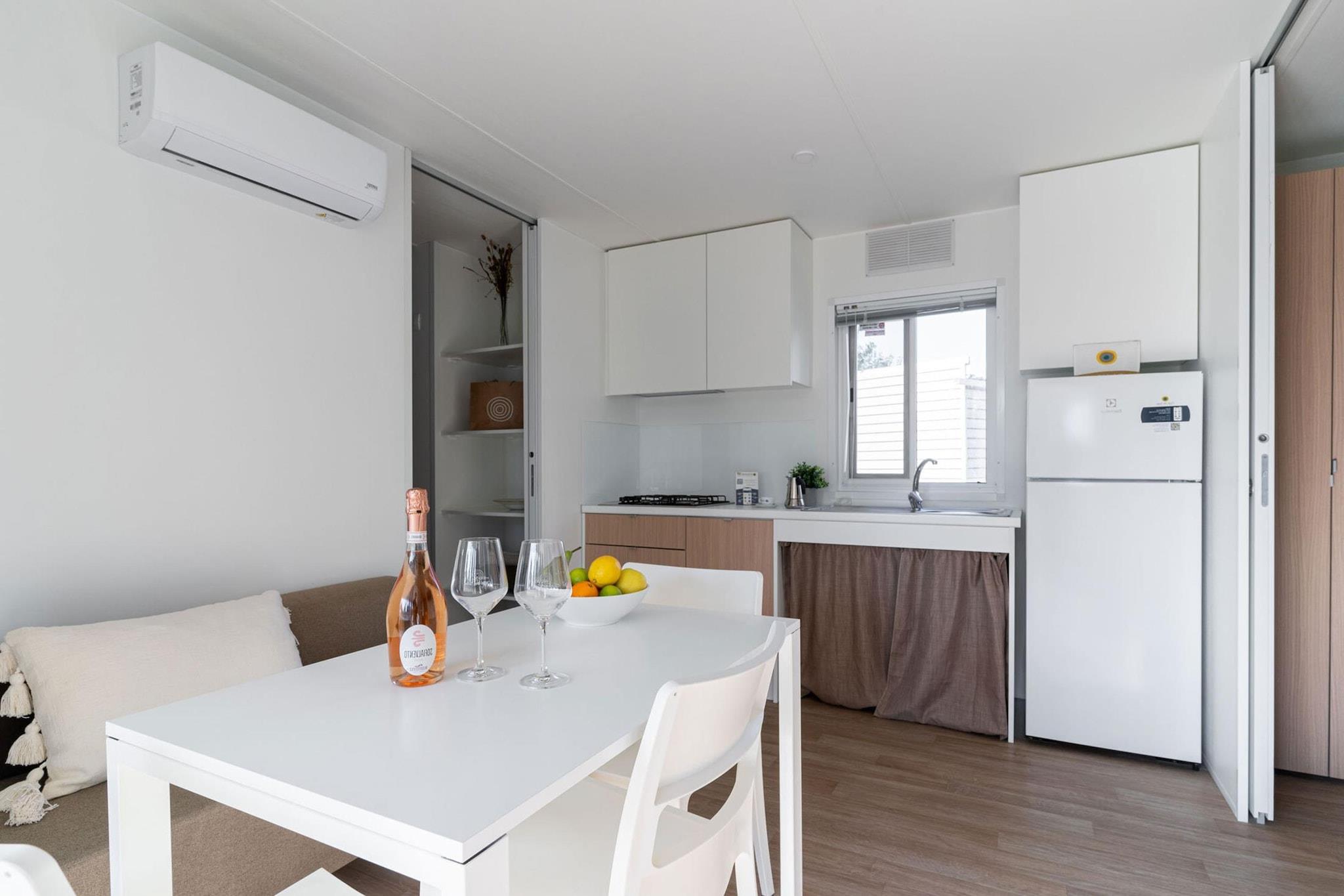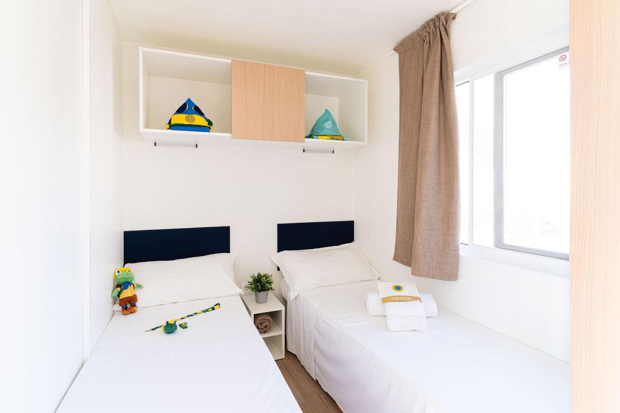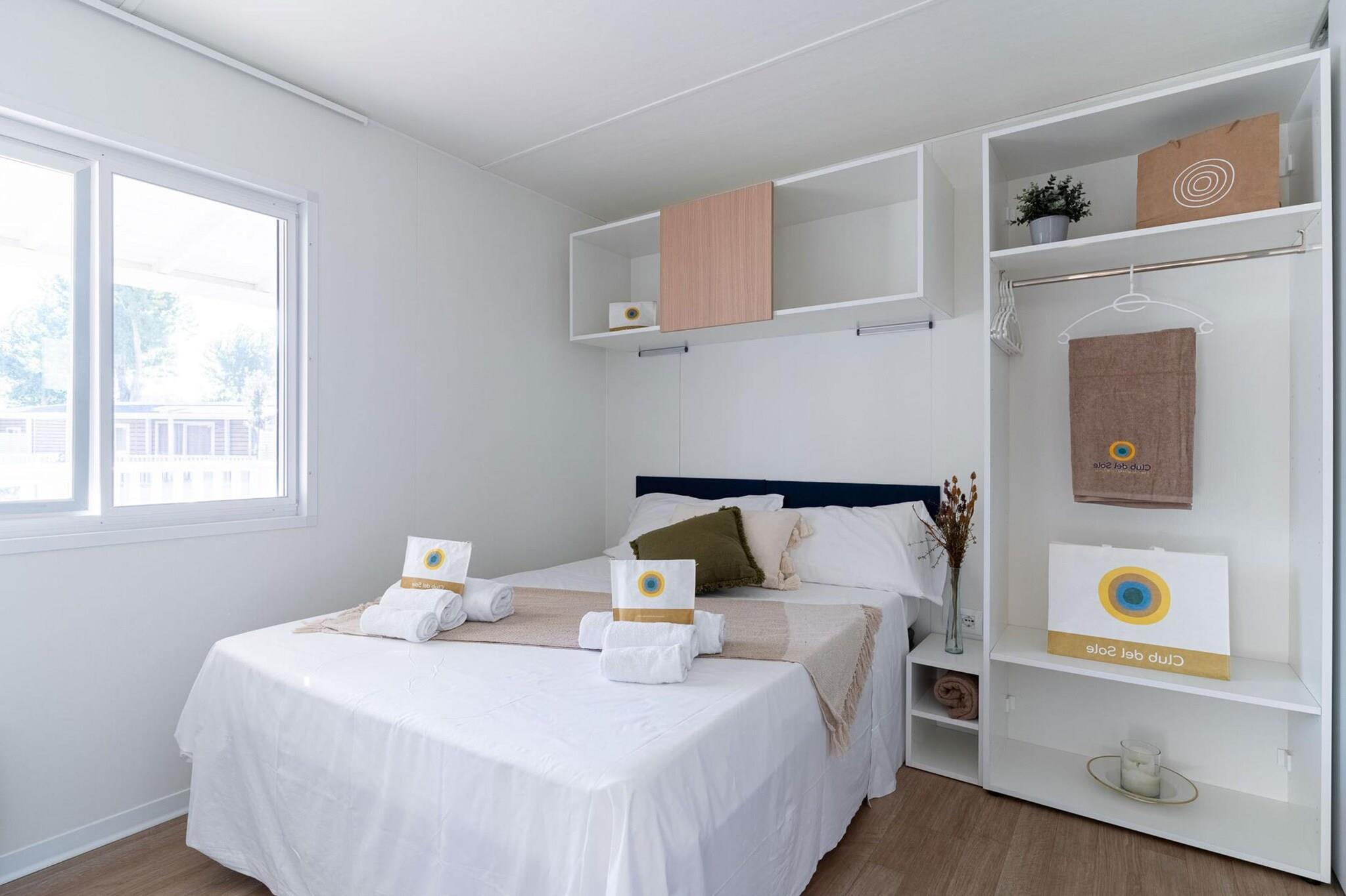 Stueetage: (Stue(enkeltsovesofa, Fjernsyn), tekøkken(kogeplade(gas), mikrobølgeovn, opvaskemaskine , køle-fryseskab), soveværelse(dobbeltseng), soveværelse(enkeltseng, enkeltseng, enkelthøjseng), badeværelse(bruser, toilet, bidet, føntørrer), badeværelse(bruser, toilet, bidet, føntørrer), veranda(Havemøbler), klimaanlæg) Reception, Vaske faciliteter, Parkering, Animation team, Supermarked, Cykeludlejning, Sportsbaner, Bordtennis, Restaurant, Bar, Børneklub, Legeområde, Bubble bath, solstole, Parasol, swimmingpool(deles med andre gæster, udendørs, herunder en del for børn (maks. dybde 50 cm), opened from 1/2 May upto and including 1/2 Sep), padelbane