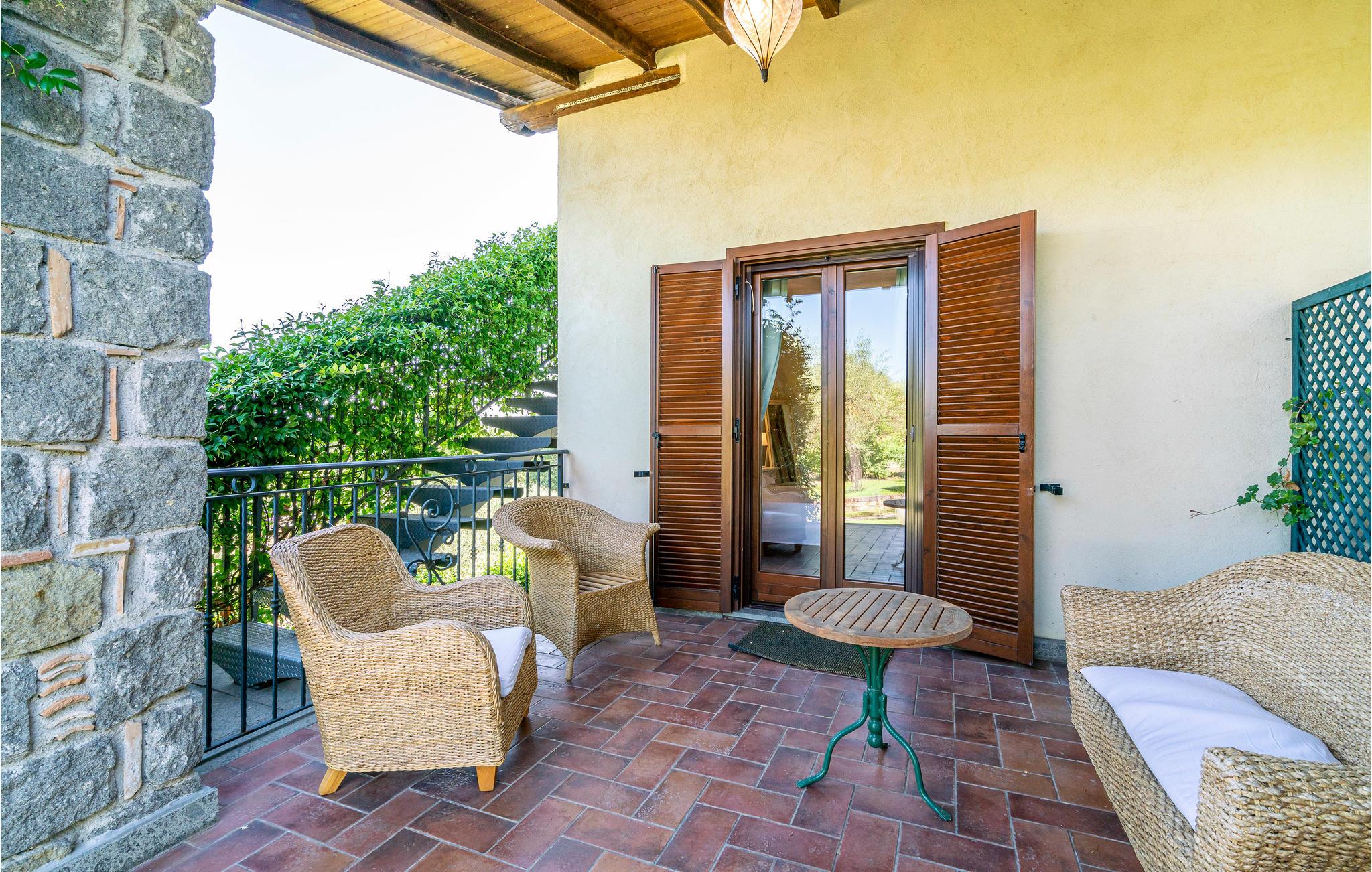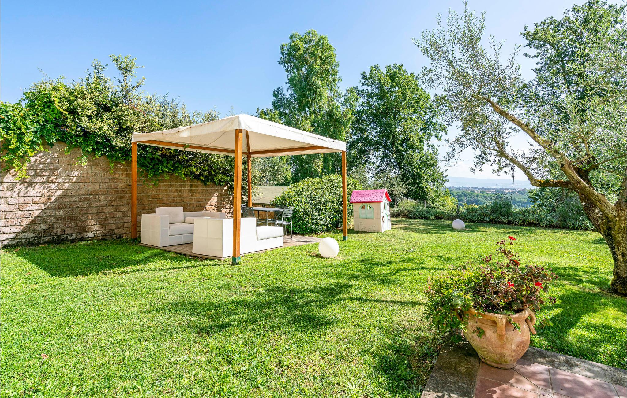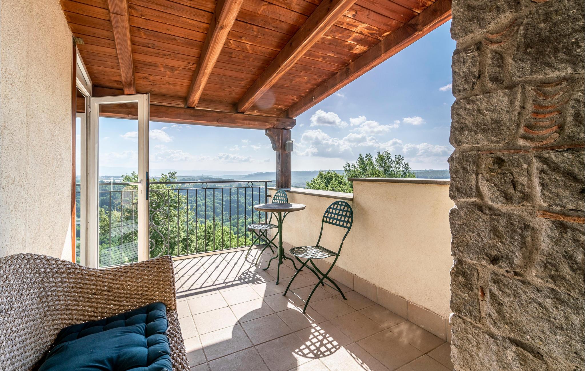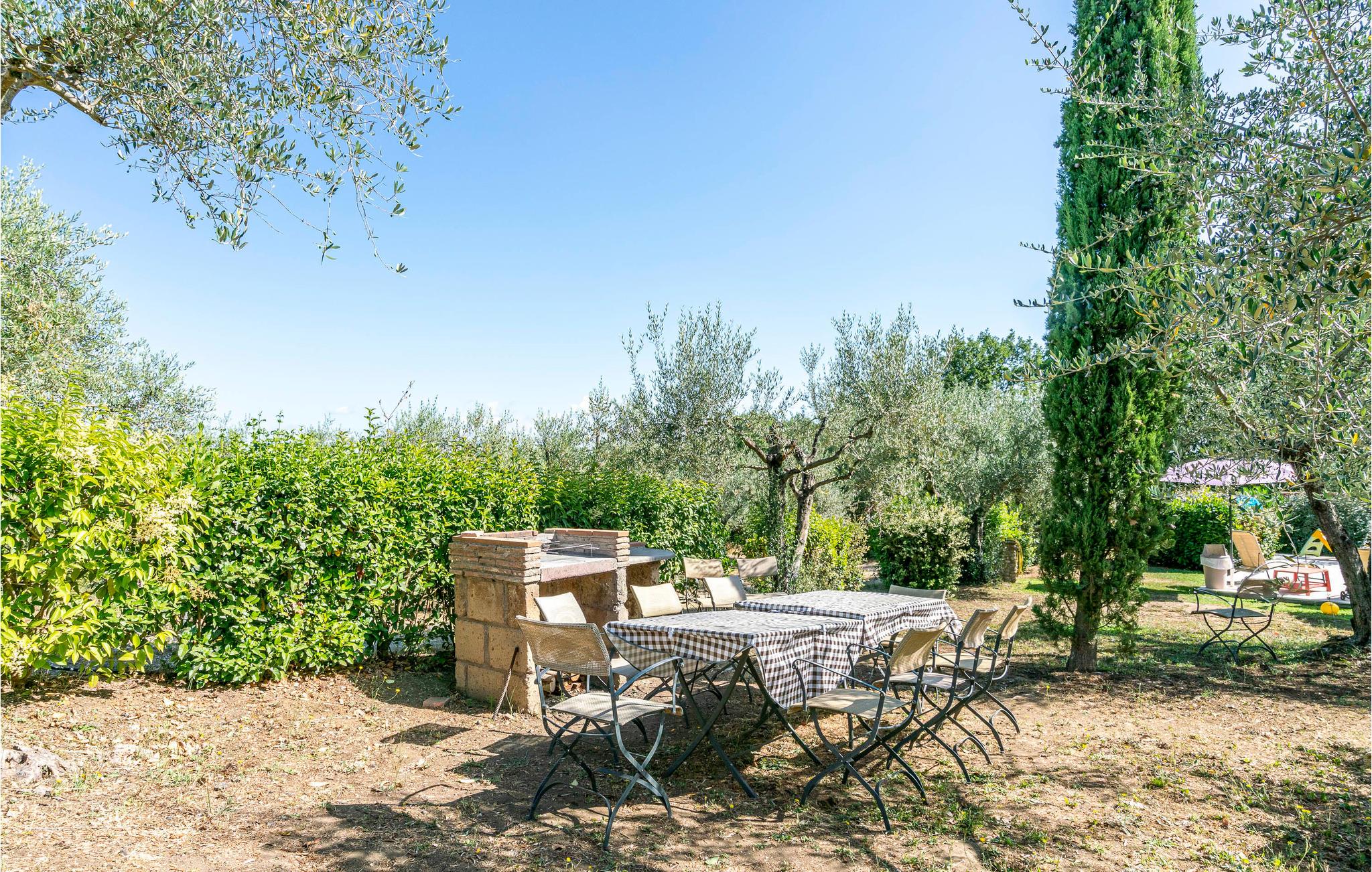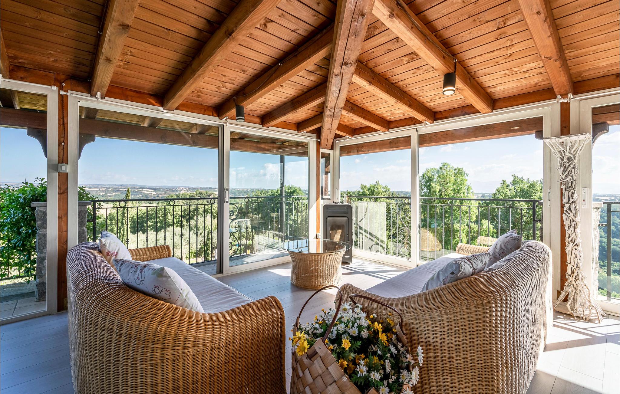 Olivenlundene, vinbjergene og hasselnøddetræerne, der omgiver dette store feriehus, giver jer absolut privatliv og ro. Huset, der ligger dominerende over en grøn dal, to km fra middelalderbyen Vitorchiano, giver jer flere pladser til rekreation og afslapning, en stor have og en stor pool. I taghaven, der kan lukkes af med glasdøre og er udstyret med en grill, kan I nyde jeres måltider og samtidig beundre det vidunderlige landskab i Tuscia Romana. Da huset er meget rummeligt, er det oplagt til en stor familie, eller til en gruppe venner der gerne vil holde ferie sammen. Den sidste km tilkørsel er grusvej, der ikke er egnet til sportsvogne og busser. Takket være den gunstige beliggenhed kan I nemt udforske regionerne Umbrien og Latium. Afstande: Middelalderbyen Vitorchiano 2 km, Viterbo 7 km, Tuscania 25 km, Orvieto 40 km, Rom 80 km. Inden for en omkreds på 25 km ligger Vivo-Søen, Bracciano-Søen og Bolsena-Søen.