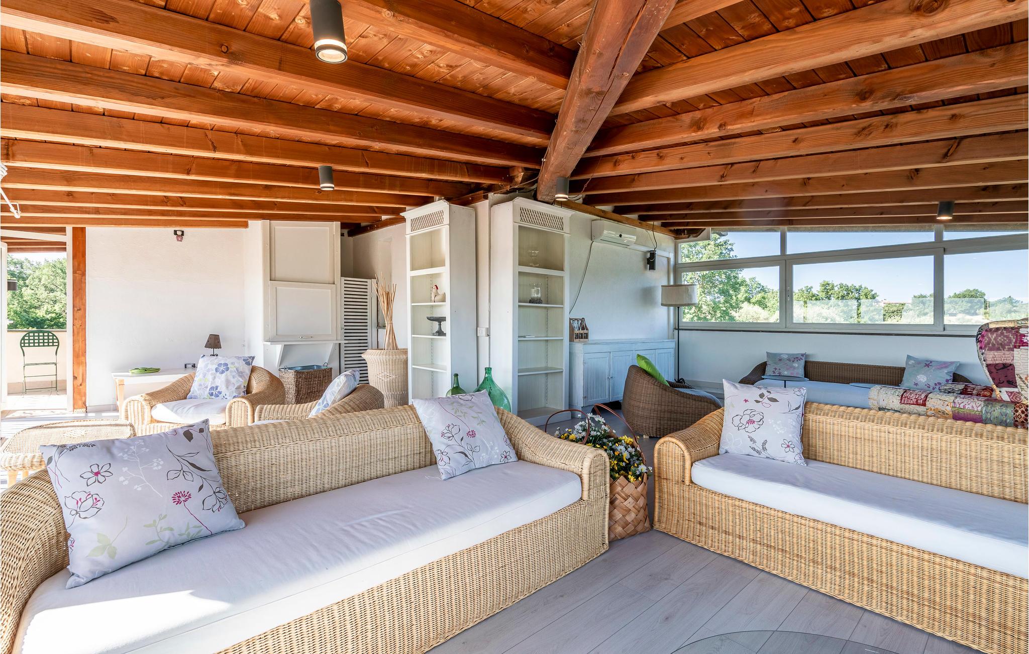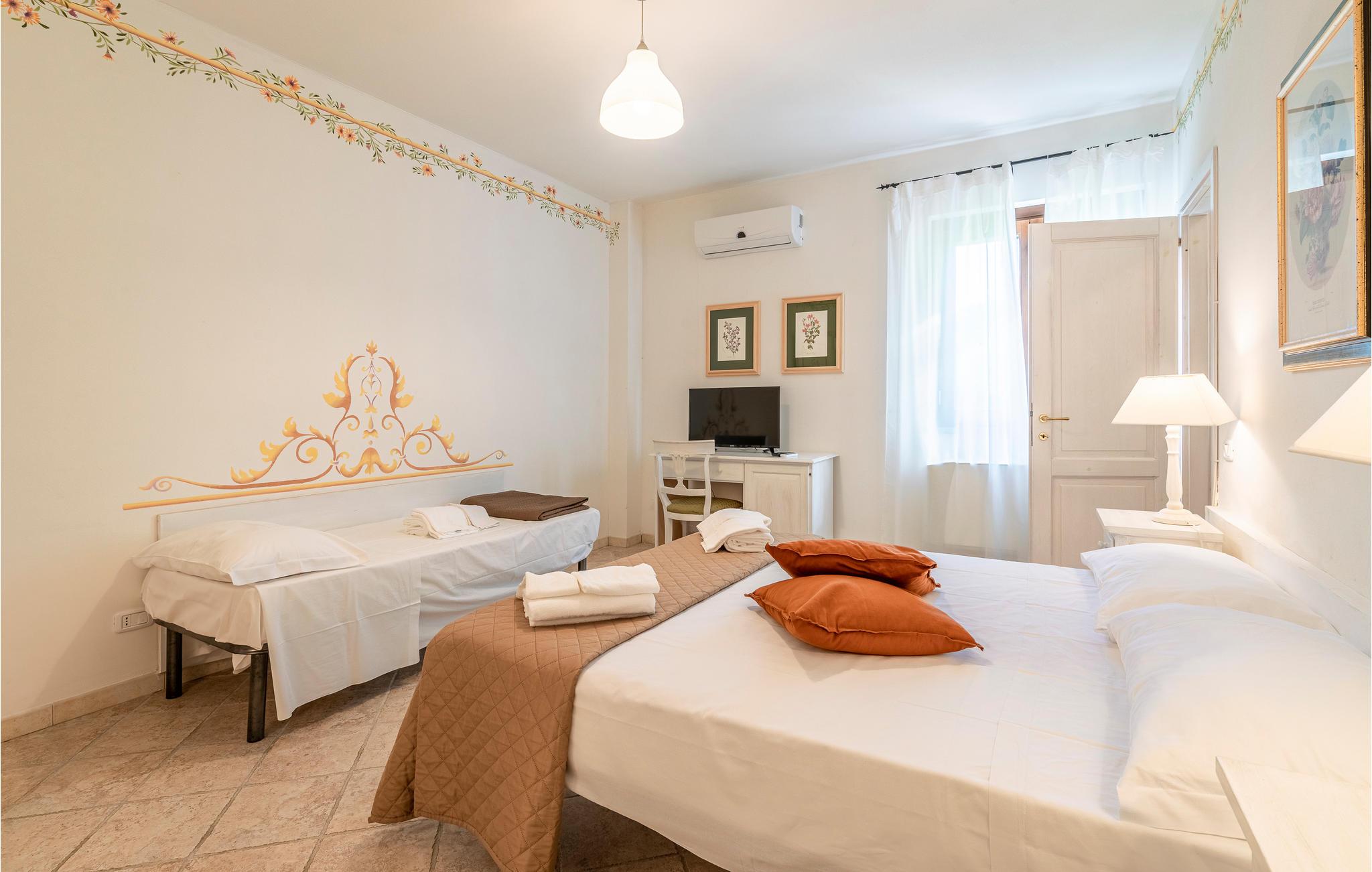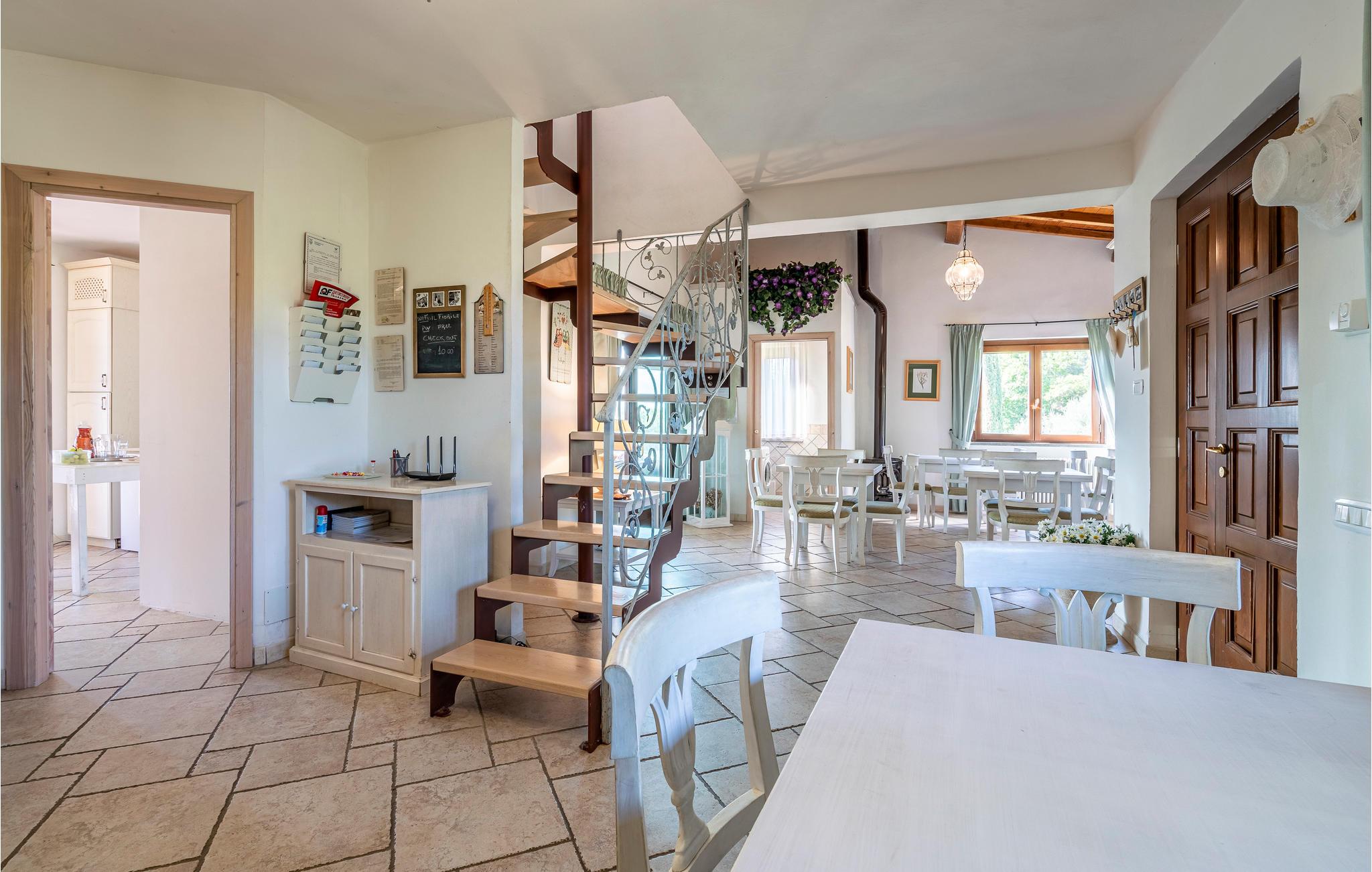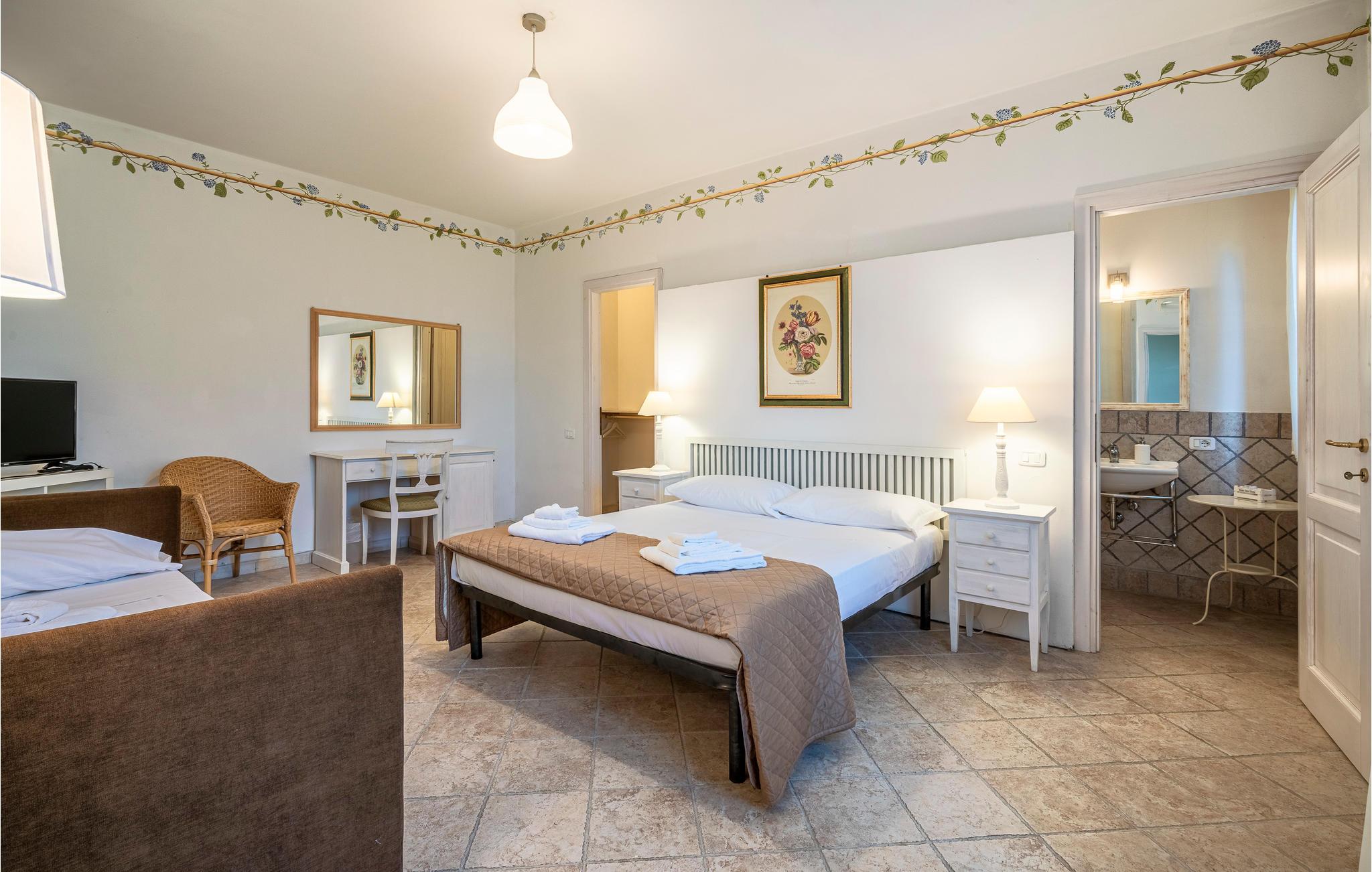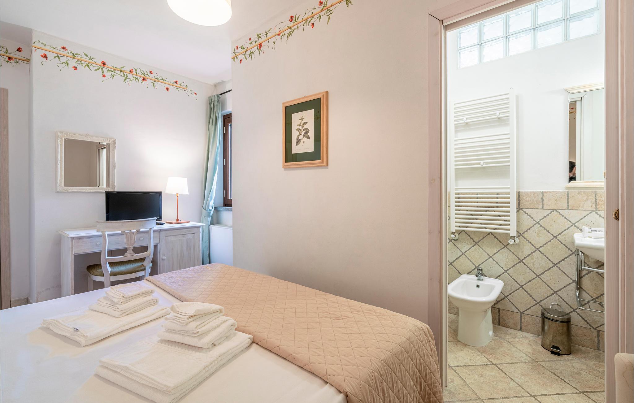 Olivenlundene, vinbjergene og hasselnøddetræerne, der omgiver dette store feriehus, giver jer absolut privatliv og ro. Huset, der ligger dominerende over en grøn dal, to km fra middelalderbyen Vitorchiano, giver jer flere pladser til rekreation og afslapning, en stor have og en stor pool. I taghaven, der kan lukkes af med glasdøre og er udstyret med en grill, kan I nyde jeres måltider og samtidig beundre det vidunderlige landskab i Tuscia Romana. Da huset er meget rummeligt, er det oplagt til en stor familie, eller til en gruppe venner der gerne vil holde ferie sammen. Den sidste km tilkørsel er grusvej, der ikke er egnet til sportsvogne og busser. Takket være den gunstige beliggenhed kan I nemt udforske regionerne Umbrien og Latium. Afstande: Middelalderbyen Vitorchiano 2 km, Viterbo 7 km, Tuscania 25 km, Orvieto 40 km, Rom 80 km. Inden for en omkreds på 25 km ligger Vivo-Søen, Bracciano-Søen og Bolsena-Søen.