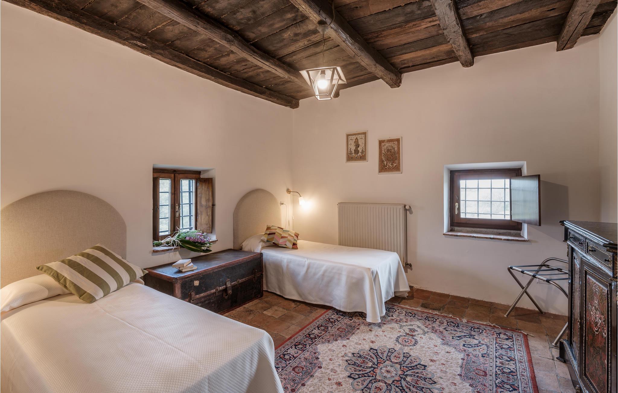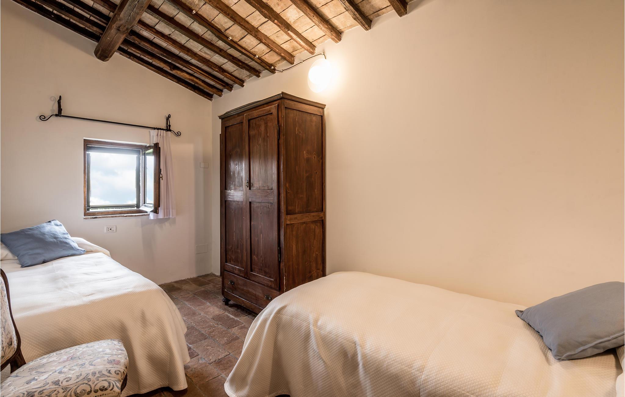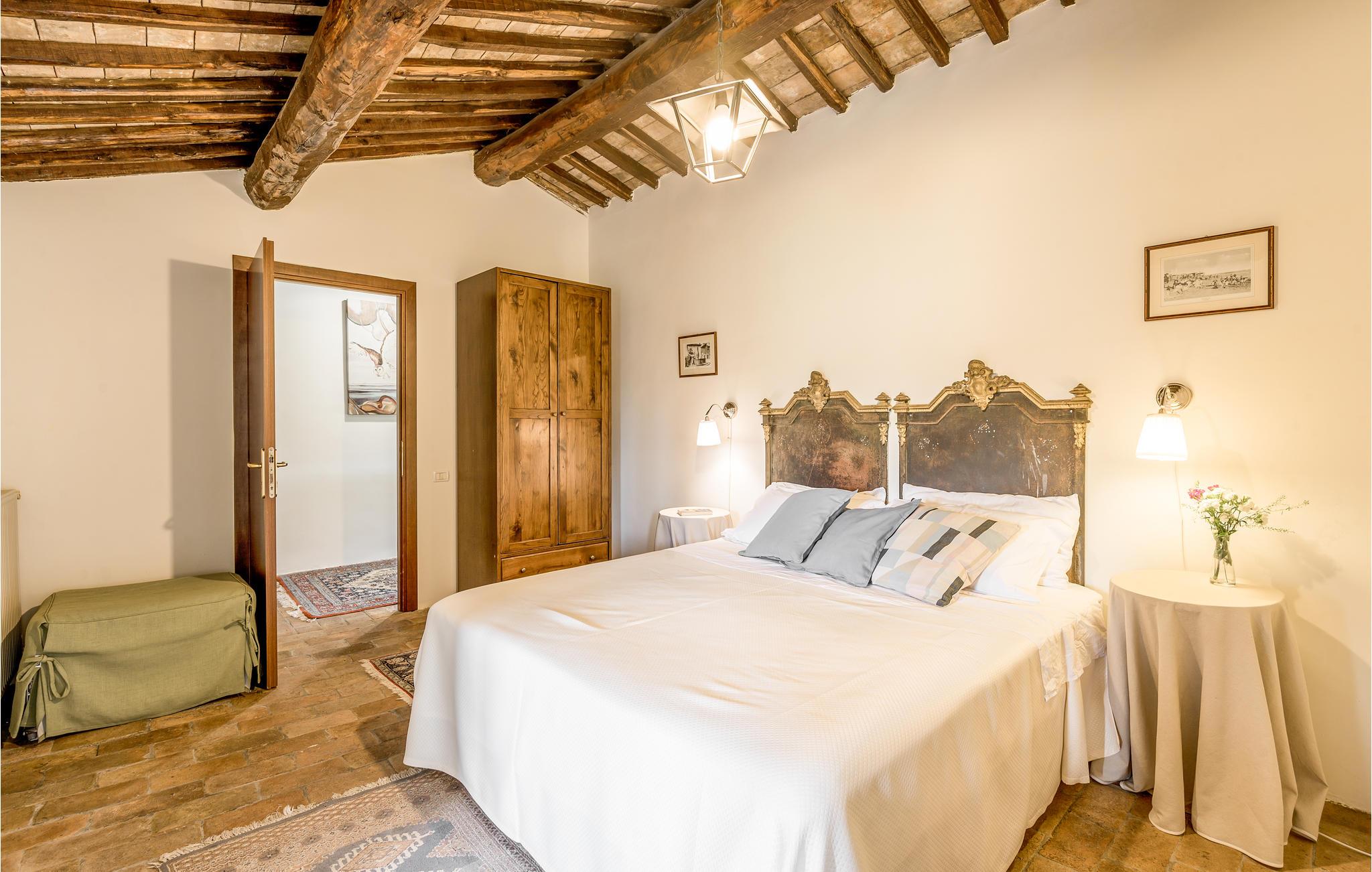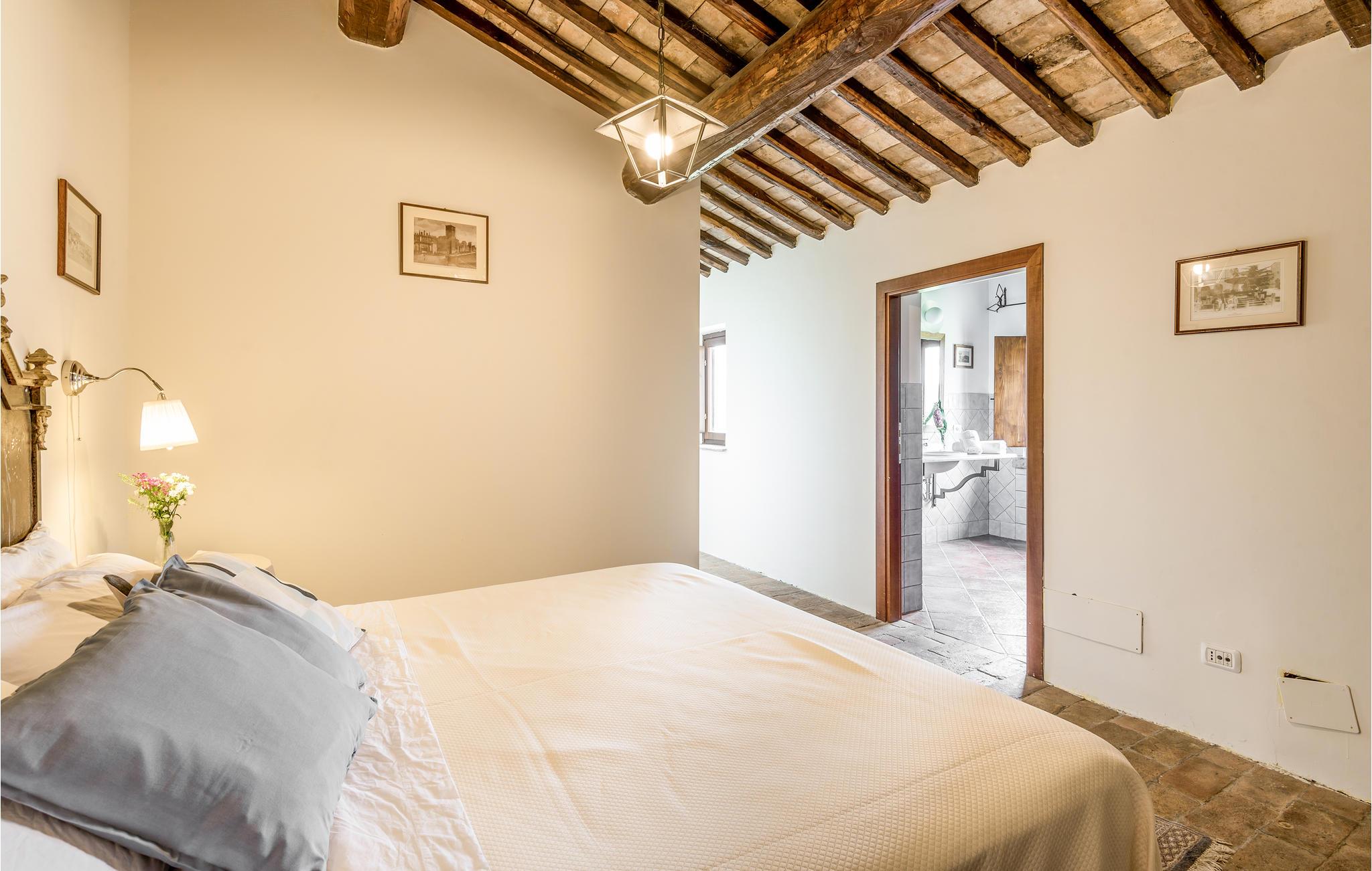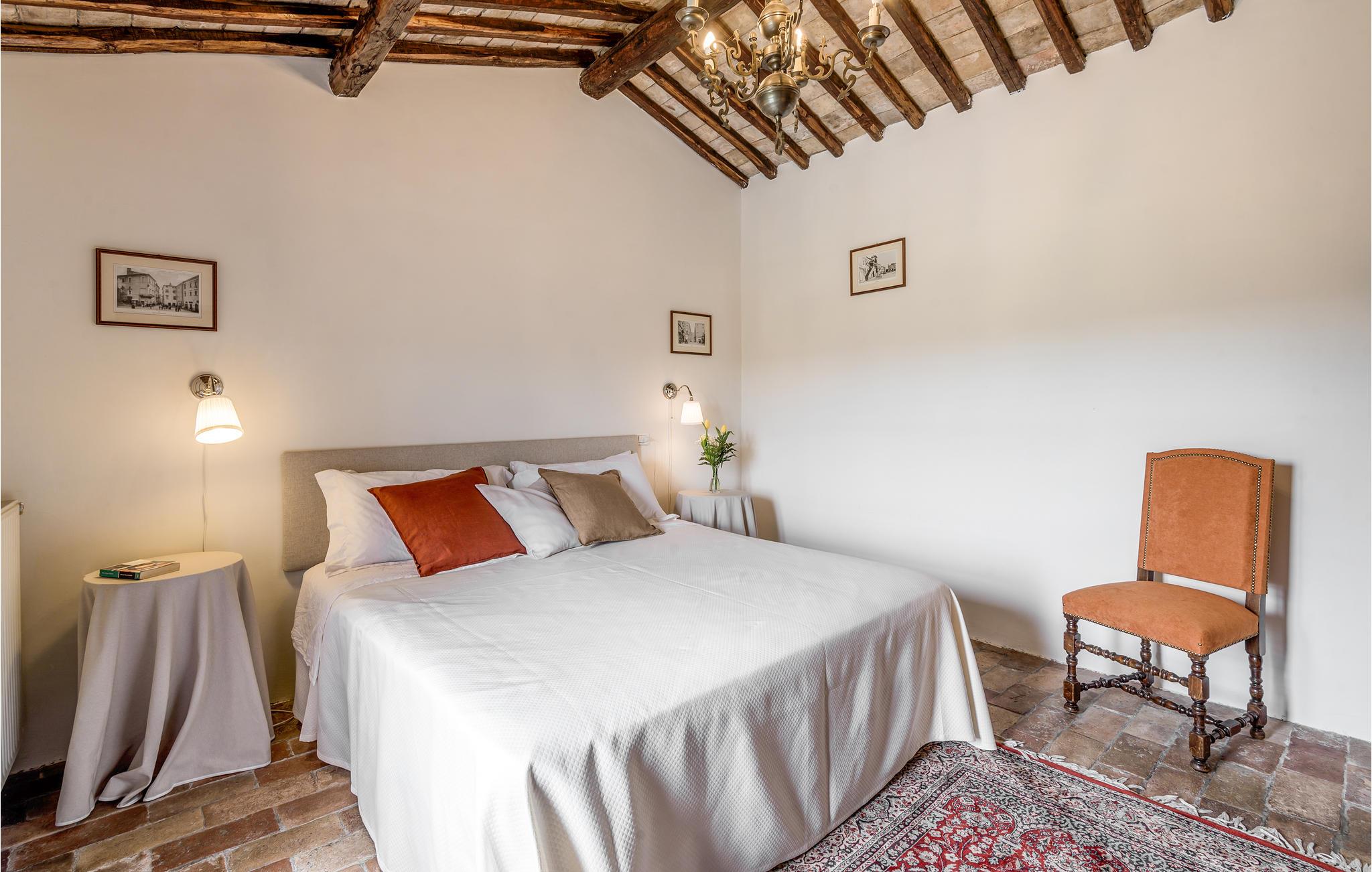 Huset ligger på en høj og er omgivet af en græsplæne, en frugtplantage og en olivenlund. Grunden er indhegnet. Der er swimmingpool og et børnebassin (4 x 4 m, maks. dybde 1.20 m). Hvis I har lyst, kan I besøge en etruskisk gravplads. Stue med klaver, bibliotek med adgang til haven, spisestue med adgang til haven (lysthus med bord og stråtag), spisekøkken bag huset med overdækket terrasse, hvor I også kan spise. Tilkørsel gennem automatisk indkørselsport.