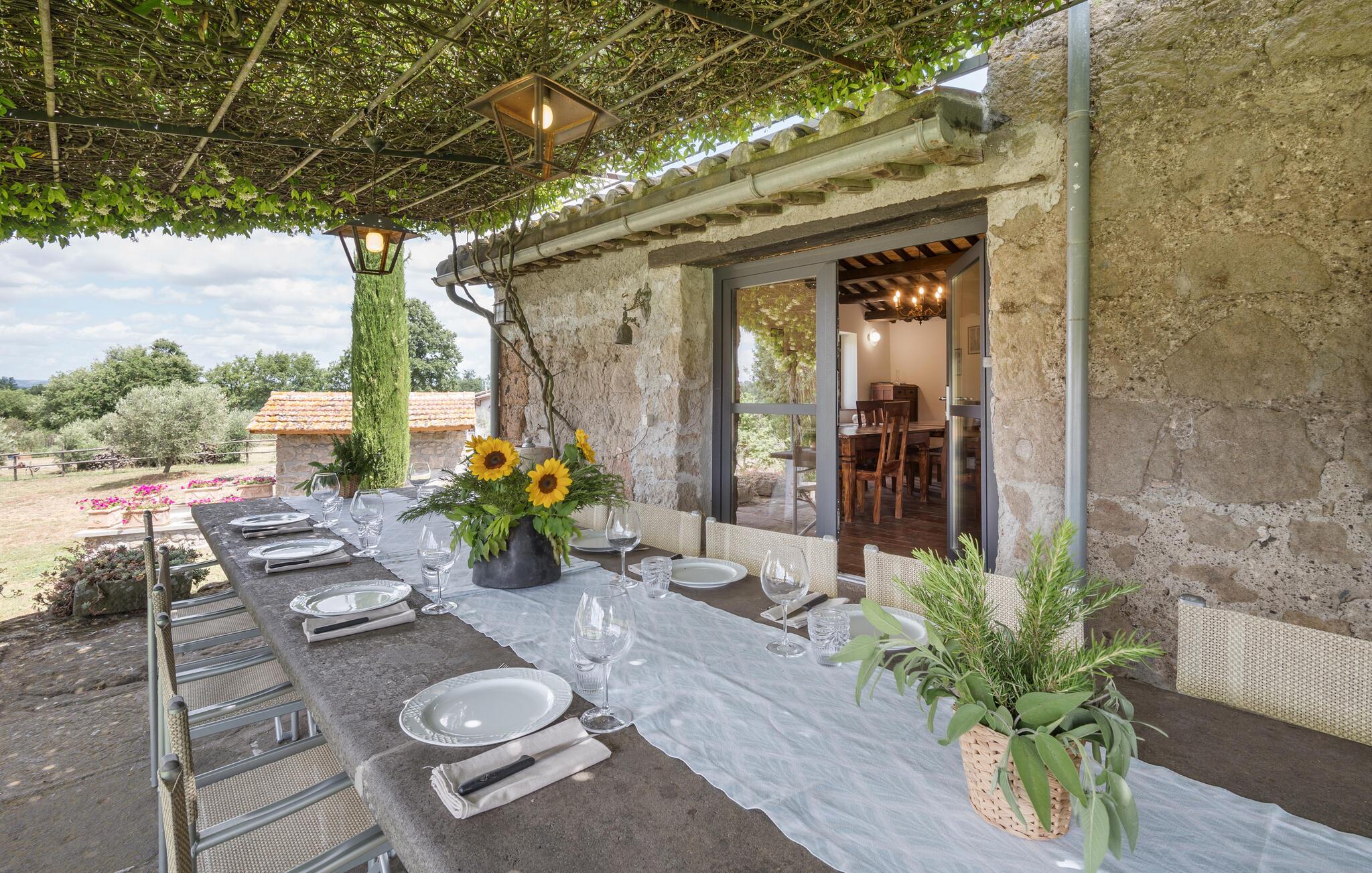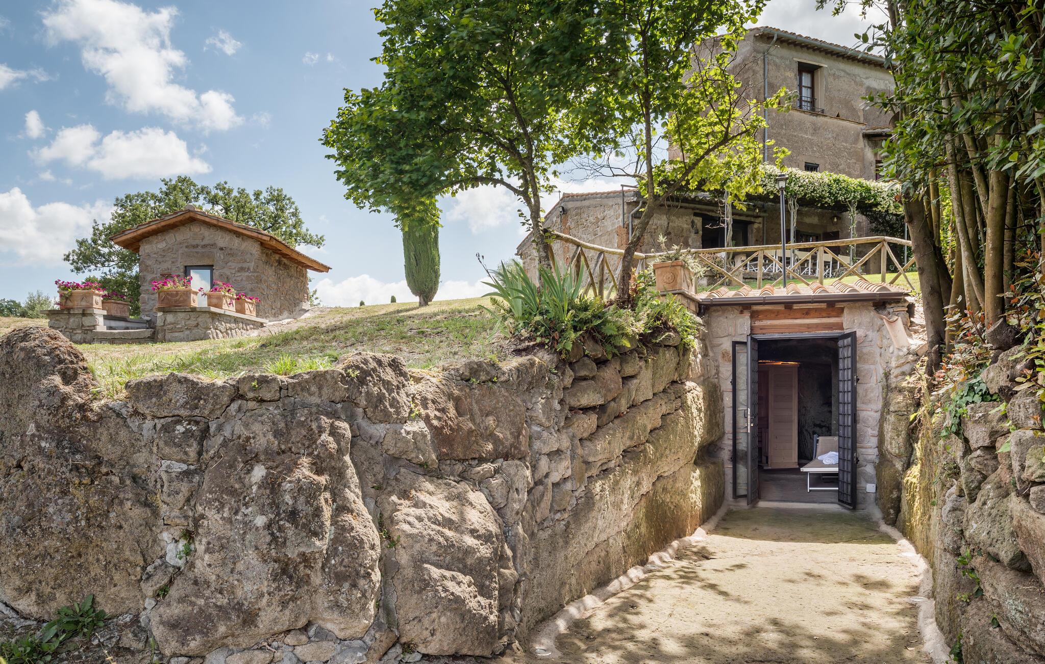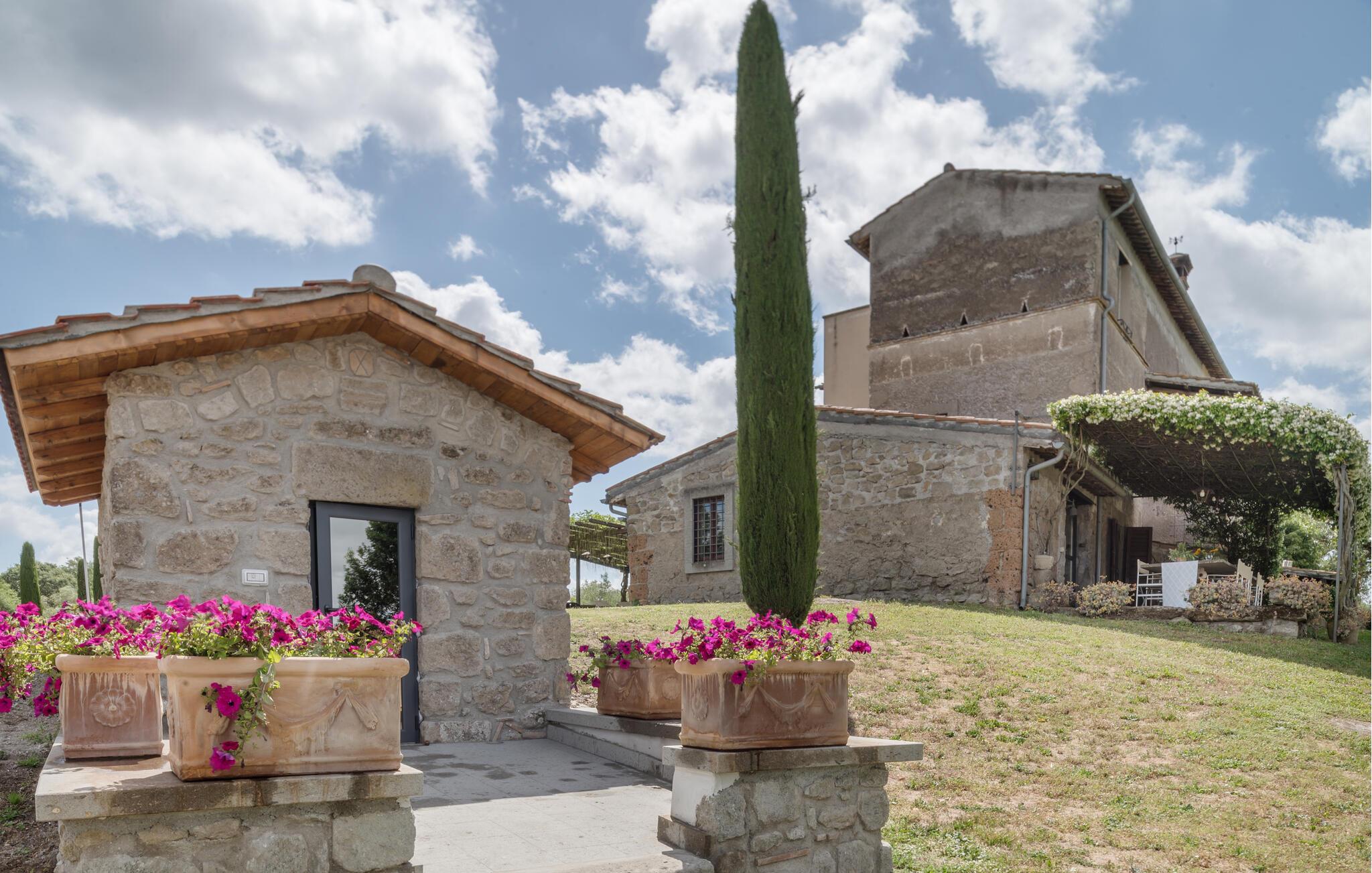 Gammelt landsted i tre niveauer i hjertet af de grønne bakker i Tuscia Romana, tæt ved en lille etruskisk gravplads, ca to km fra landsbyen Vitorchiano.