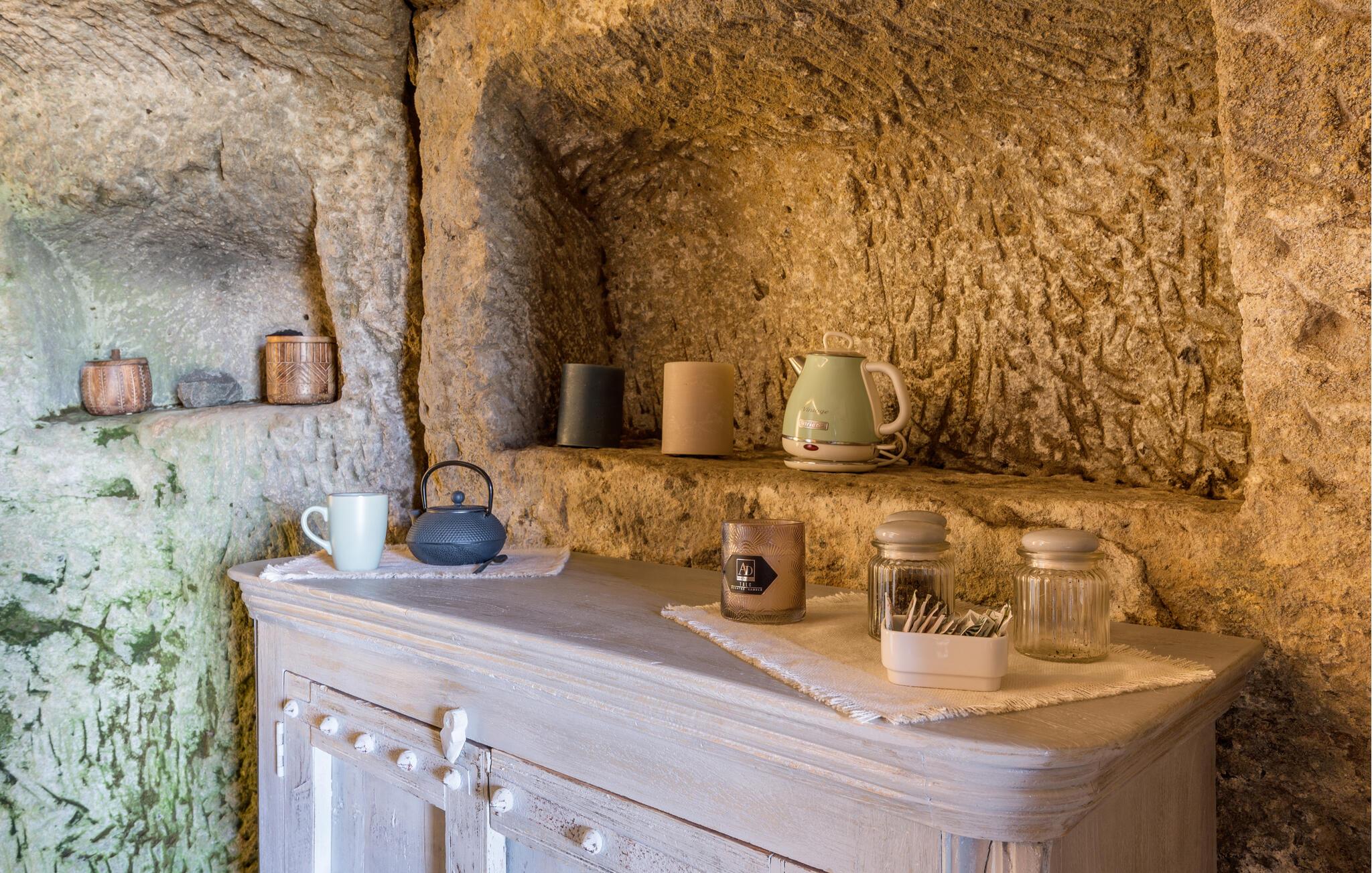 Det er muligt at bestille forskellige former for wellnesstilbud på stedet samt færdige måltider. Mulighed for at deltage i guidede ture i området, både arkæologiske, søture, til termer, kulturelle og gastronomiske ture. På stedet sælges også gårdens egen vin og olie. Ved forespørgsel og mod betaling er der morgenmadsservice. Komfortabel indretning.