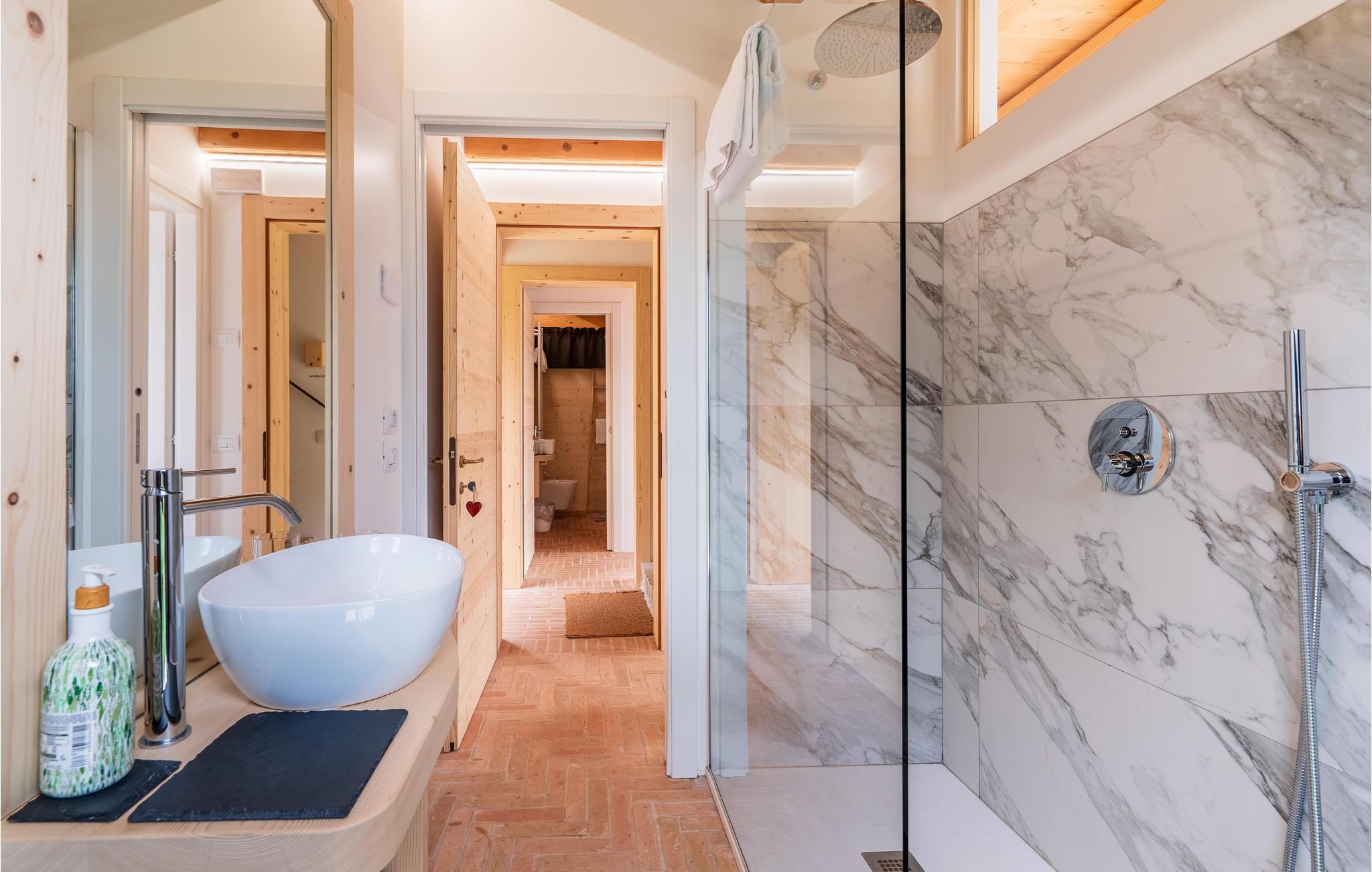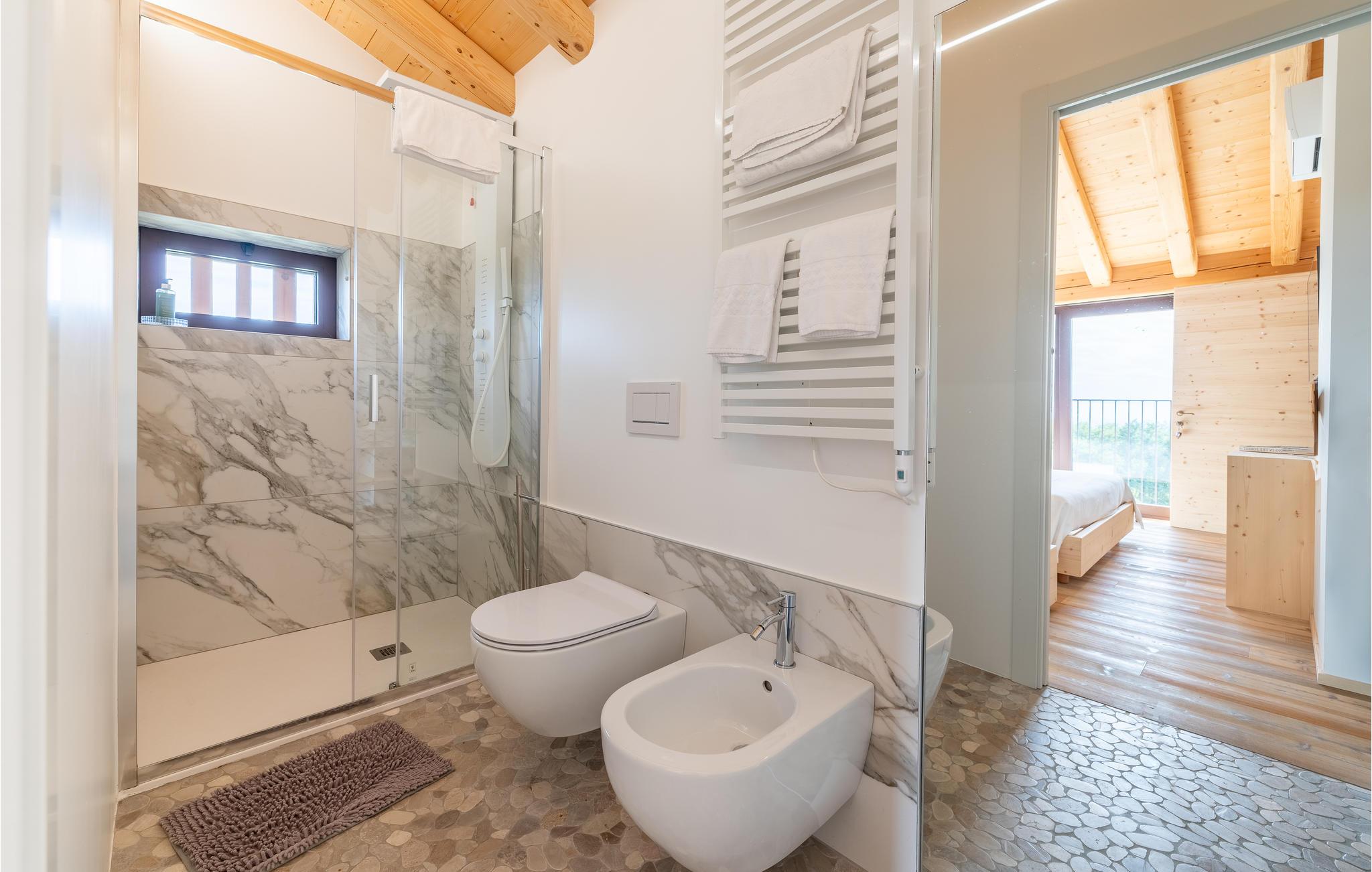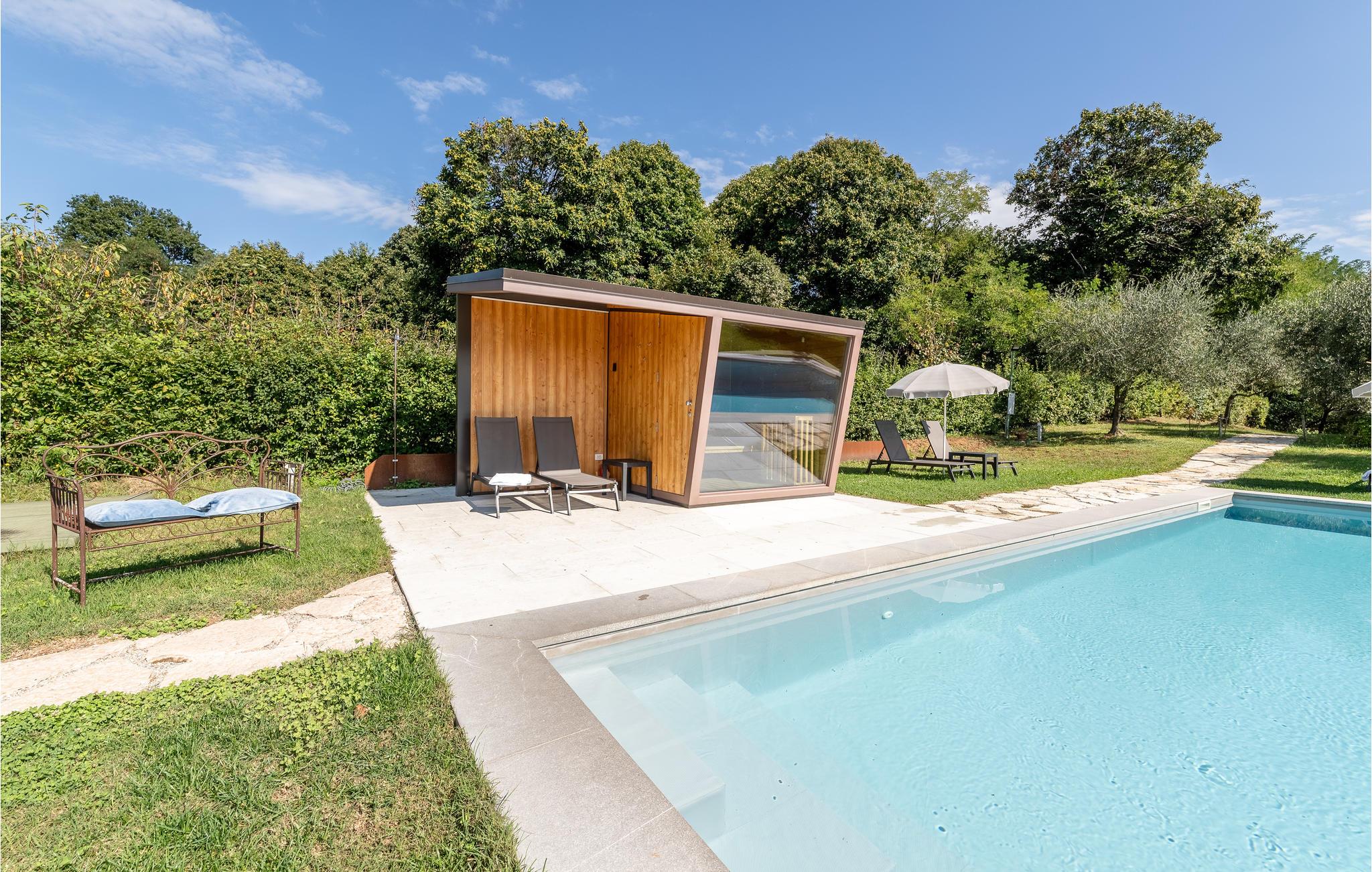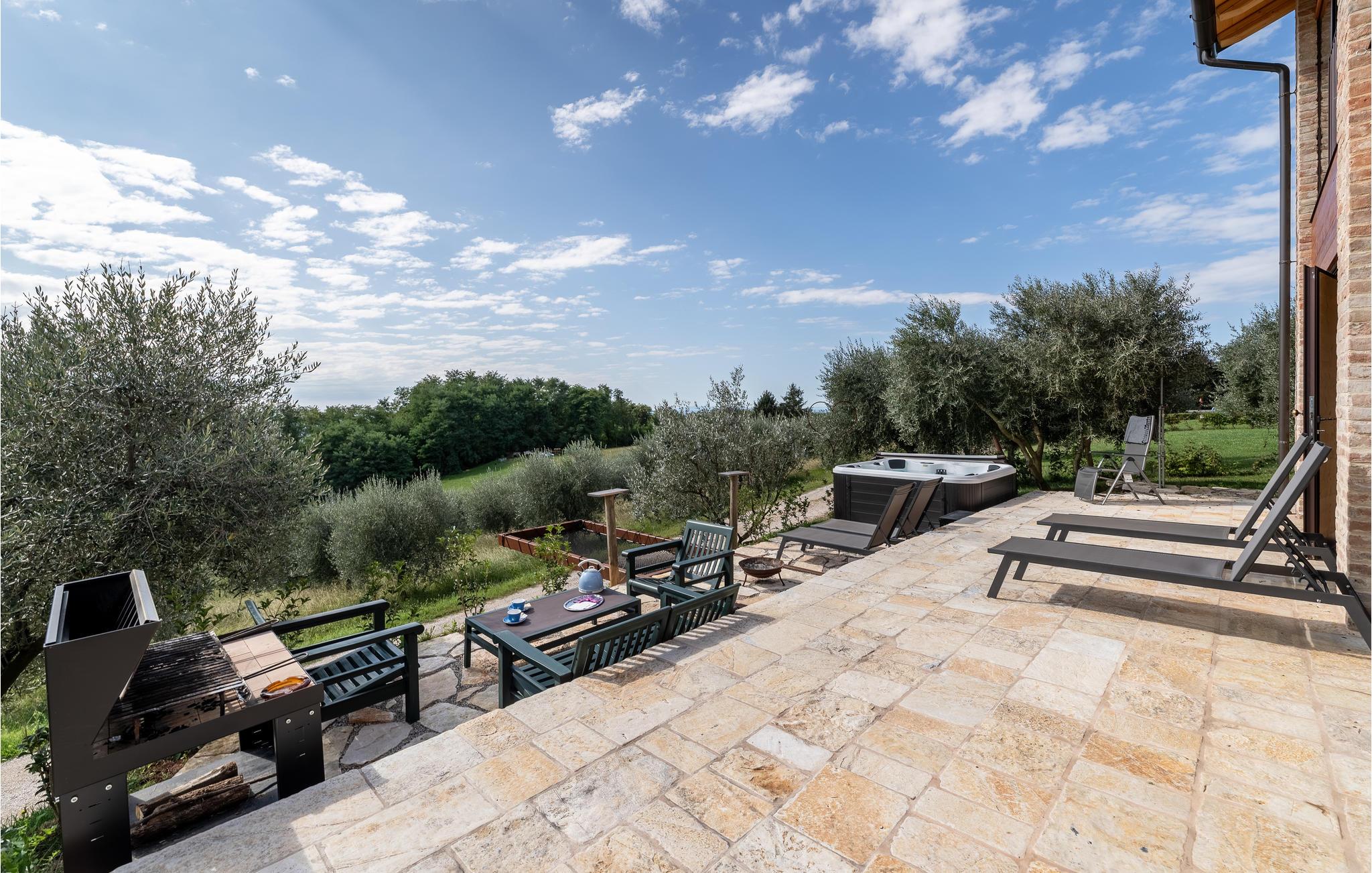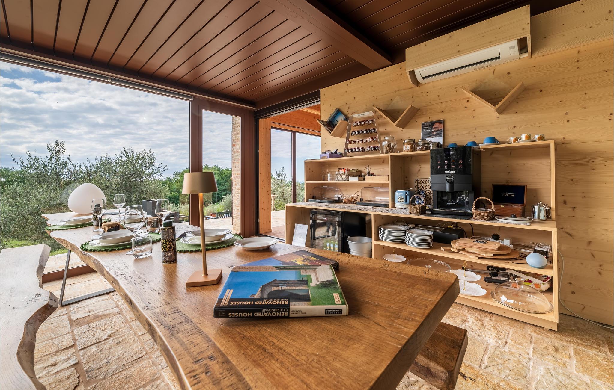 Dette rummelige feriehus byder velkommen i en charmerende beliggenhed omgivet af gamle oliventræer. Interiøret af høj kvalitet strækker sig over to etager og gør et stilrent indtryk. Her får I ikke kun et moderne sommerhus med al komfort, men også den perfekte, rustikke atmosfære til en afslappende ferie med jeres kære.