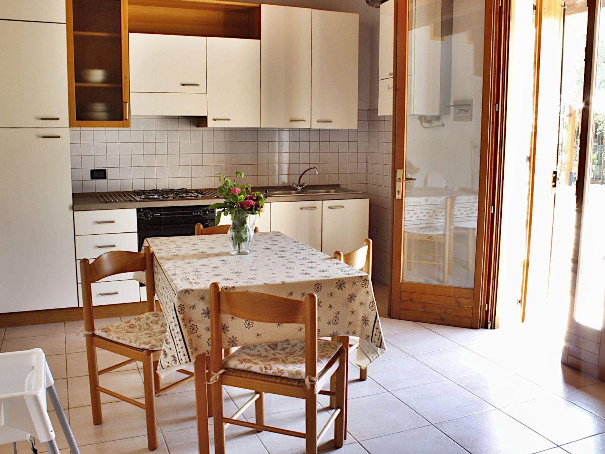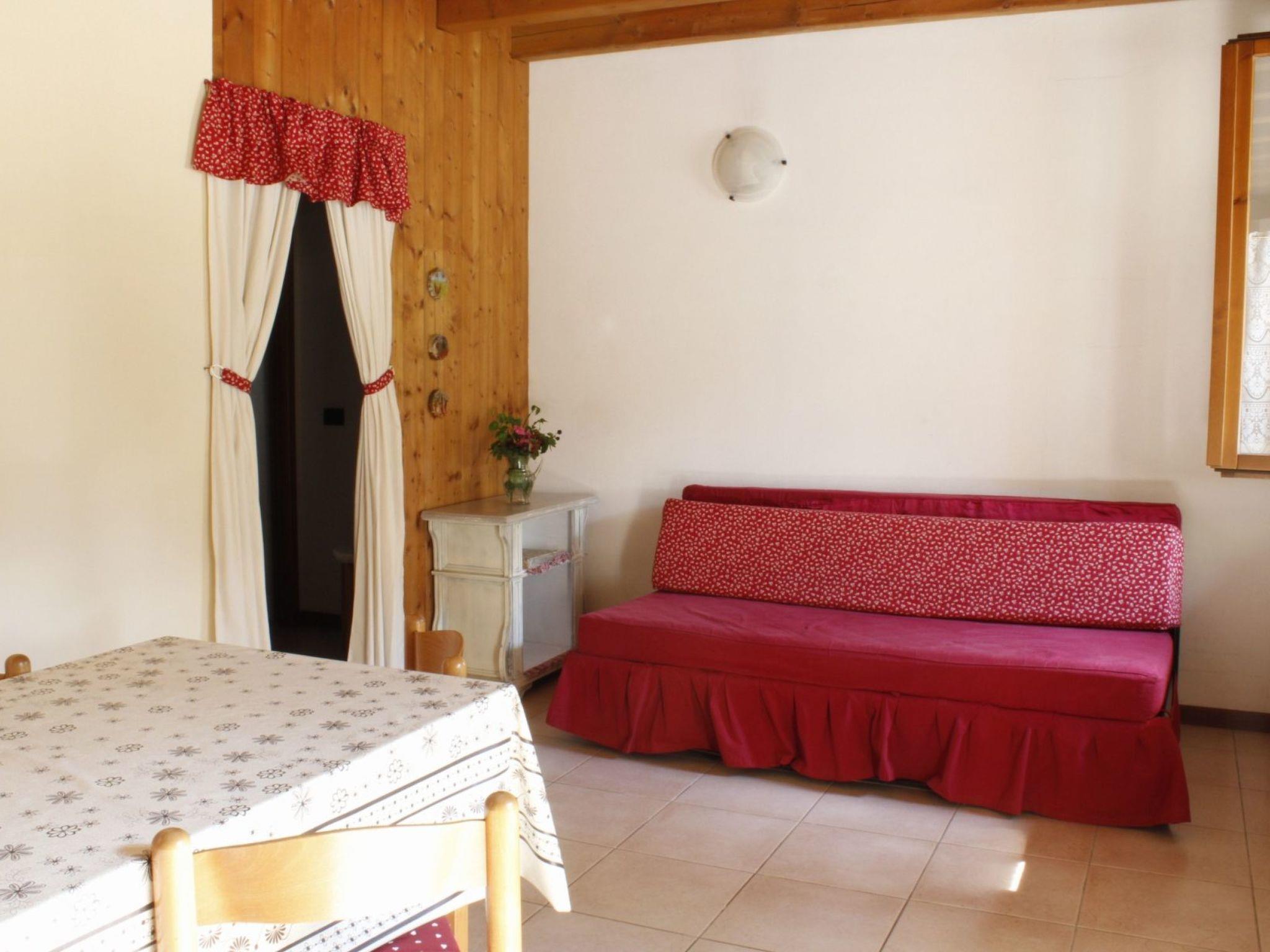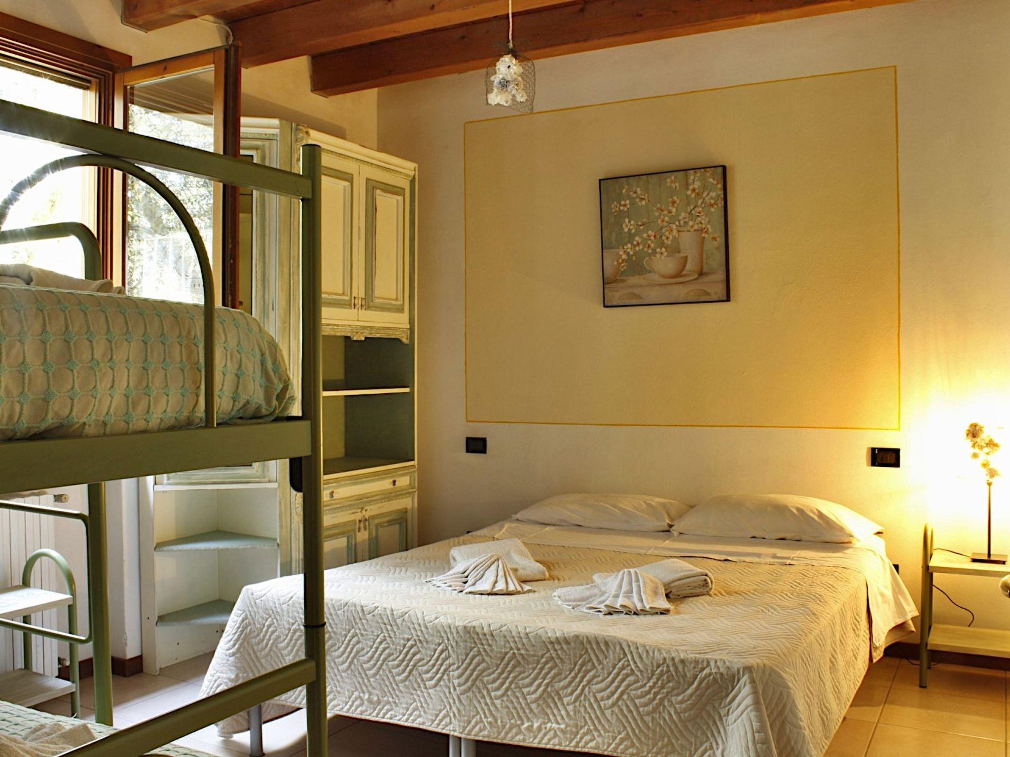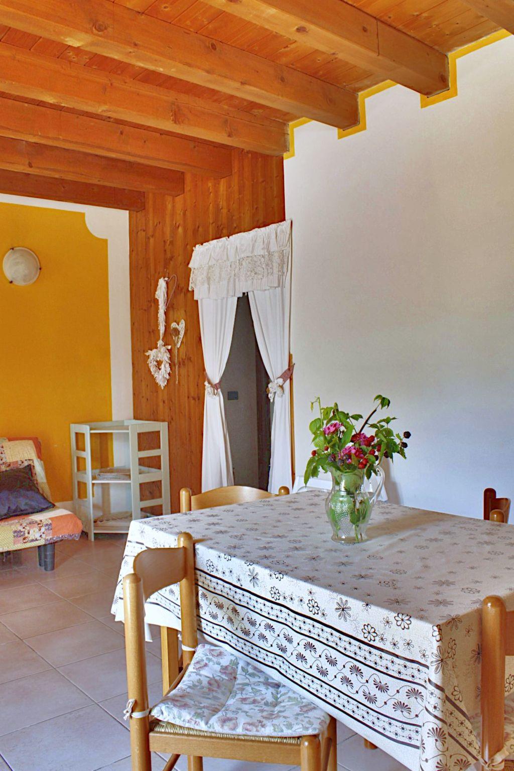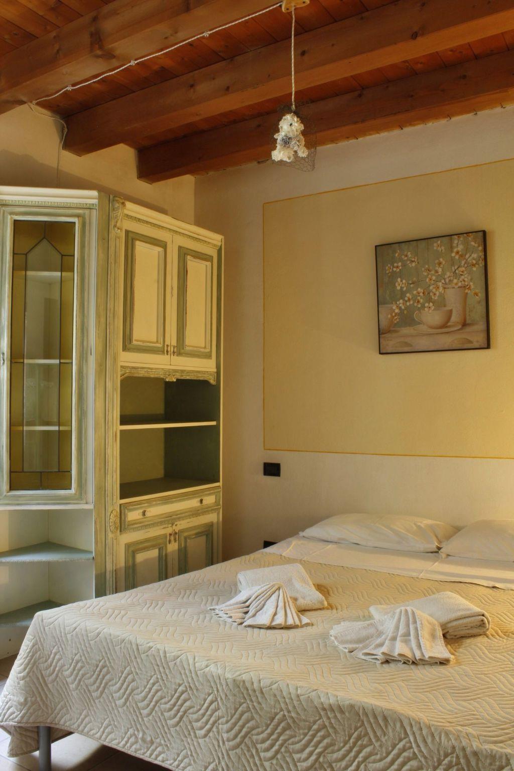 The flats are about 45 square metres and have an independent entrance. They consist of a bedroom with a double bed (1.60 x 1.80 m) and a bunk bed (0.80 x 1.80 m), as well as a wardrobe. The bathroom, with a small ante-bathroom, is equipped with a washbasin, mirror, WC, bidet and shower. The living room offers a sofa bed for two persons, heating with thermostat and meter, a table with six chairs, and an open kitchen. The kitchenette is equipped with a refrigerator with freezer, dishes, cutlery, tablecloths, dishtowels, pots, pans, glasses, espresso machine, electric filter coffee machine, electric oven, four-burner gas hob with electric ignition, and sink with dish rack.