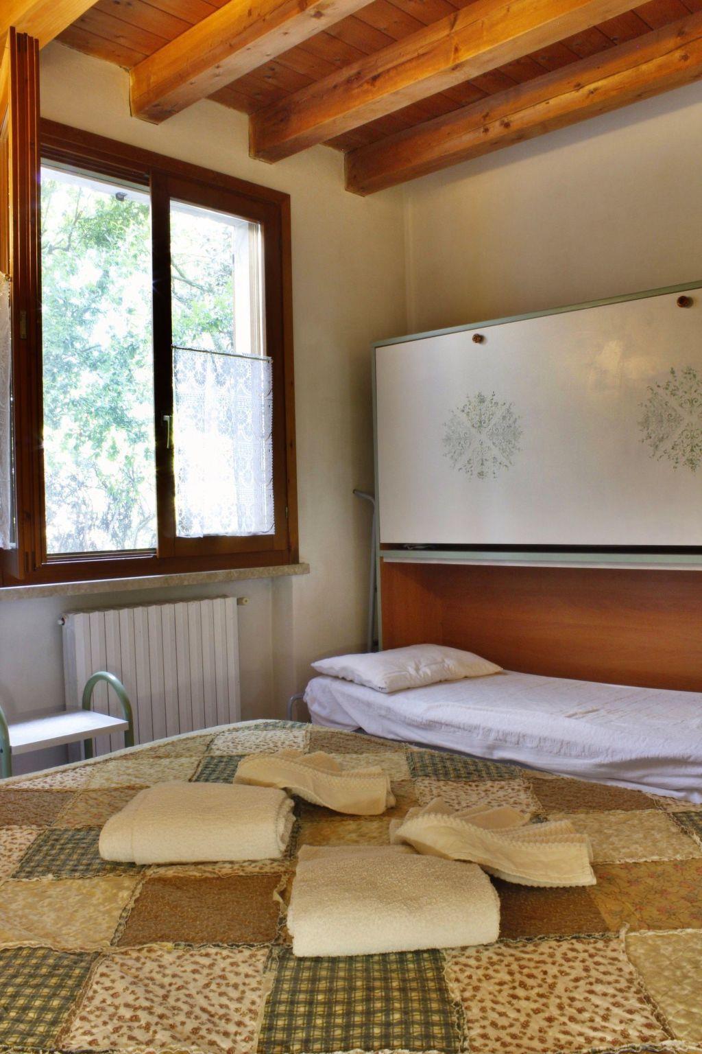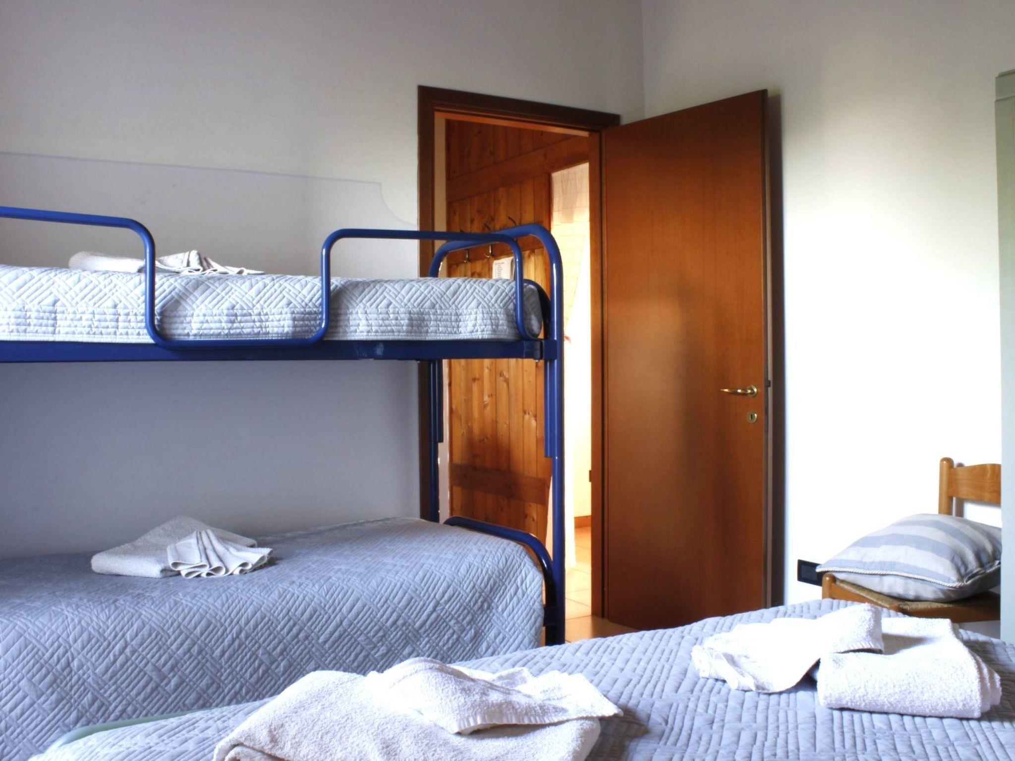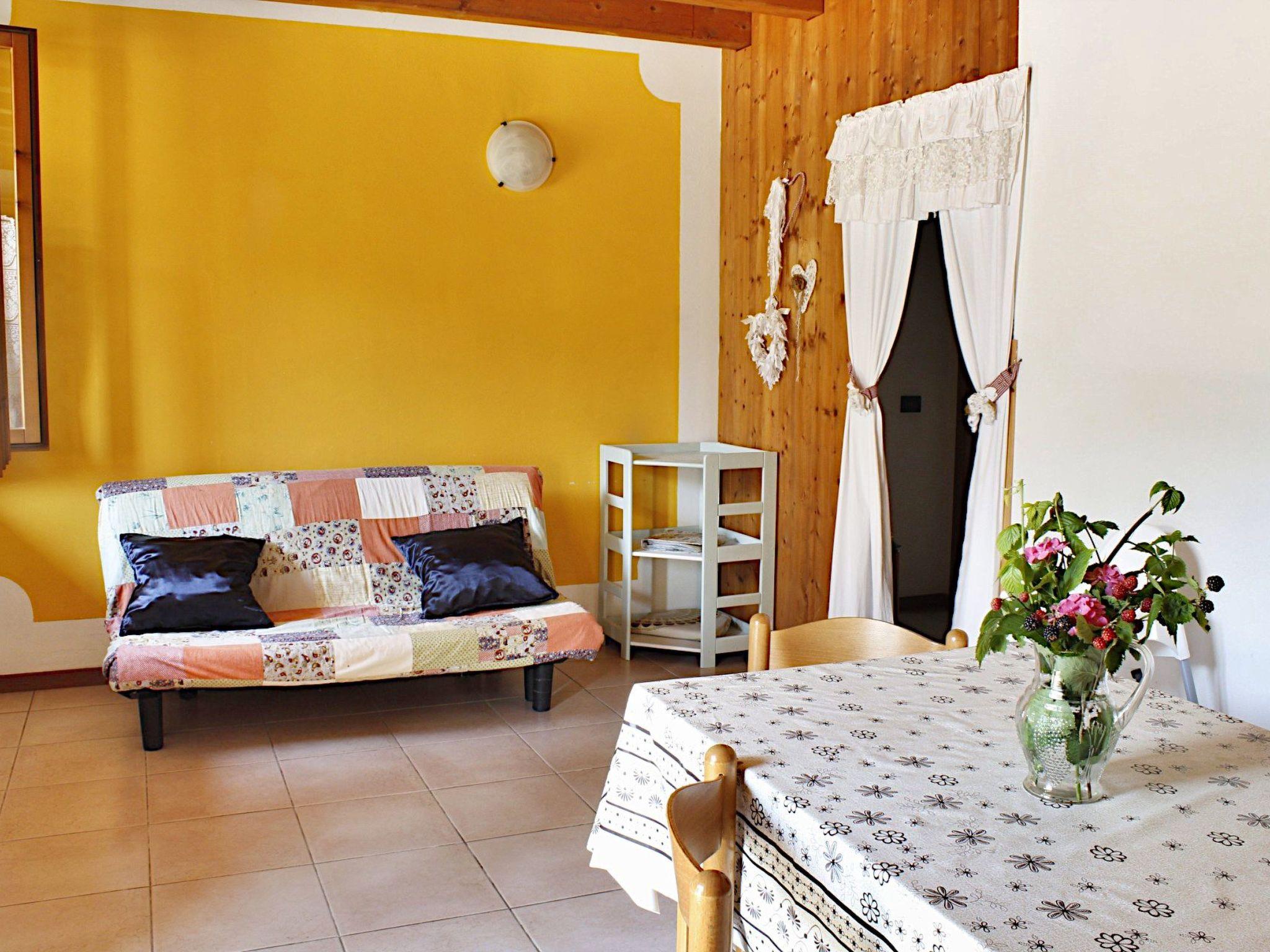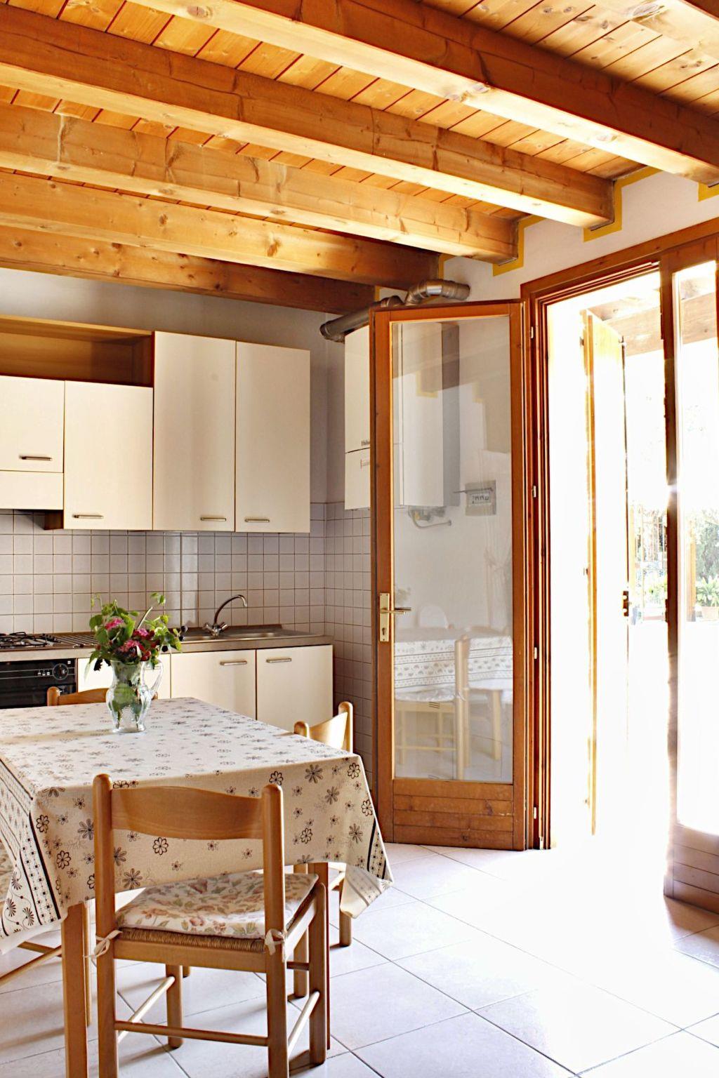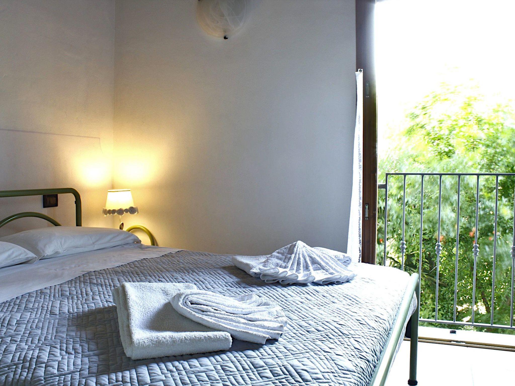 The flats are about 45 square metres and have an independent entrance. They consist of a bedroom with a double bed (1.60 x 1.80 m) and a bunk bed (0.80 x 1.80 m), as well as a wardrobe. The bathroom, with a small ante-bathroom, is equipped with a washbasin, mirror, WC, bidet and shower. The living room offers a sofa bed for two persons, heating with thermostat and meter, a table with six chairs, and an open kitchen. The kitchenette is equipped with a refrigerator with freezer, dishes, cutlery, tablecloths, dishtowels, pots, pans, glasses, espresso machine, electric filter coffee machine, electric oven, four-burner gas hob with electric ignition, and sink with dish rack.