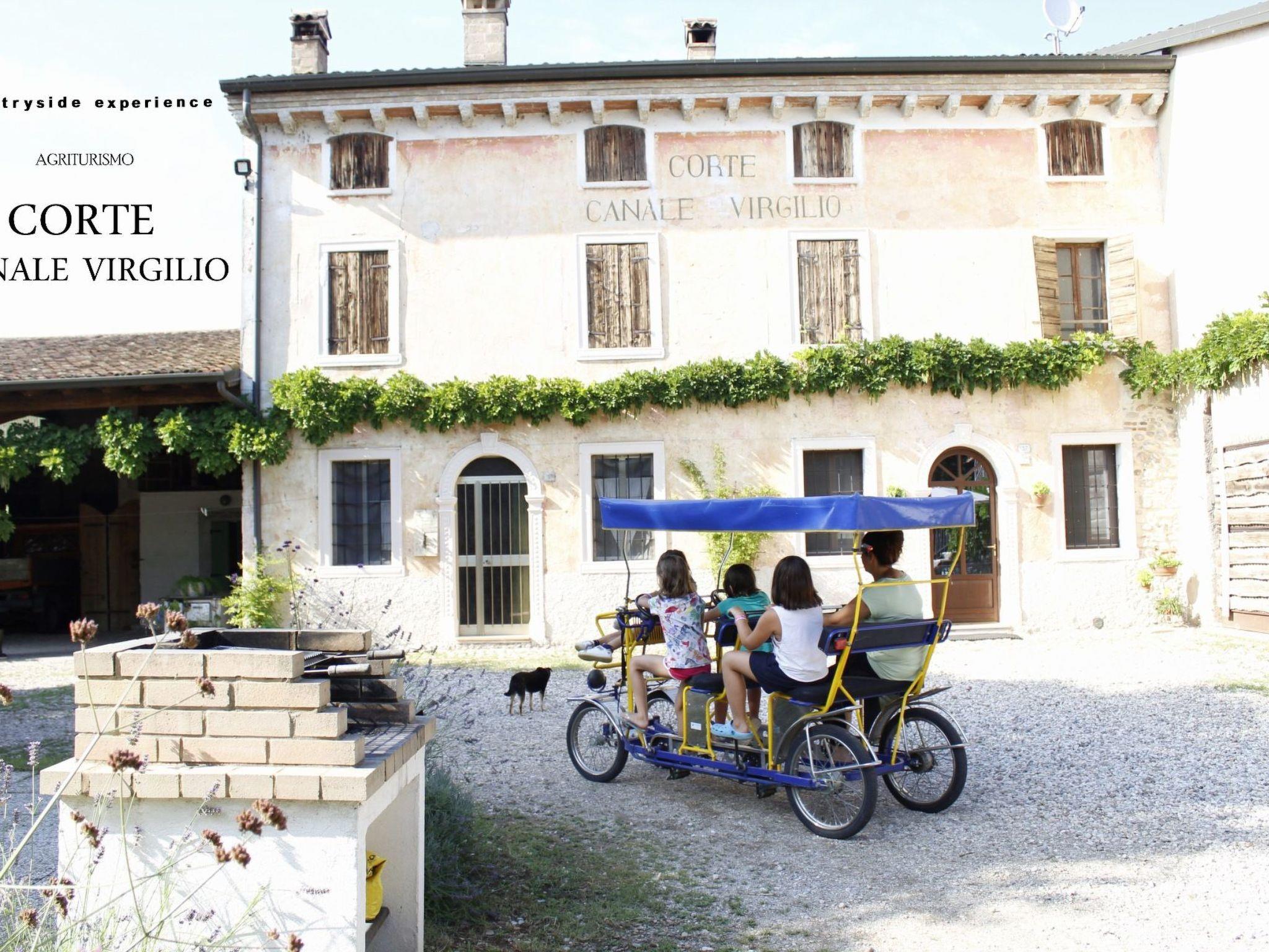 Outside, guests may use the large fenced-in courtyard to their heart's content. There are tables, chairs, sunshades, a barbecue and a play area with a swing and slide for children. In summer, a small children's pool is set up. An unattended car park is also available. A travel cot and high chair, Wi-Fi, a washing machine and a clothesline are also available. Bicycles for adults and children are also available free of charge. Dogs are allowed, but please do not leave them alone in the flat during your excursions and keep them on a leash. The owners live on the farm, which was built in the early 19th century. They will be happy to offer you tastings of the farm's products, such as wine, eggs and fresh seasonal fruit and vegetables. Access to the house is via a 50-metre dirt road. A bicycle path passes right in front of the farm gate. You can follow this track to the village of Volta Mantovana (2 km) or go down to the river and follow it towards Borghetto (6 km), reach Peschiera (15 km) or Mantova (18 km). Easily accessible and connected by an asphalted road network, two supermarkets are nearby (2 km), a restaurant and pizzeria are 500 m away, a park with swimming pool is 1.5 km away and a pharmacy (1.5 km) is within easy reach. A water park is also 5 km away, while the Sigurtà Park and Borghetto botanical gardens are 6 km away. Lake Garda, with its theme parks such as Gardaland, Movieland, Caneva and Medieval Times, is about 15 km away, Mantua 18 km and Verona 25 km. Venice, 150 km away, is ideal for a day trip.