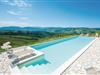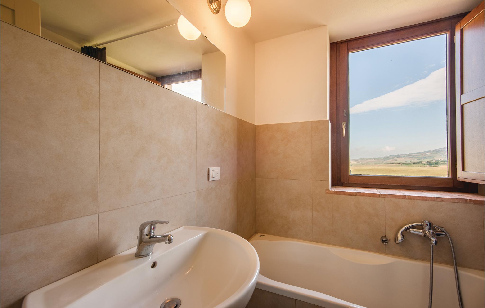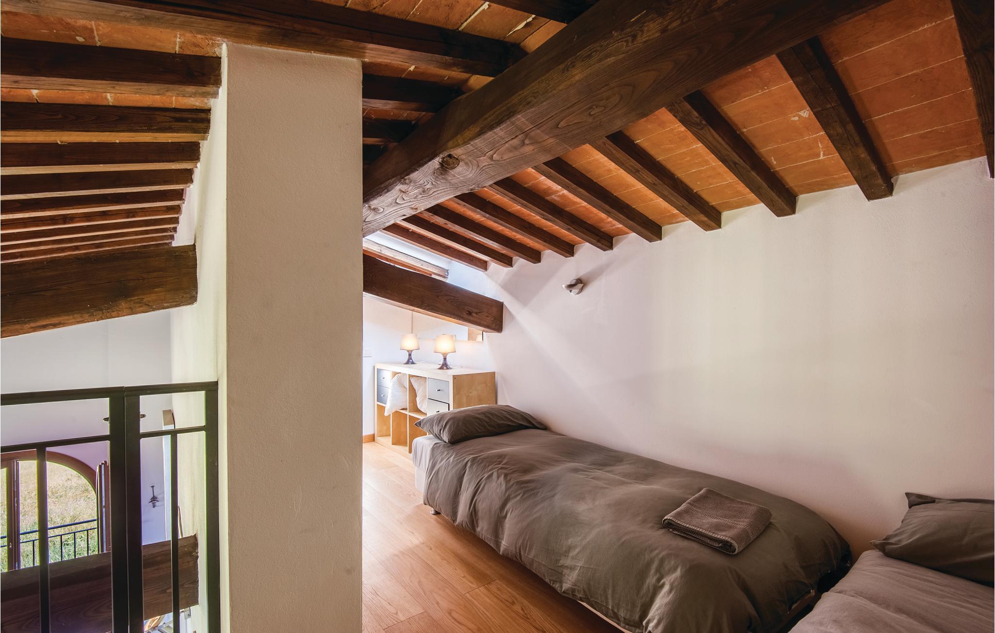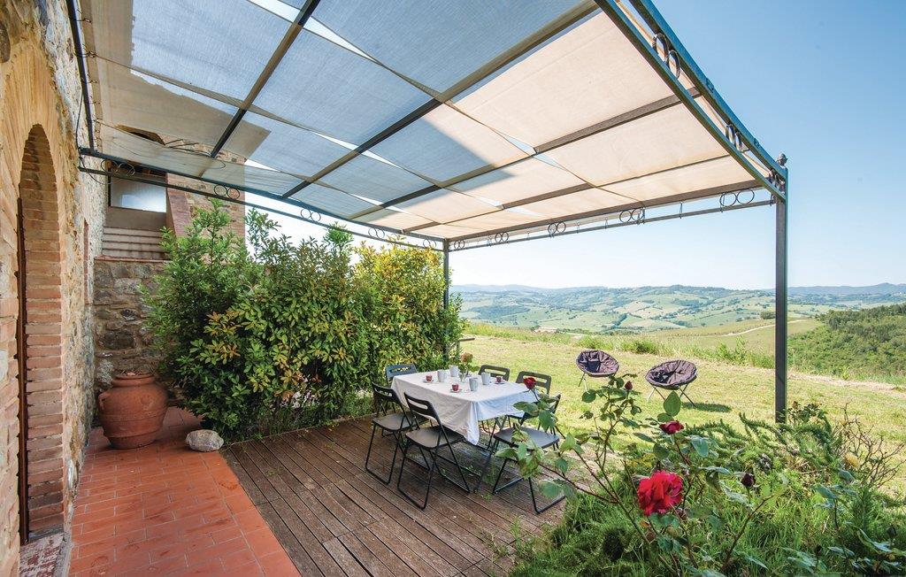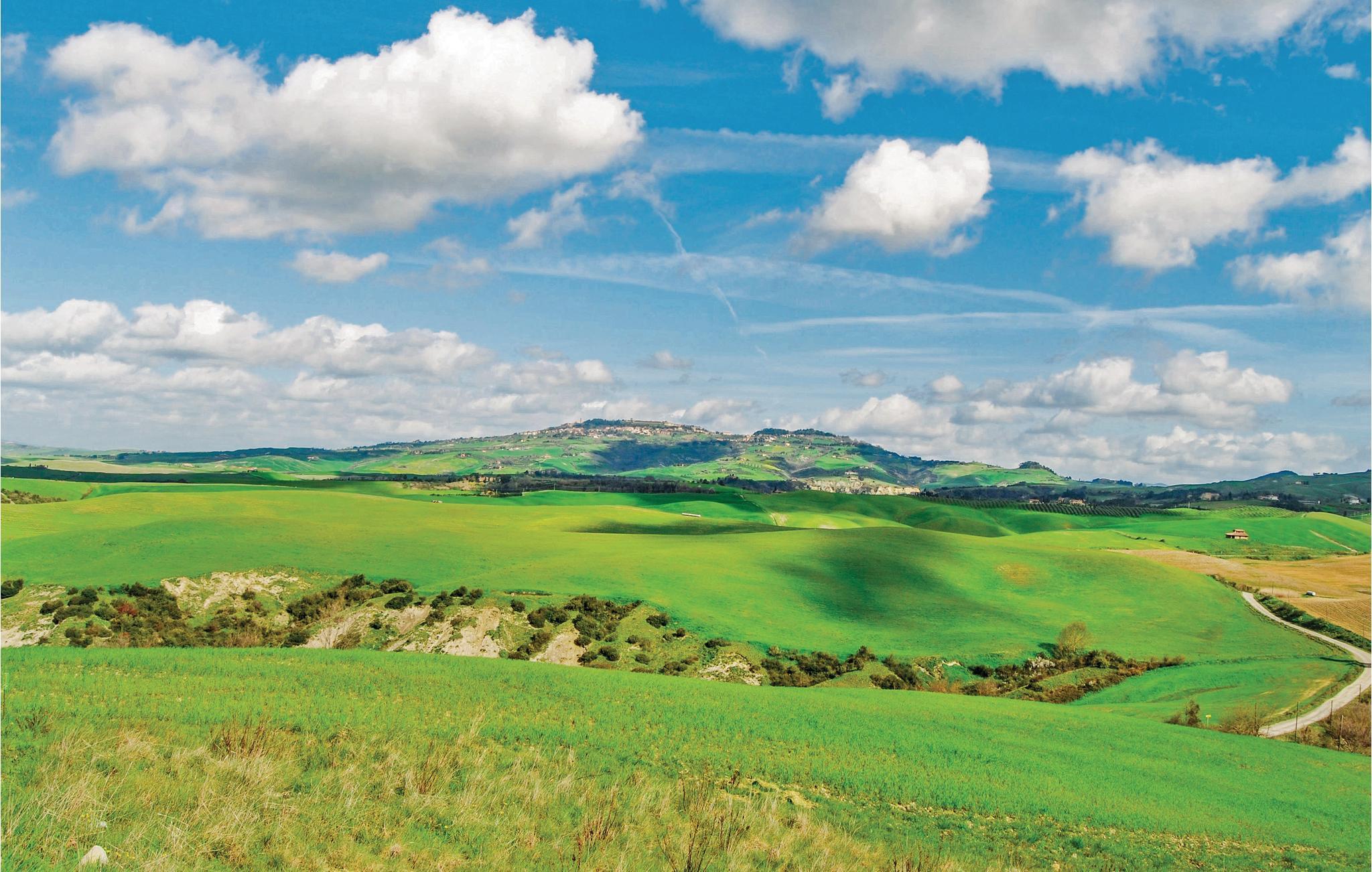Fra det moderne køkken/alrum træder I ud på terrassen med en vid panoramaudsigt over Volterras helt særlige bakker. Fælles pool med de andre beboere. Lys og behagelig indretning. Tredje soveværelse på en hems (loftshøjde 1,40 m). Udflugtsmål i nærheden er San Gimignano (25 km), Siena (50 km) og sandstrandene ved Cecina (50 km).