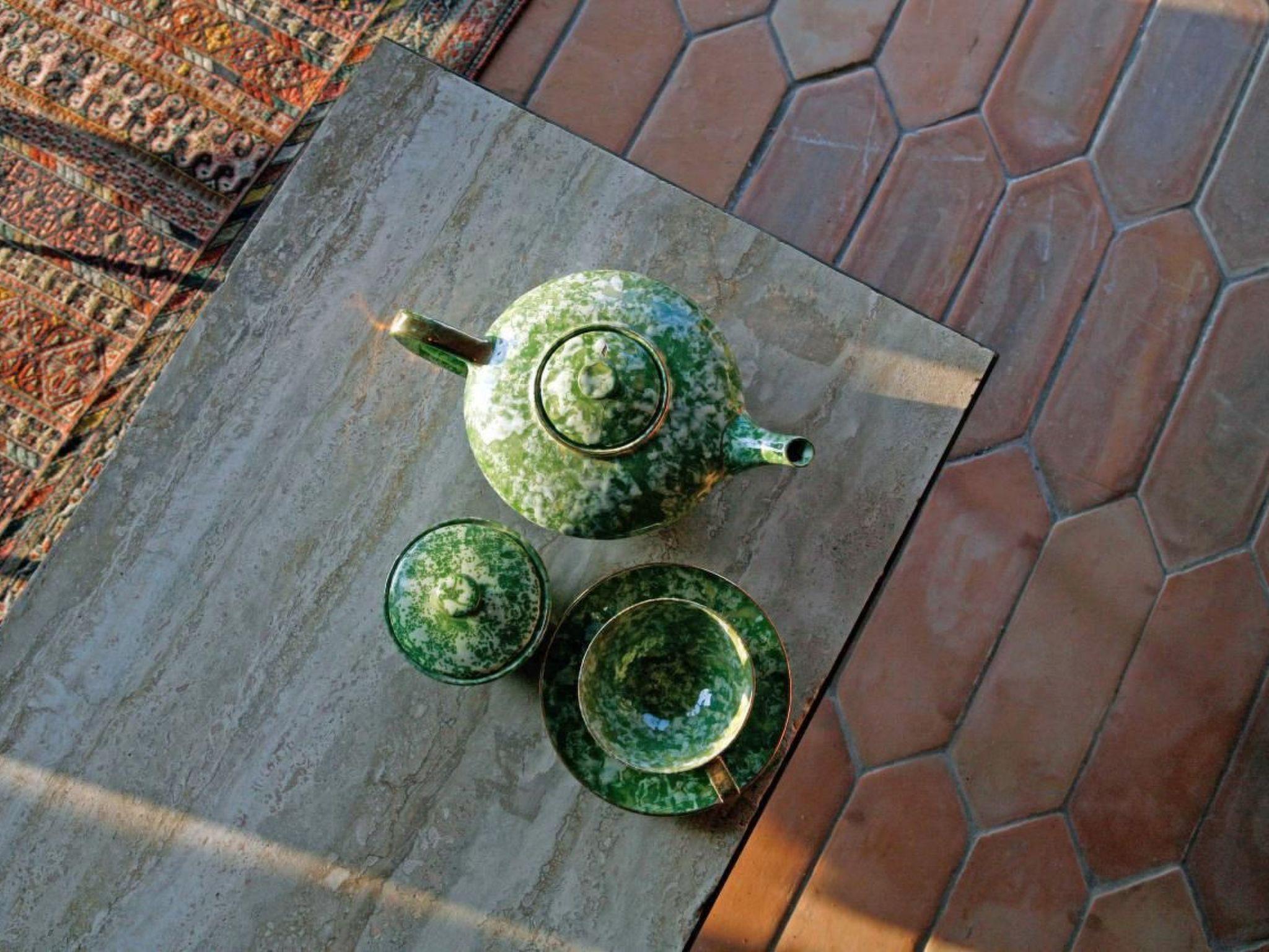 The apartment’s spacious rooms, all bathed in natural light, featuring unique decor