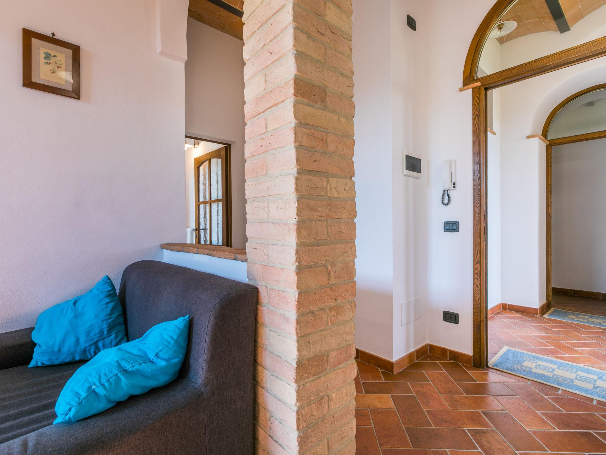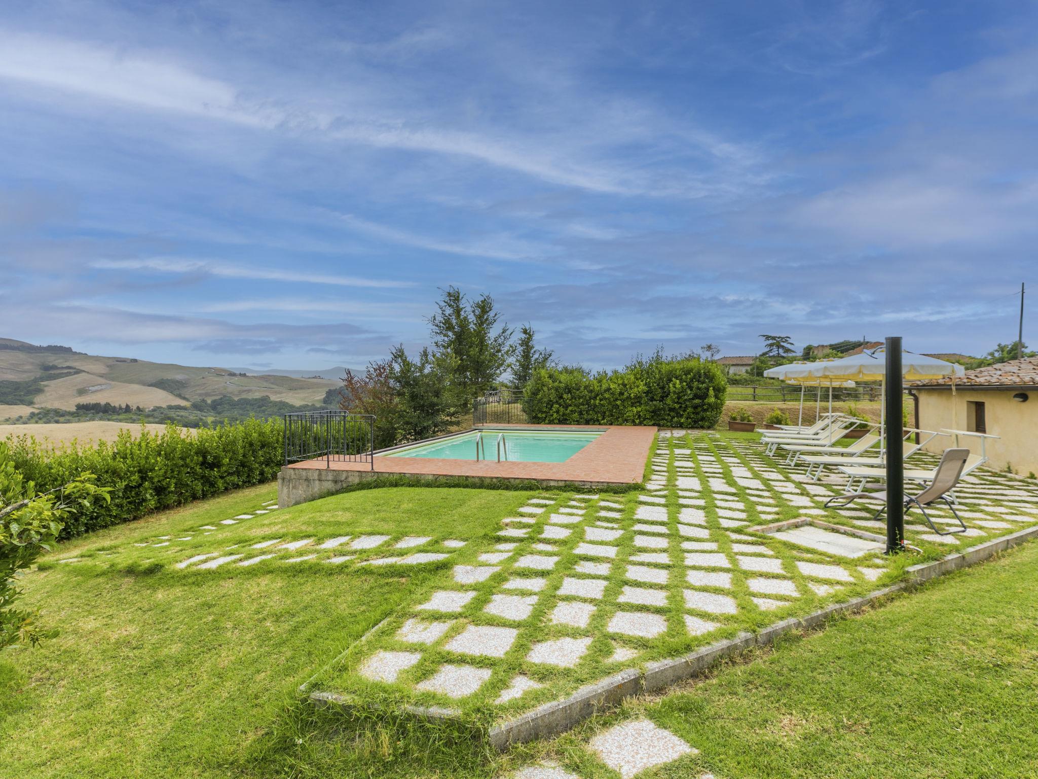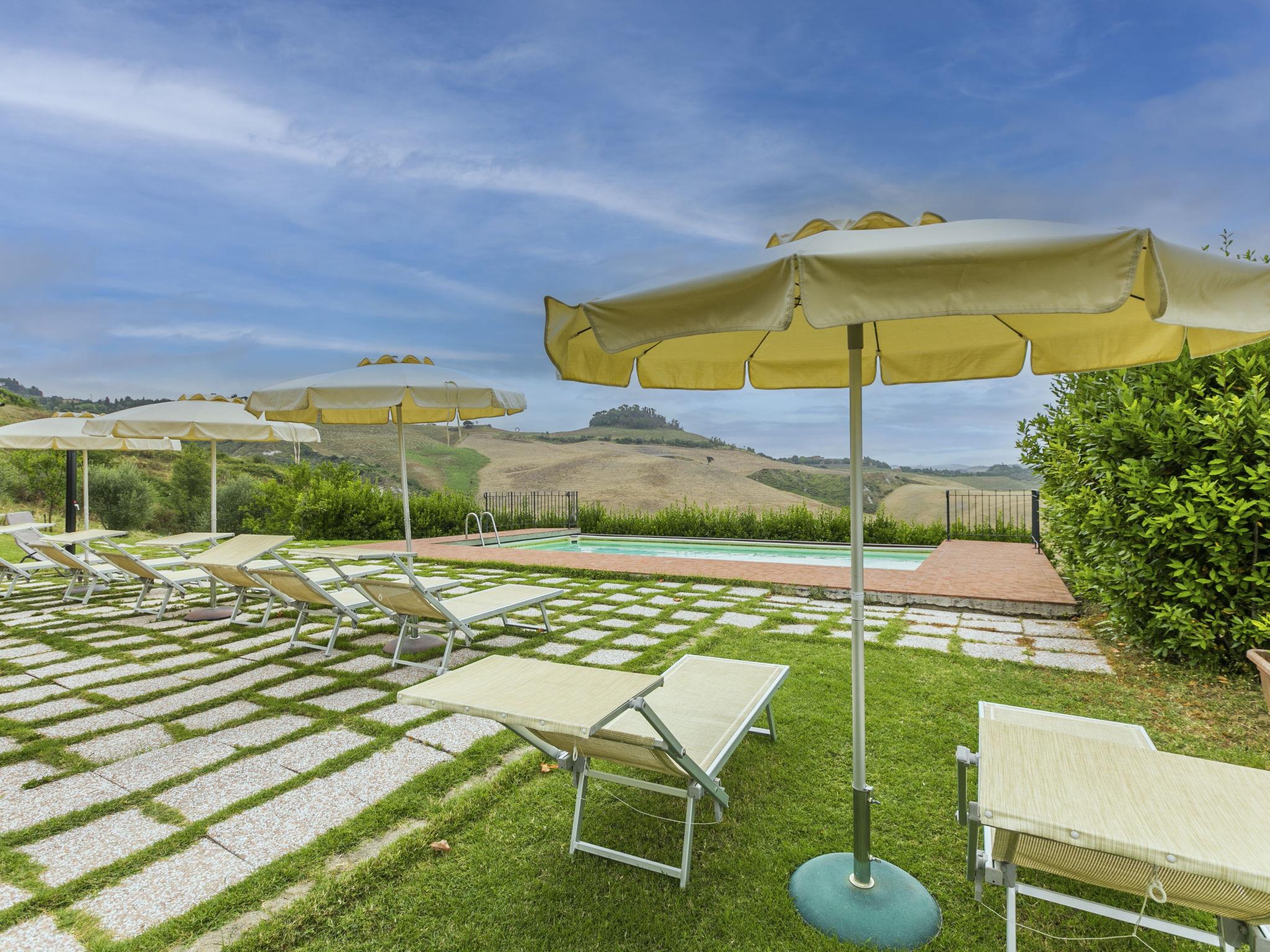 Residence "Villa Caggio". 2 houses in the residence. 5 apartments in the residence. 3 km from the centre of Volterra, on the outskirts, 30 km from the centre of San Gimignano, 45 km from the sea. For shared use: property 1'000 m2 (fenced), trees, meadow, swimming pool (4 x 9 m, seasonal availability: 21.May. - 02.Oct.). Outdoor shower, pool maintenance by the owner/gardener. In the complex: WiFi, bicycle rental. Parking on the premises. Shop 2 km, supermarket 3 km, bus stop 1 km, sandy beach "Marina di Cecina" 45 km, indoor swimming pool 4 km. Nearby attractions: Pisa 70 km, Lucca 75 km, Siena 50 km, Firenze 80 km. Hiking paths: Parco Berignone 12 km. Please note: the owner lives on the same property. E-bike and car rental from the owner. (extra).