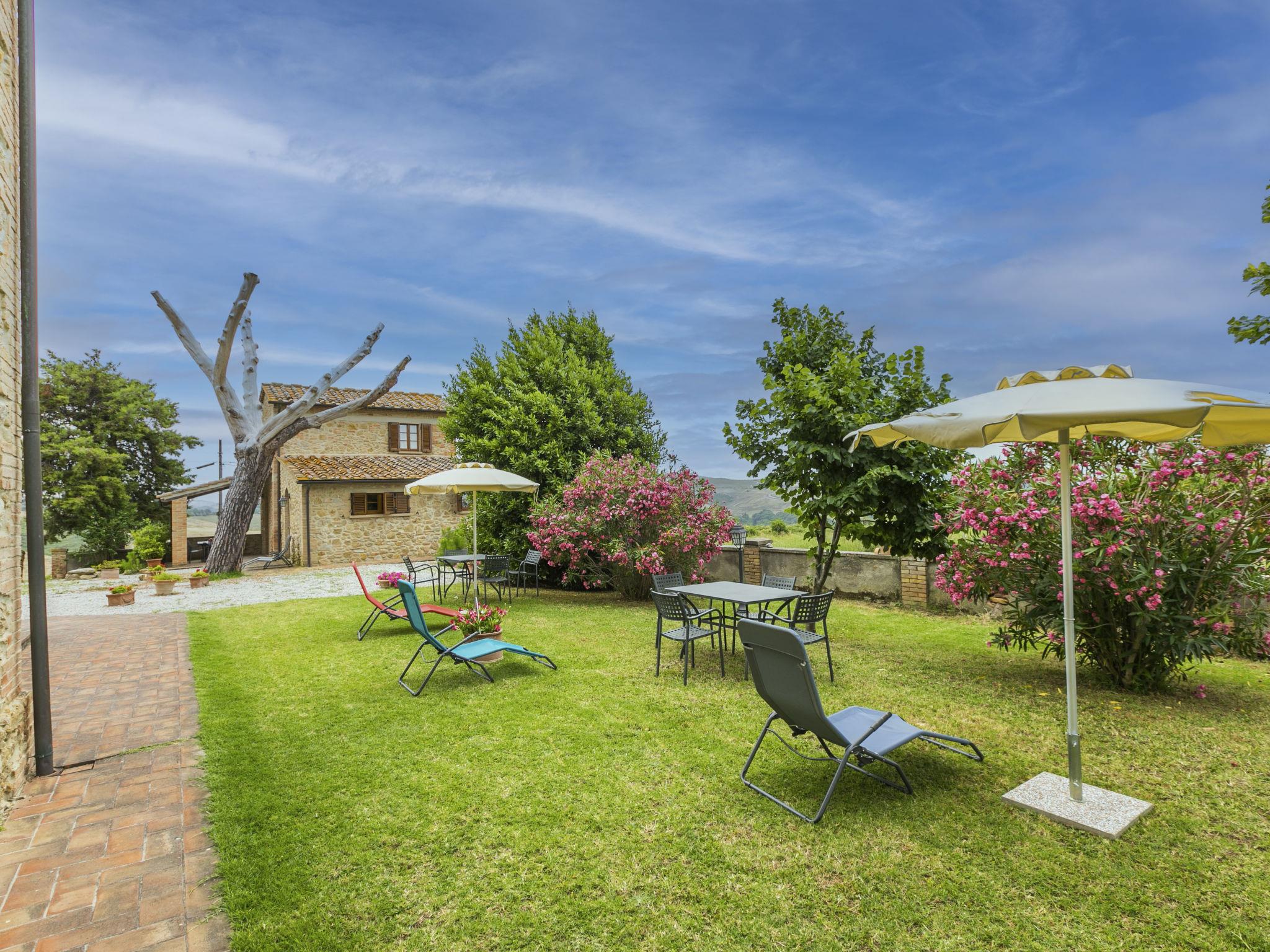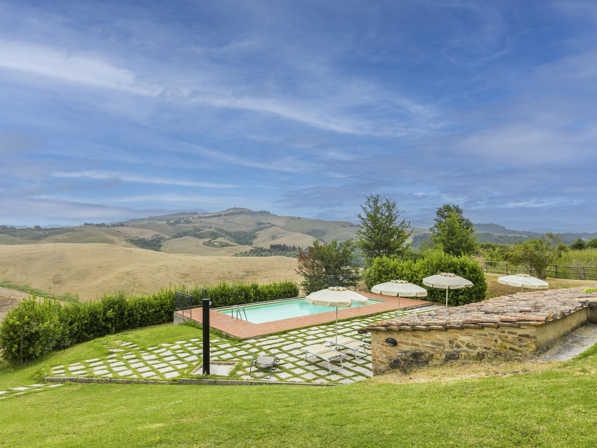 Residence "Villa Caggio". 2 houses in the residence. 5 apartments in the residence. 3 km from the centre of Volterra, on the outskirts, 30 km from the centre of San Gimignano, 45 km from the sea. For shared use: property 1'000 m2 (fenced), trees, meadow, swimming pool (4 x 9 m, seasonal availability: 21.May. - 02.Oct.). Outdoor shower, pool maintenance by the owner/gardener. In the complex: WiFi, bicycle rental. Parking on the premises. Shop 2 km, supermarket 3 km, bus stop 1 km, sandy beach "Marina di Cecina" 45 km, indoor swimming pool 4 km. Nearby attractions: Pisa 70 km, Lucca 75 km, Siena 50 km, Firenze 80 km. Hiking paths: Parco Berignone 12 km. Please note: the owner lives on the same property. E-bike and car rental from the owner. (extra).
