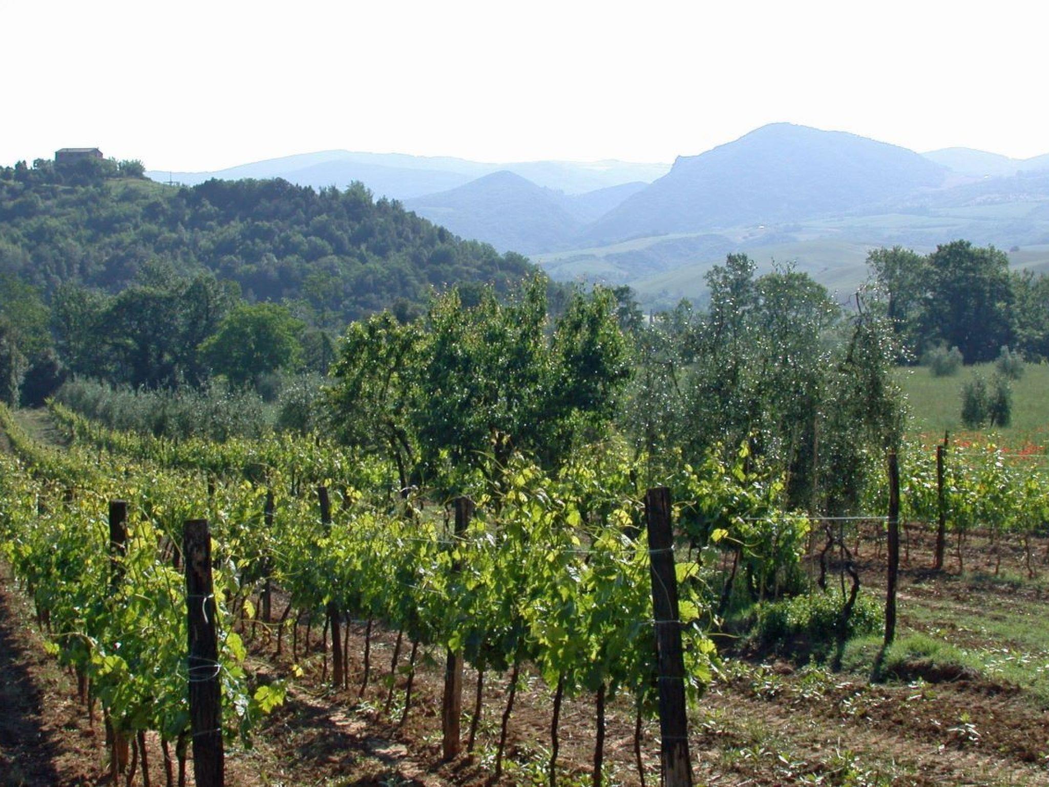 Podere Cortilla is a farm with 23 hectares of land, including fields and woods, a vineyard and several olive groves. We make our own natural wine, mainly from San Giovese grapes, and produce a high quality olive oil, which our guests can taste and buy. At the appropriate times of the year, we also offer fruit and vegetables from our vegetable garden and from the fruit trees in the garden.
