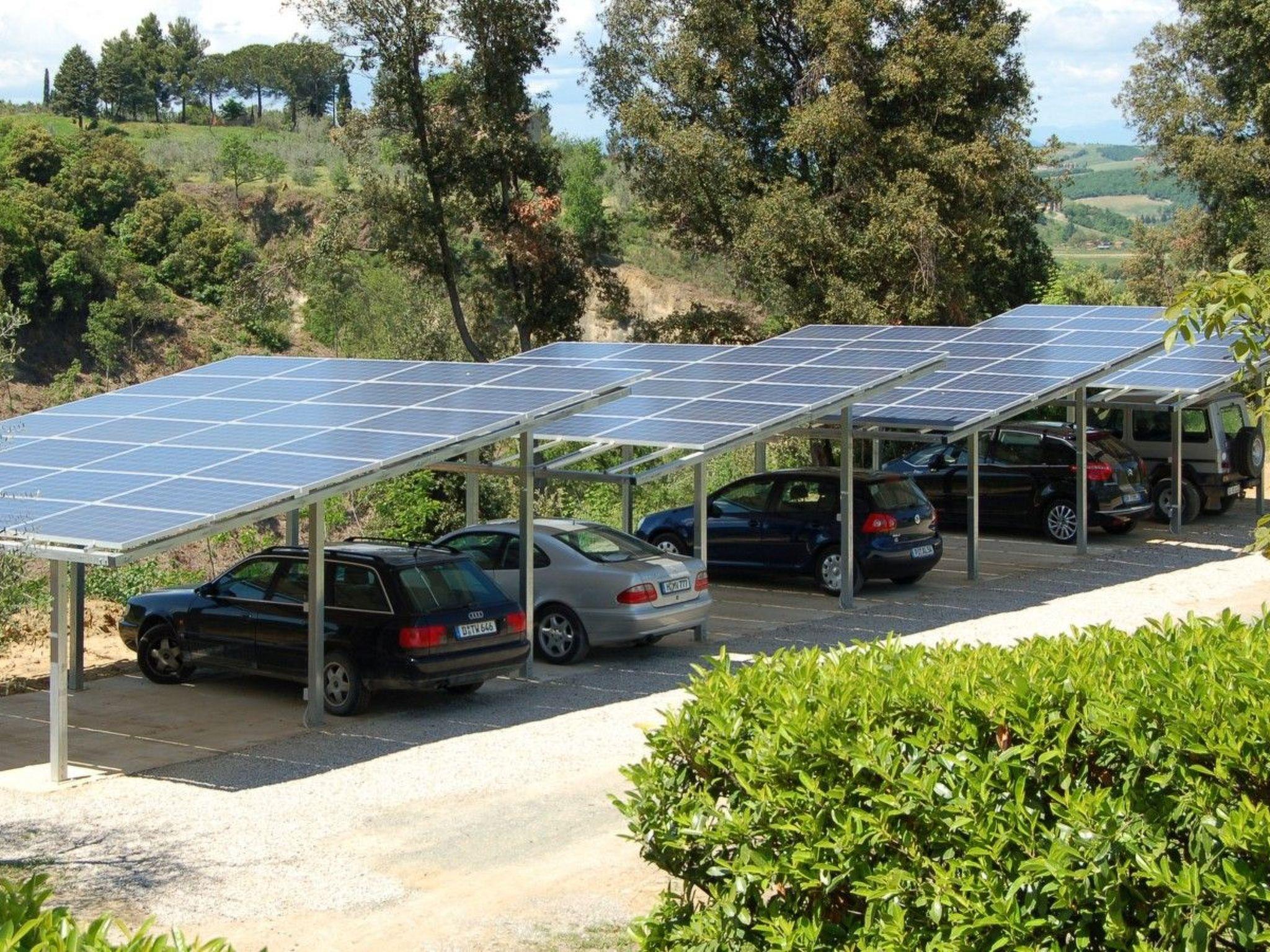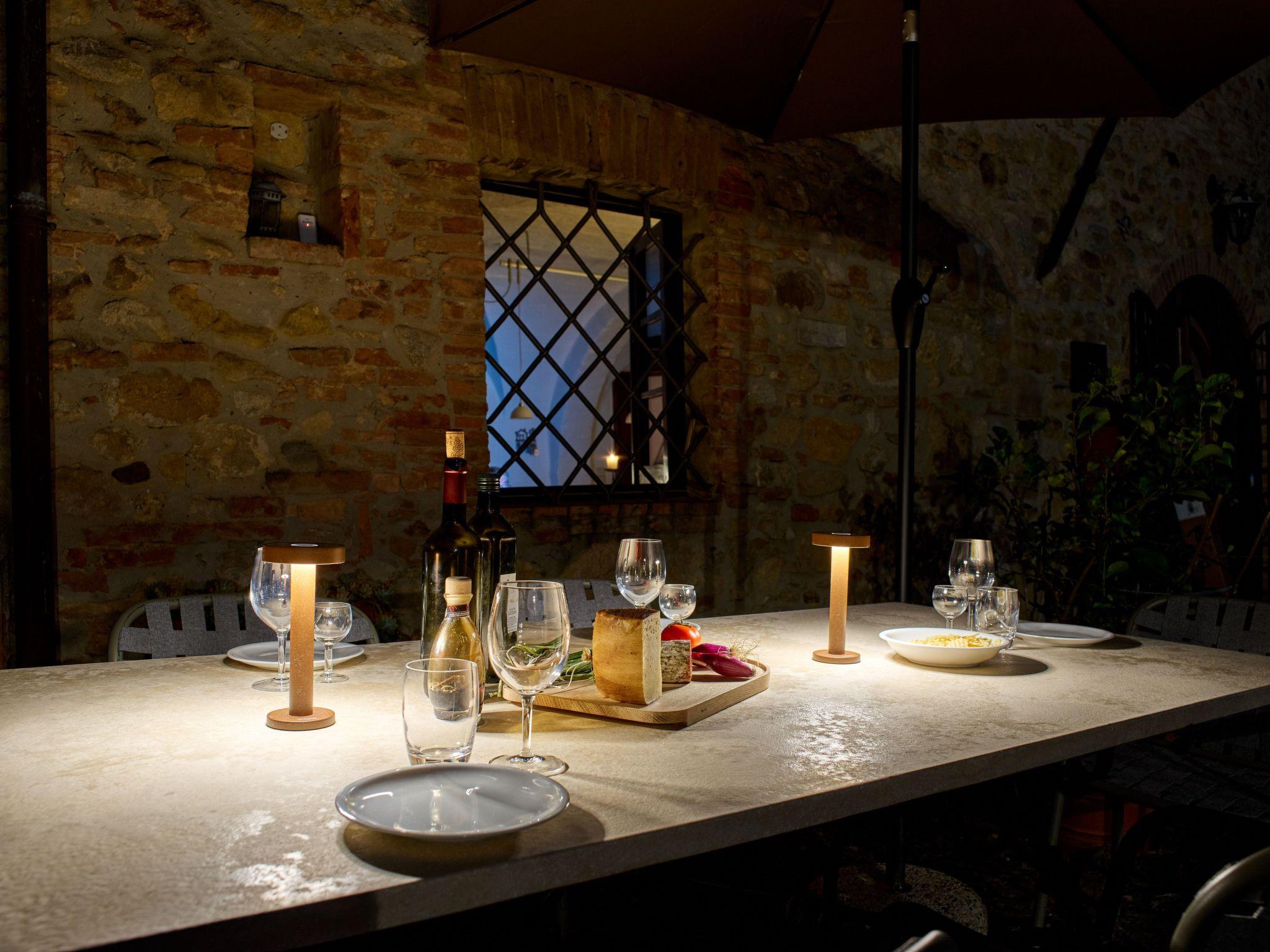 La Stalla has a large terrace with table and chairs in the courtyard right outside the front door. A highlight is the large pool (14 x 7 metres) with equipment and storage room and comfortable sun loungers and parasols and a spacious terrace with views of the wonderful countryside. The carport with 8 parking spaces has a large photovoltaic system on the roof, which contributes to our energy requirements. The garden and lawn areas around the house allow you to move freely and settle down with seating and loungers. A barbecue invites you to rustic barbecue evenings, where you can also have breakfast in the shade of vines, sit together or read a book. A table tennis table allows for sporting activities.