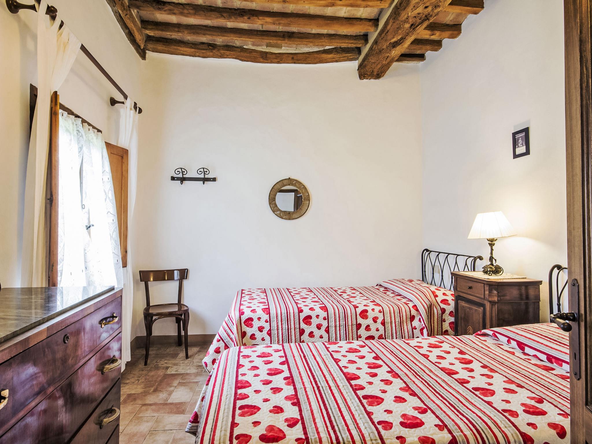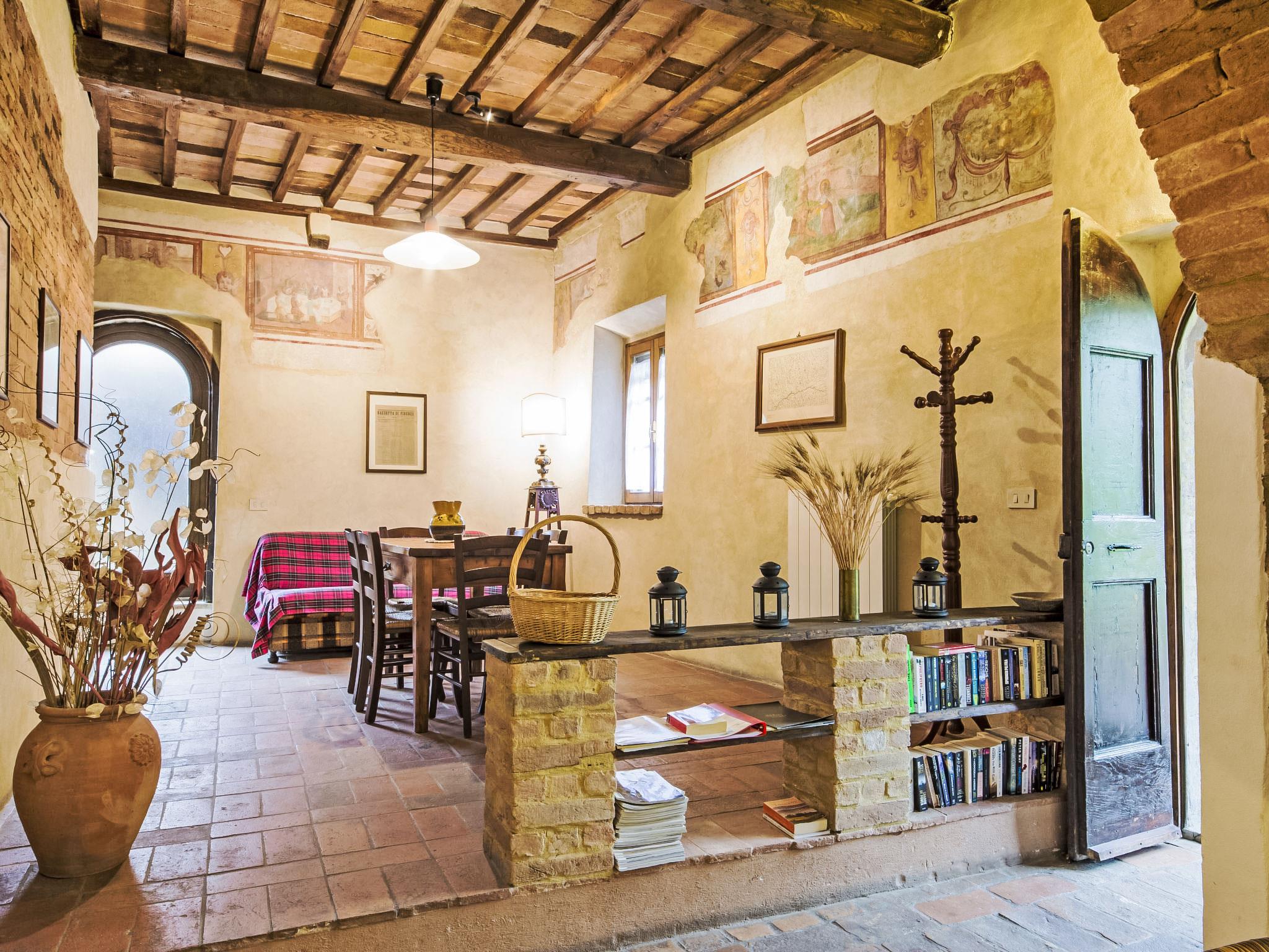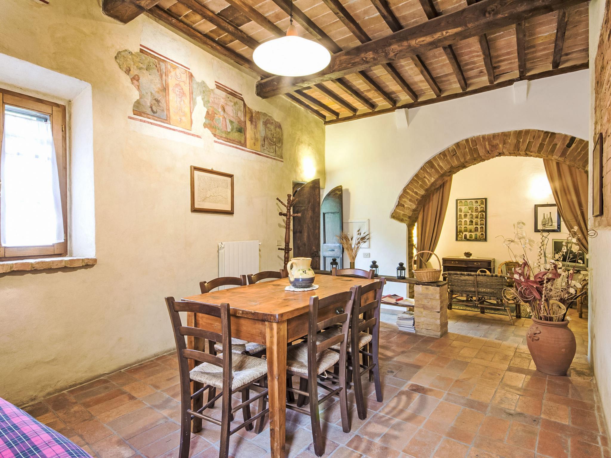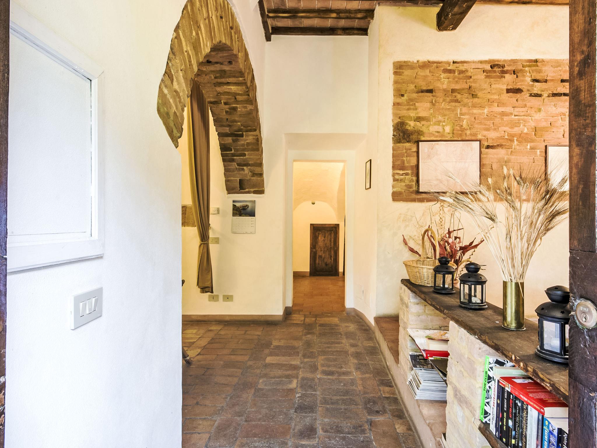 5-room semi-detached house 115 m2 on 2 levels, on the ground floor. Rustic furnishings: large living/dining room with 1 double sofabed, dining nook and satellite TV. Kitchen (4 hot plates, oven, dishwasher, microwave, freezer, electric coffee machine) with dining table, open-hearth fireplace. Shower/WC. Upper floor: 1 room with 1 bed and 1 french bed. 1 room with 2 beds. 1 room with 2 beds. Shower/bidet/WC. Porch. Terrace furniture, barbecue. Very beautiful panoramic view of the countryside. Facilities: washing machine, mosquito net, baby cot for up to 2 year olds. Internet (WiFi, free). Please note: maximum 1 pet/ dog allowed. Fire extinguisher. Near the kitchen, small room with chimney and seating corner. This room was formally used by the farmers to eat in and socialize. IT050039C2HDYV8ED9
