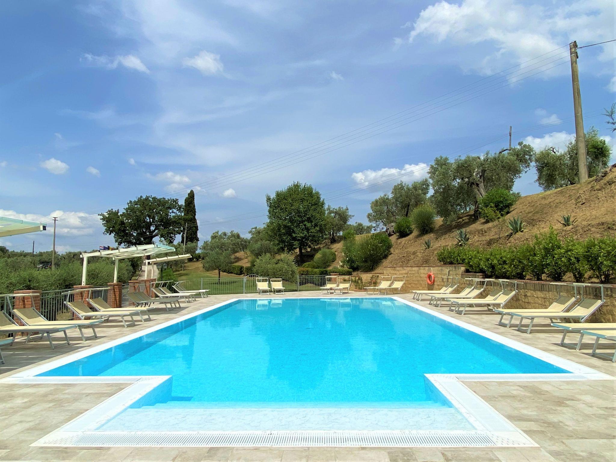 Stregaia 5 km from Volterra: Wonderful view of the hills typical for this area. Organic oil production. Historical country house "Stregaia", built in 1700. 14 apartments in the residence. 25 km from the centre of San Gimignano, 28 km from the centre of Colle Val d'Elsa, 40 km from the centre of Cecina, in a sunny position on top of a hill, 40 km from the sea, in the countryside. For shared use: property, swimming pool (16 x 8 m, depth 150 cm, seasonal availability: 30.Apr. - 01.Oct.). Outdoor shower, table tennis, garden furniture, barbecue, children's playground (slide, swing). Private: garden furniture. In the complex: restaurant, WiFi (all included), table tennis, washing machine (for shared use, extra). House maid on request (extra). Motor access to the house. Parking. Supermarket 5 km, bus stop 600 m. Tennis 5 km, riding stable 5 km. Nearby attractions: Siena 45 km, Pisa 60 km, Firenze 75 km.