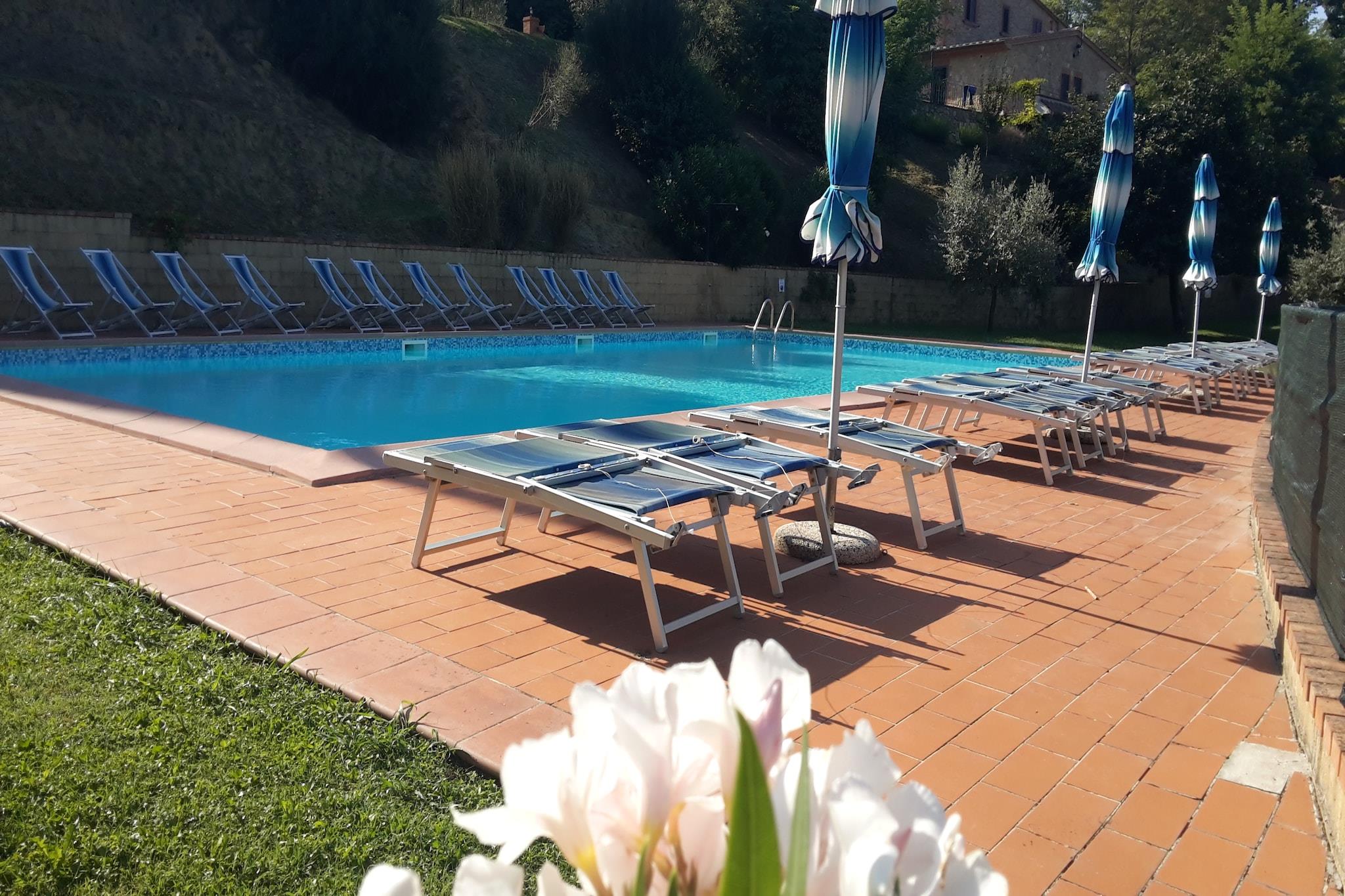 Charmerende toscansk flugt med autentisk flair Beliggende i Volterras bølgende bakker, blander dette 1-værelses landskabsretræte rustik charme med moderne komfort - perfekt til små familier eller tætte grupper på op til 5. Hjemmet er omgivet af grønne områder og tilbyder en rolig base for dine toscanske eventyr. Træd ind i et hyggeligt opholdsrum med spiseplads og traditionel indretning, mens det veludstyrede køkken er klar til hjemmelavede måltider. På varme dage kan du tage en forfriskende dukkert i den fælles swimmingpool eller slappe af udendørs med et glas vin, mens solen går ned over vinmarkerne. Rolige omgivelser nær Volterras historiske vidundere Denne fredelige ejendom placerer dig kun 6 km fra den historiske by Volterra, hvor brostensbelagte gader, gammel arkitektur og udsigt over en bakketop venter. Udforsk den storslåede Volterra-katedral, beundre det middelalderlige Palazzo dei Priori, eller oplev det uhyggelige, men fascinerende museum for tortur. Uanset om du er kunstelsker, historieelsker eller naturentusiast, byder denne region på en rig blanding af kultur og landskabsro. Supermarkeder og restauranter er også inden for rækkevidde for din bekvemmelighed. Dejlig spisning og ophold på landet Prøv regionale delikatesser på nærliggende trattoriaer kun 5,7 km væk - fra håndlavet pasta til rige toscanske gryderetter. Efter en dag med udforskning kan du vende tilbage til komforten i dit hjem væk fra hjemmet og nyde en fredelig aften under stjernerne. Bemærk venligst: kæledyr er ikke tilladt på denne ejendom, hvilket sikrer et rent, allergenfrit miljø for alle gæster.
