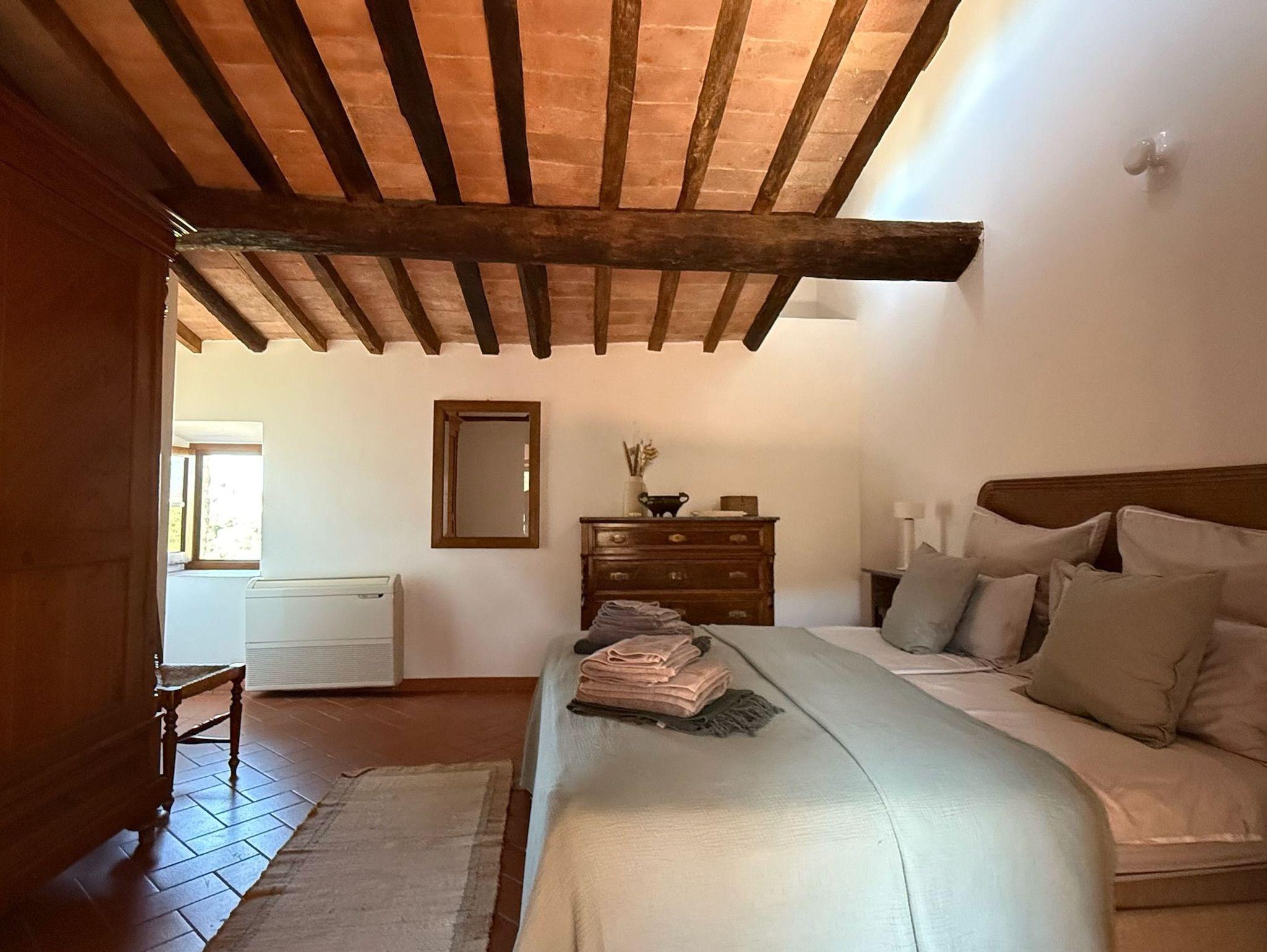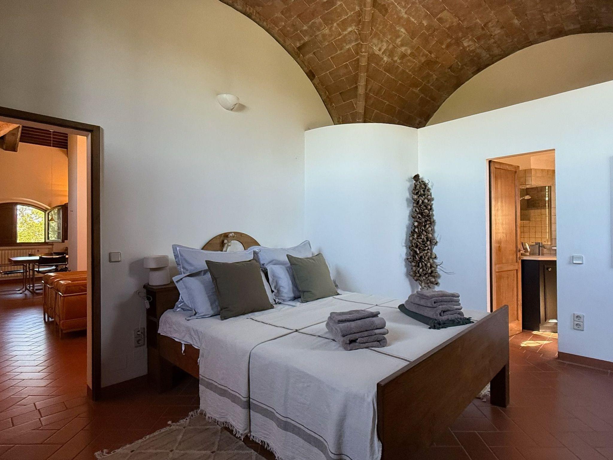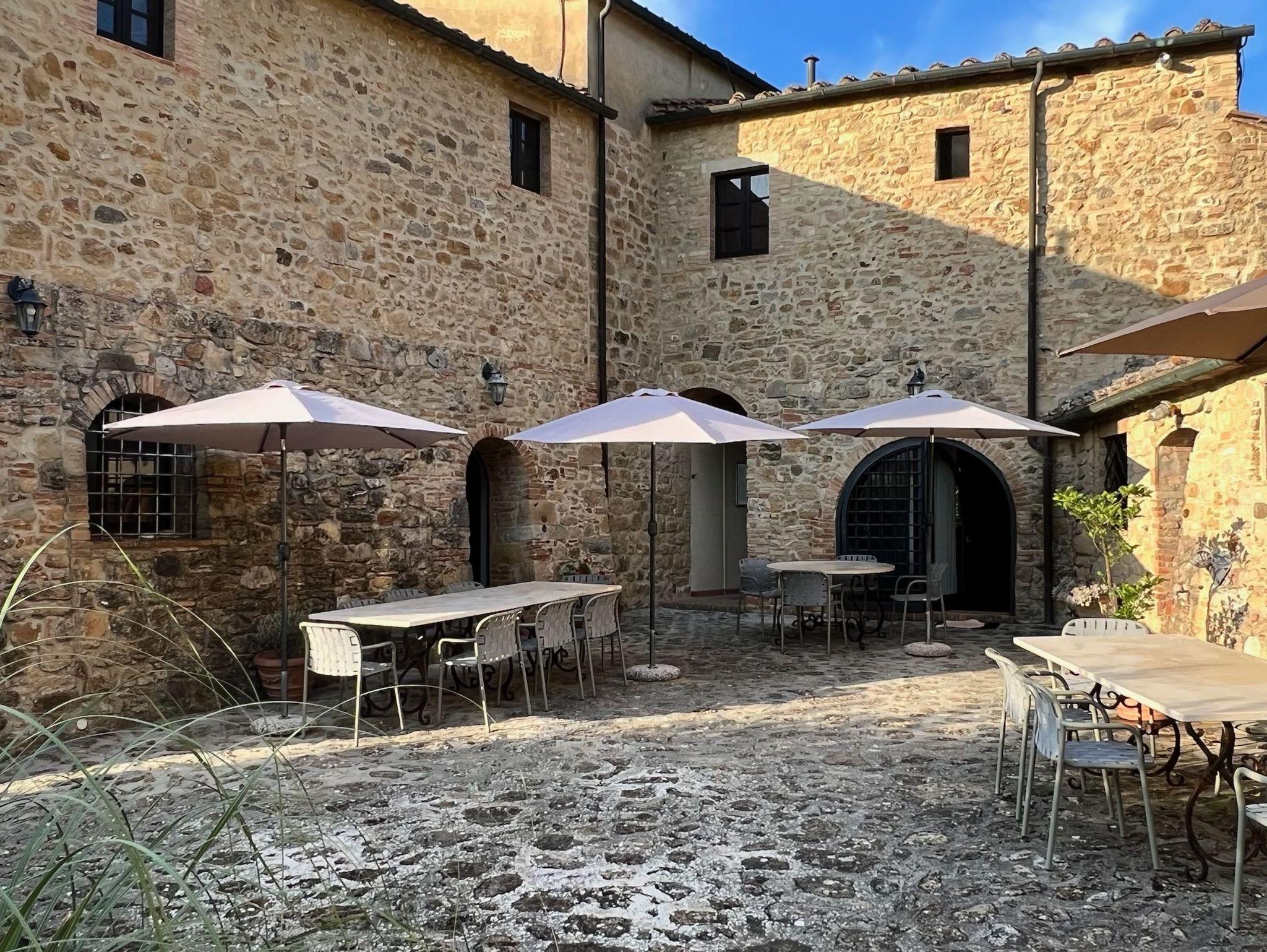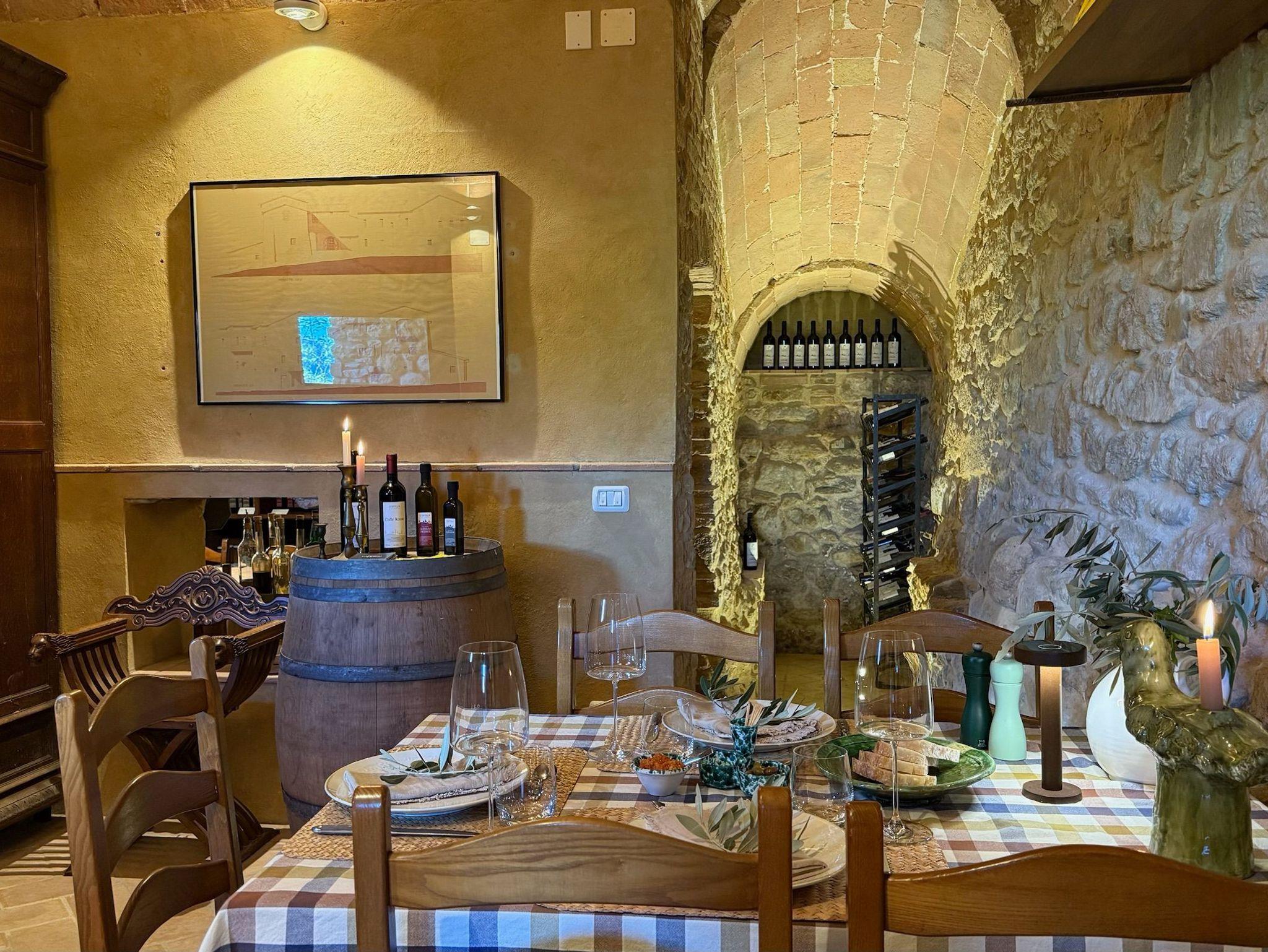Podere Cortilla ist ein toskanisches Weingut, ein altes Landhaus, gelegen auf einem Berghang nahe der alten Etruskerstadt Volterra in einer der schönsten Landschaften der Toskana. Im Landhaus gibt es fünf Ferienwohnungen mit insgesamt etwa 20 Betten. Zum Objekt gehören mehr als 20 Hektar Land mit Wald, Wiesen, Feldern, Weinbergen und Olivenhainen. Podere Cortilla ist eine azienda agrituristica, das ist ein Bauernhof, in dem zugleich auch Ferienwohnungen vermietet werden. Hier bekommen Sie naturreinen Wein und bestes Olivenöl aus eigener Produktion - direkt in der fattoria. Podere Cortilla wurde in mehrjähriger Arbeit liebevoll restauriert, die rustikale mittelalterliche Bausubstanz mit dem heute möglichen Komfort verbunden. Alle Wohnungen sind großzügig geschnitten und komfortabel in toskanischem Stil eingerichtet. Sie liegen in separaten Gebäudeteilen mit eigenen Eingängen, so dass Sie ungestört wohnen. Ein Highlight für alle Gäste ist der schön gelegene große Pool (14m x 7m) mit moderner Salzwasseranlage statt Chlor. Ein zentraler Grillplatz lädt ein zu sommerlichen Mahlzeiten im Freien. Es gibt eine leistungsstarke Solaranlage für die eigene Stromversorgung auf dem geräumigen Carport, auch die Warmwasserzubereitung erfolt mit Sonnenernegie.