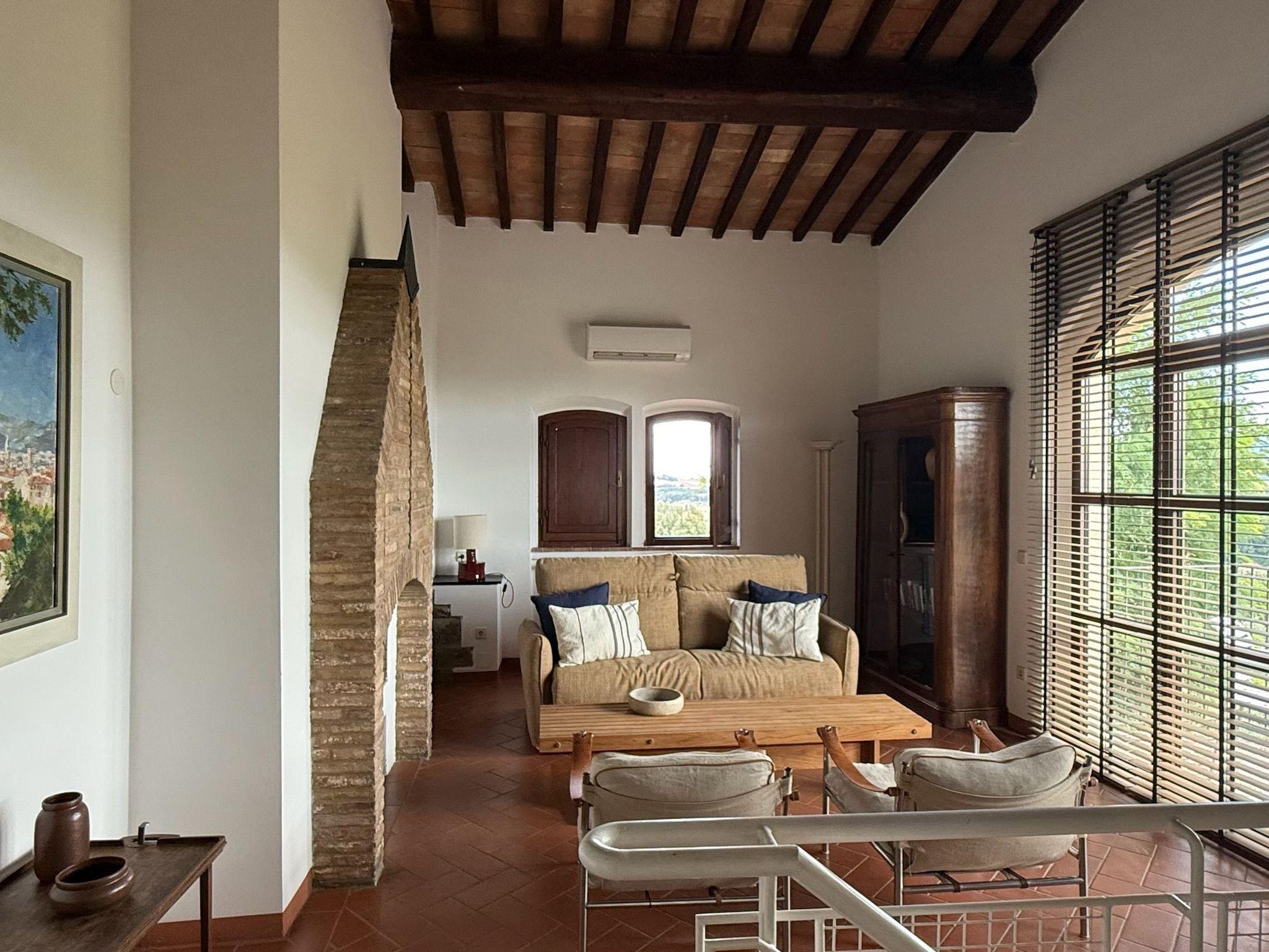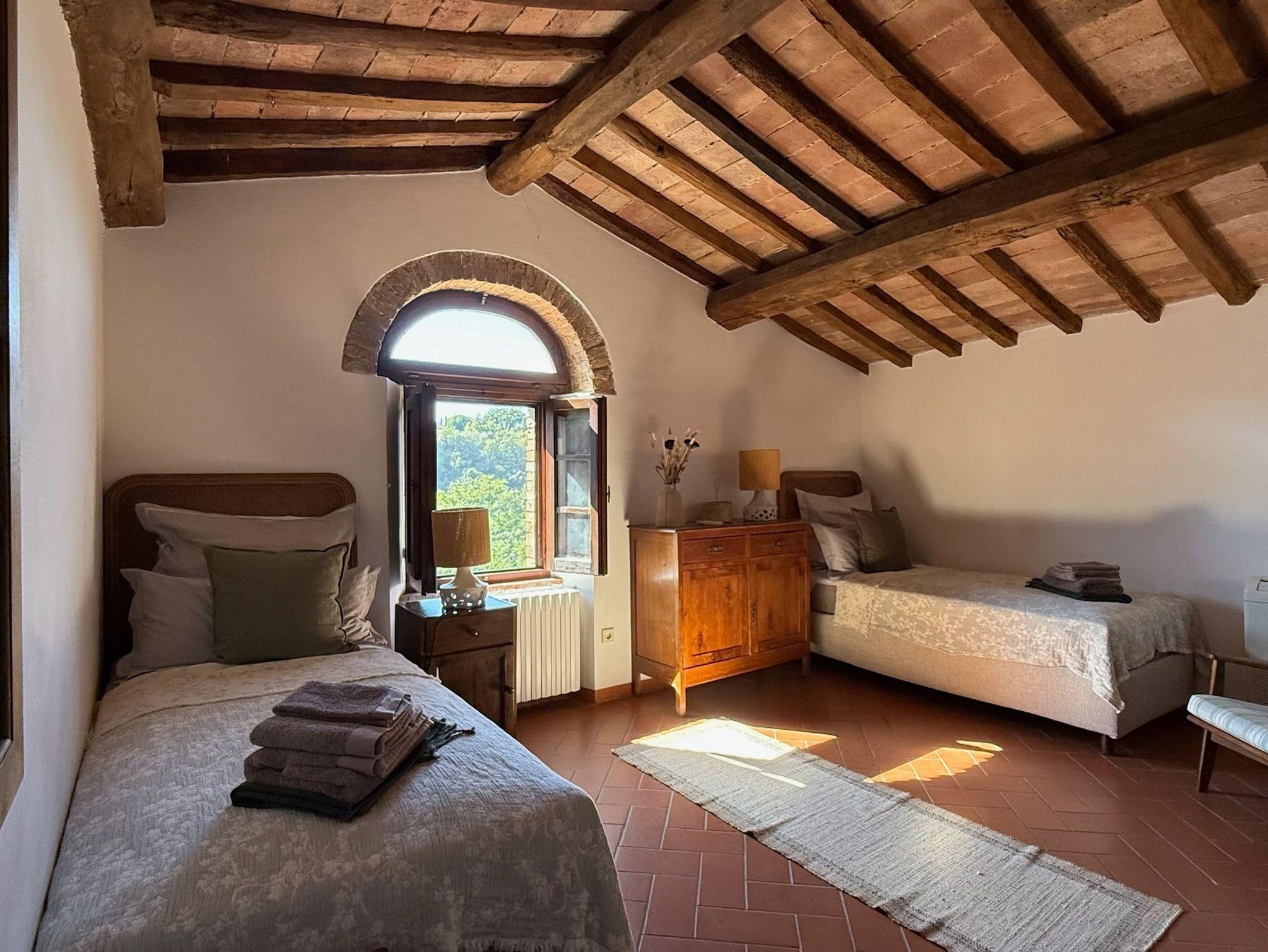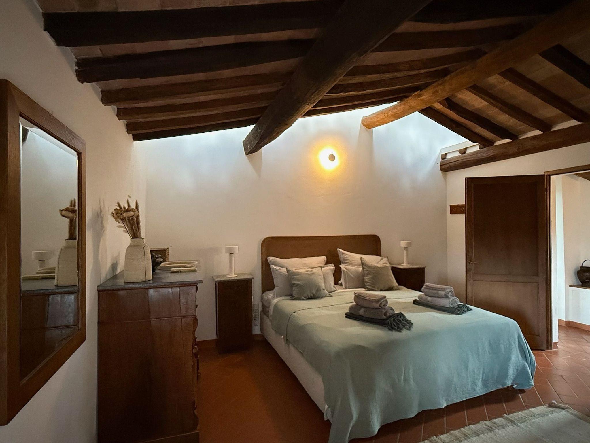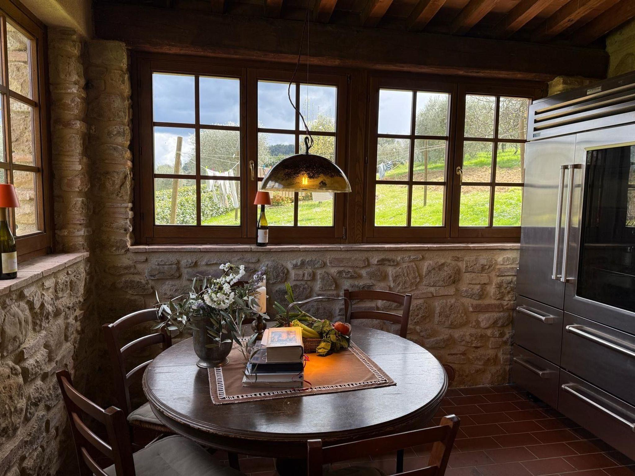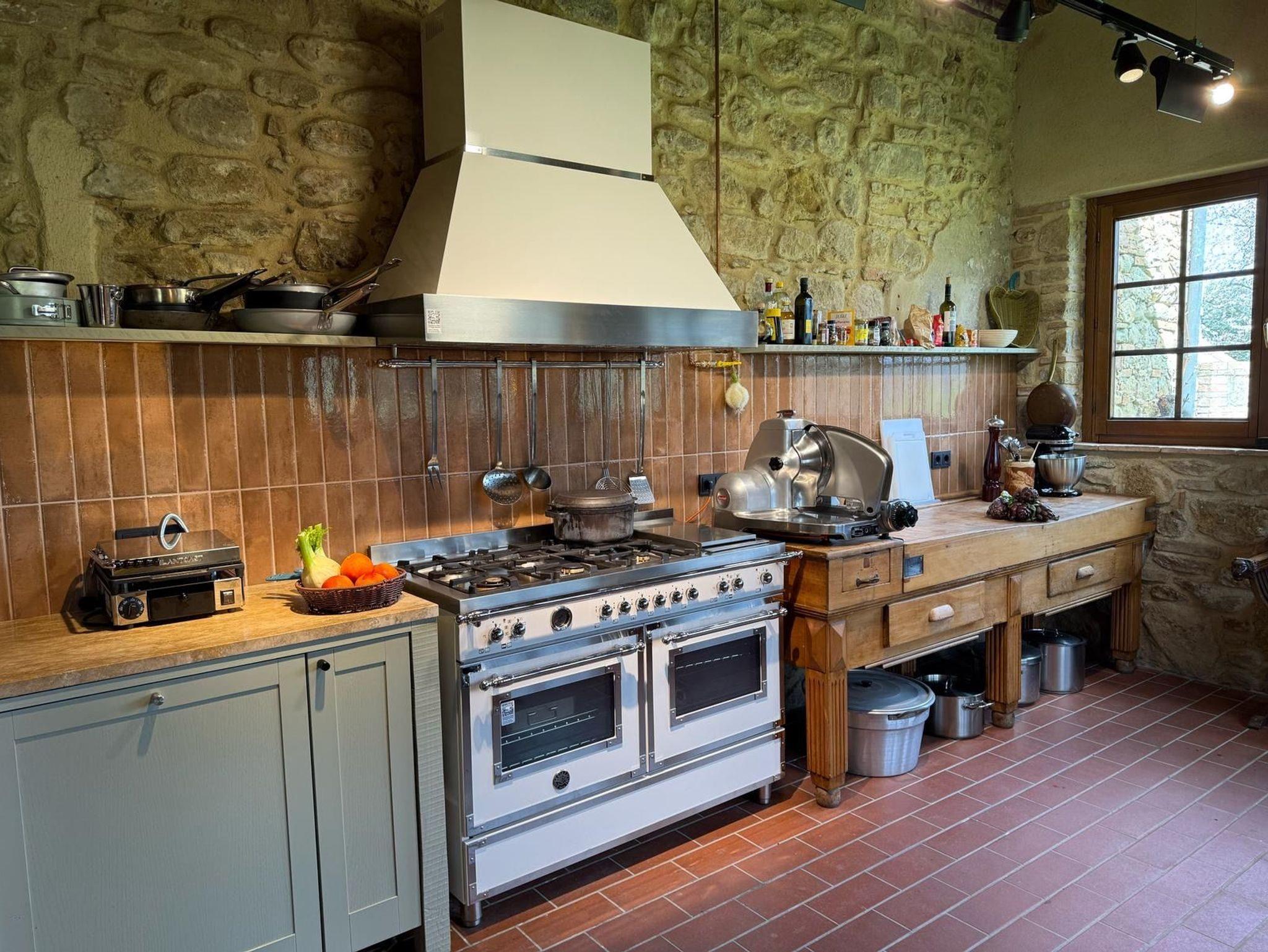 La Stalla ist eine große Ferienwohnung (145 qm) für bis zu 8 Personen. Architektonische Besonderheit sind einige außergewöhnlich schöne, gut erhaltene Kreuzbogendecken. Die Wohnung bildet ein eigenes Haus mit zwei Etagen. Sie hat 2 Wohnzimmer, 3 Schlafzimmer mit Betten, eine geräumige Küche mit Esszimmer, 2 Duschbäder und ein Gäste-WC. Jeder Wohnraum hat einen offenen Kamin. Oben ist ein Panoramafenster mit weit reichendem Ausblick auf die schöne Landschaft des Era-Tals und Ausgang auf die kleine Terrasse. Als große Terrasse dient der rustikal gepflasterte Innenhof. Möblierung und Geräteausstattung sind hochwertig und großzügig. Es gibt u.a. Satelliten-TV mit internationalen Programmen, Stereonlage, Internet, Heizung und Klimaanlage. Eine Waschmaschine ist zentral vorhanden.