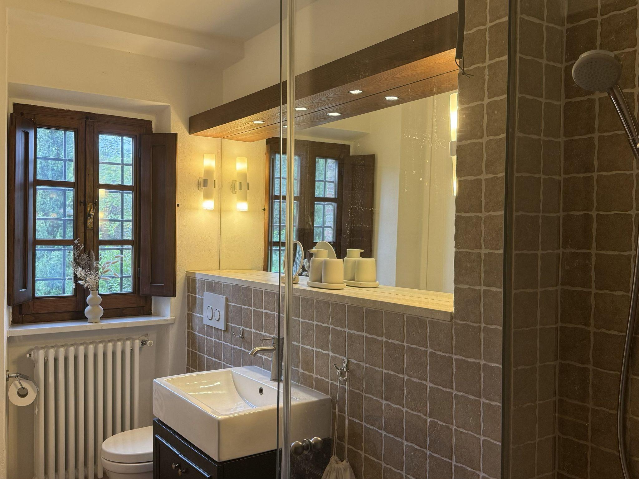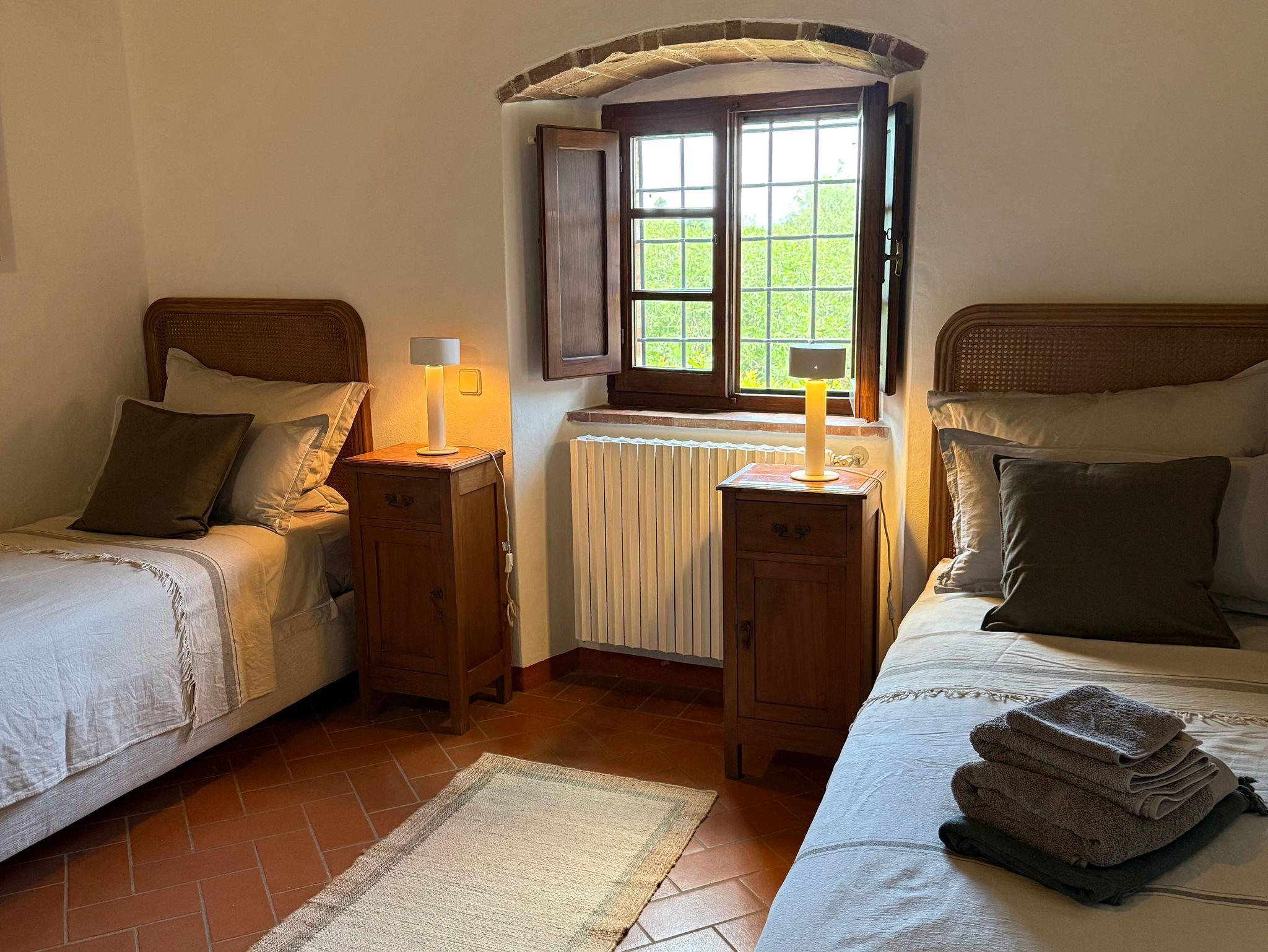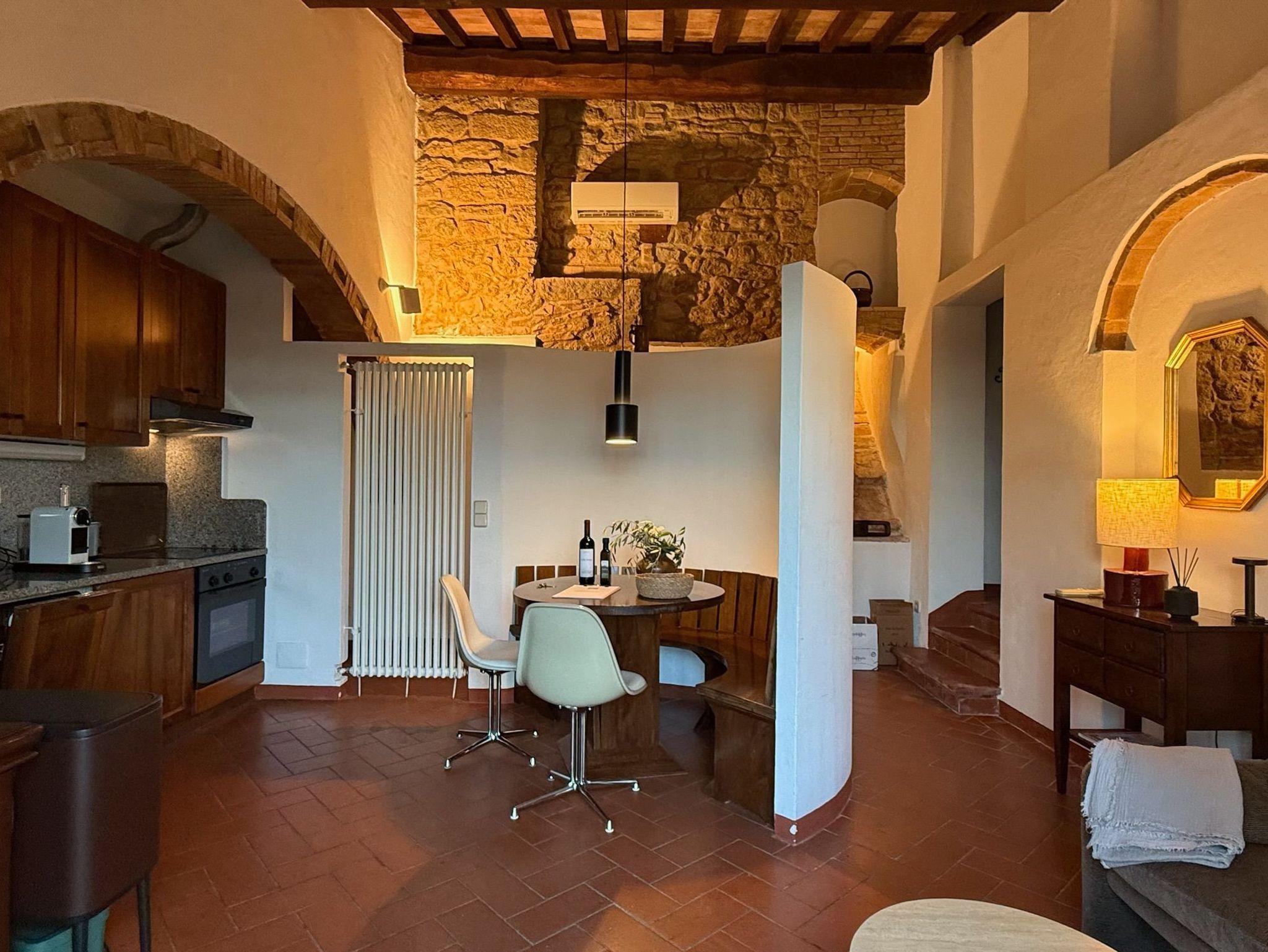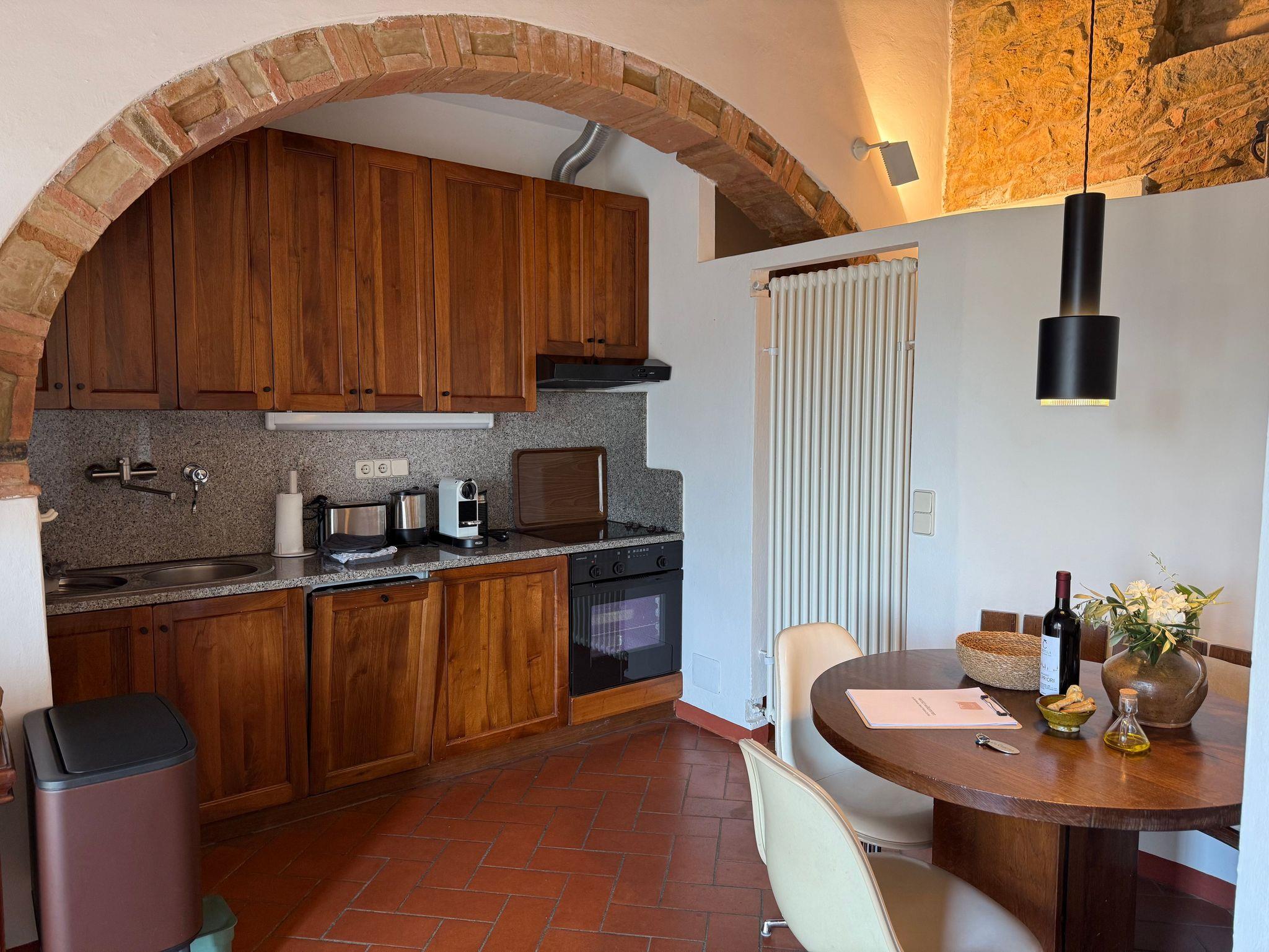 Podere Cortilla ist ein toskanisches Weingut, ein altes Landhaus, gelegen auf einem Berghang nahe der alten Etruskerstadt Volterra in einer der schönsten Landschaften der Toskana. Im Landhaus gibt es fünf Ferienwohnungen mit insgesamt etwa 20 Betten. Zum Objekt gehören mehr als 20 Hektar Land mit Wald, Wiesen, Feldern, Weinbergen und Olivenhainen. Podere Cortilla ist eine azienda agrituristica, das ist ein Bauernhof, in dem zugleich auch Ferienwohnungen vermietet werden. Hier bekommen Sie naturreinen Wein und bestes Olivenöl aus eigener Produktion - direkt in der fattoria. Podere Cortilla wurde in mehrjähriger Arbeit liebevoll restauriert, die rustikale mittelalterliche Bausubstanz mit dem heute möglichen Komfort verbunden. Alle Wohnungen sind großzügig geschnitten und komfortabel in toskanischem Stil eingerichtet. Sie liegen in separaten Gebäudeteilen mit eigenen Eingängen, so dass Sie ungestört wohnen. Ein Highlight für alle Gäste ist der schön gelegene große Pool (14m x 7m) mit moderner Salzwasseranlage statt Chlor. Ein zentraler Grillplatz lädt ein zu sommerlichen Mahlzeiten im Freien. Es gibt eine leistungsstarke Solaranlage für die eigene Stromversorgung auf dem geräumigen Carport, auch die Warmwasserzubereitung erfolt mit Sonnenernegie.