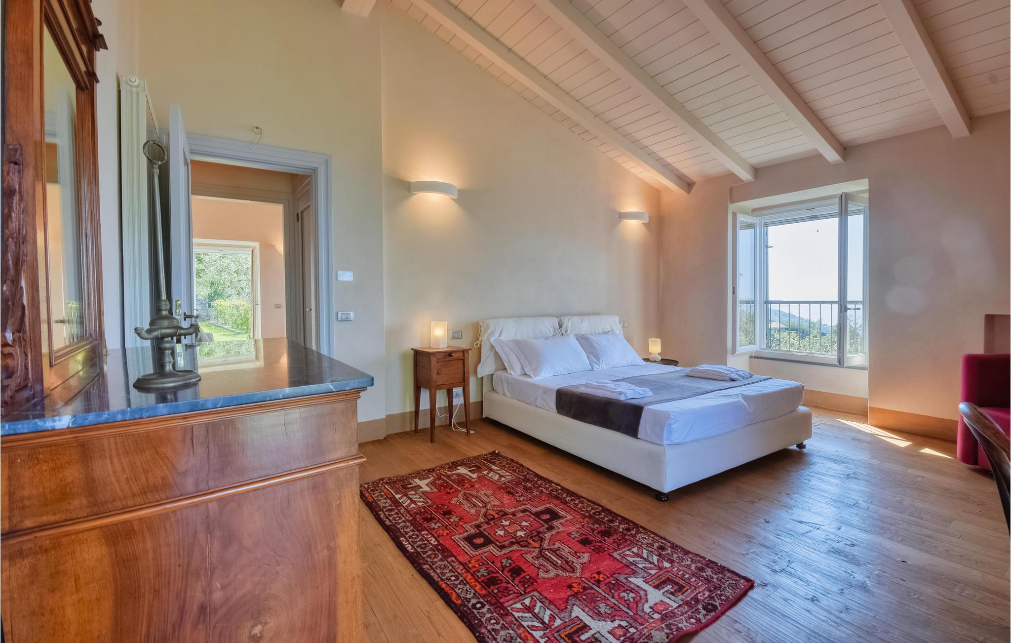 Denne imponerende villa med flere boligenheder ligger ud til et fantastisk panorama i en smuk olivenlund. Ejendommen kan kun nås til fods, via en smal sti op ad bakke mellem tørre stenmure. Fra huset har man en storslået udsigt over hele Tigullio-bugten. På en klar dag kan profilen af ??Korsika ses i horisonten. Nyd dagens pauser i de stilfuldt designede værelser og glæd jer over de vidunderlige omgivelser.