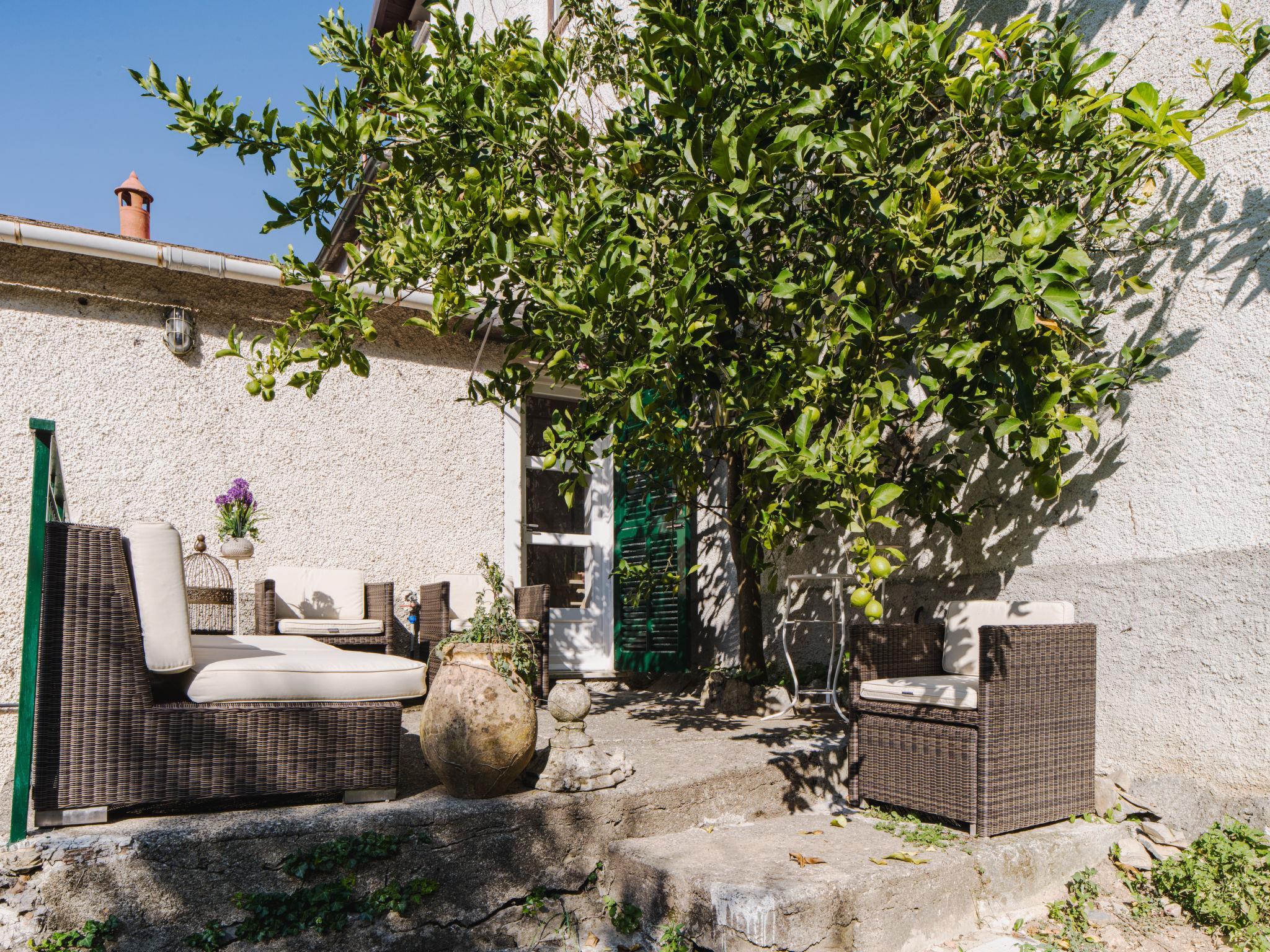 3-room semi-detached house 70 m2, on the upper floor. Partly renovated in 2025, rustic and tasteful furnishings: living/sleeping room with 1 sofabed and TV. Exit to the garden. 1 double bedroom with fan. 1 room with 2 beds. Kitchen (4 induction hot plates, kettle, microwave, electric coffee machine) with dining table. Shower/bidet/WC. No heating option. Garden. Terrace furniture, deck chairs (2). Distant view of the sea and the valley. Facilities: hair dryer. Internet (WiFi, free). Please note: not suitable for small children. Smoke alarm, fire extinguisher. The shower head is 170cm high. IT010067C2AIII6UU8