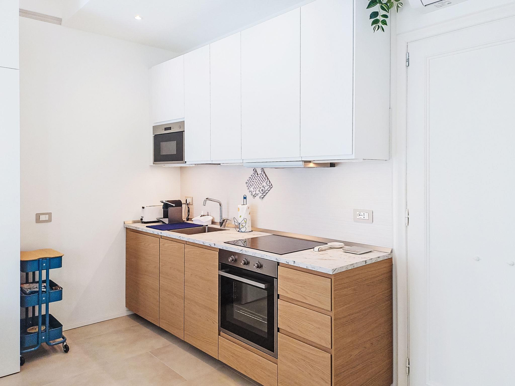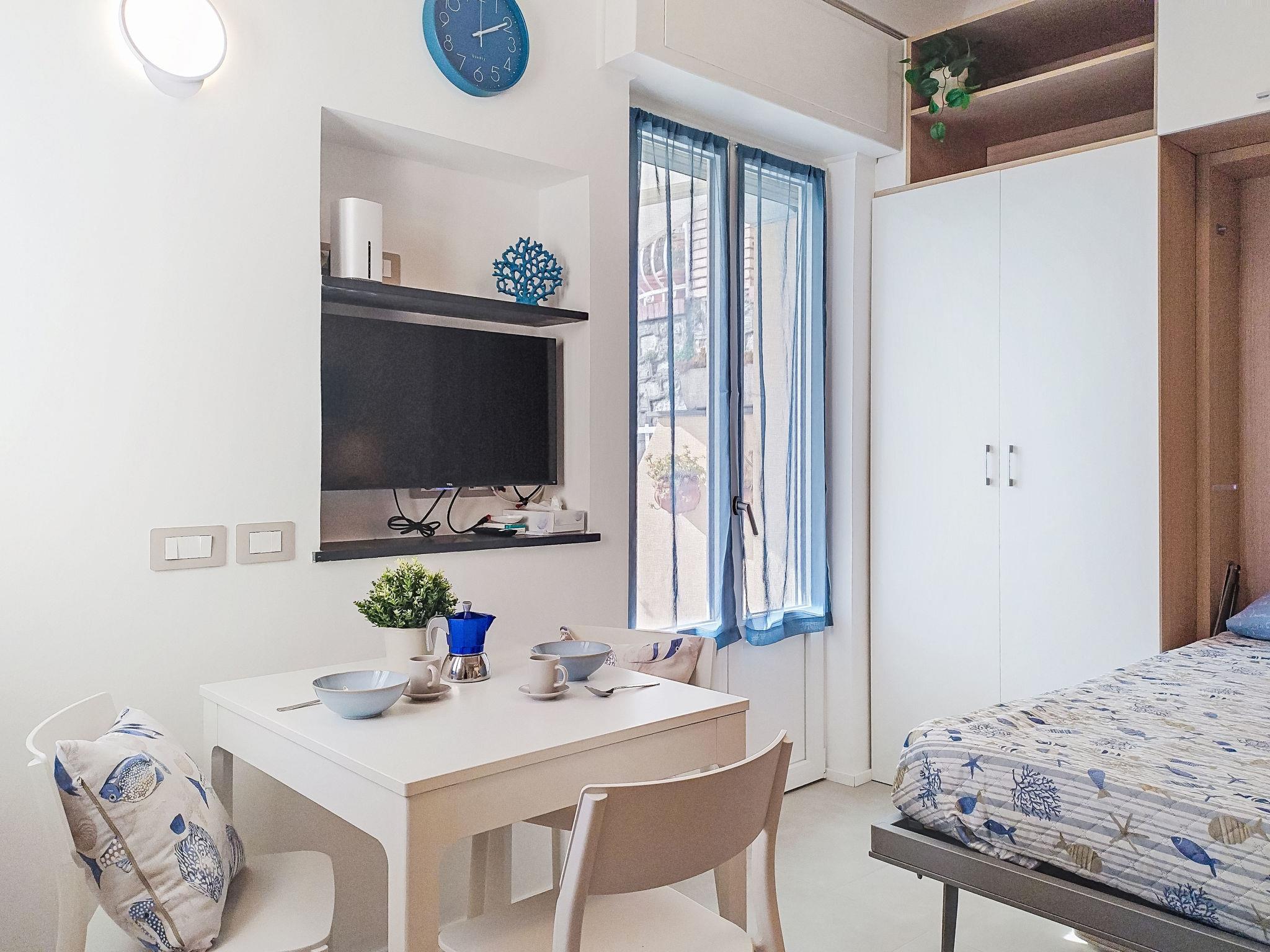 "Laccadiva", 1-room studio 25 m2 on 2nd floor. Fully renovated in 2025, practical and modern furnishings: living/sleeping room with 1 double fold-away bed (160 cm), dining table, TV and electric shutters. Exit to the terrace. Kitchenette (oven, dishwasher, 4 induction hot plates, kettle, microwave, electric coffee machine). Shower/WC. Air-conditioning, forced-air heating. Terrace 15 m2. Terrace furniture, deck chairs (2). Very beautiful view of the sea. Facilities: washing machine, hair dryer. Internet (WiFi, free). Parking (1 car). Please note: non-smoking house. Smoke alarm, fire extinguisher. IT010067C24548AVA9