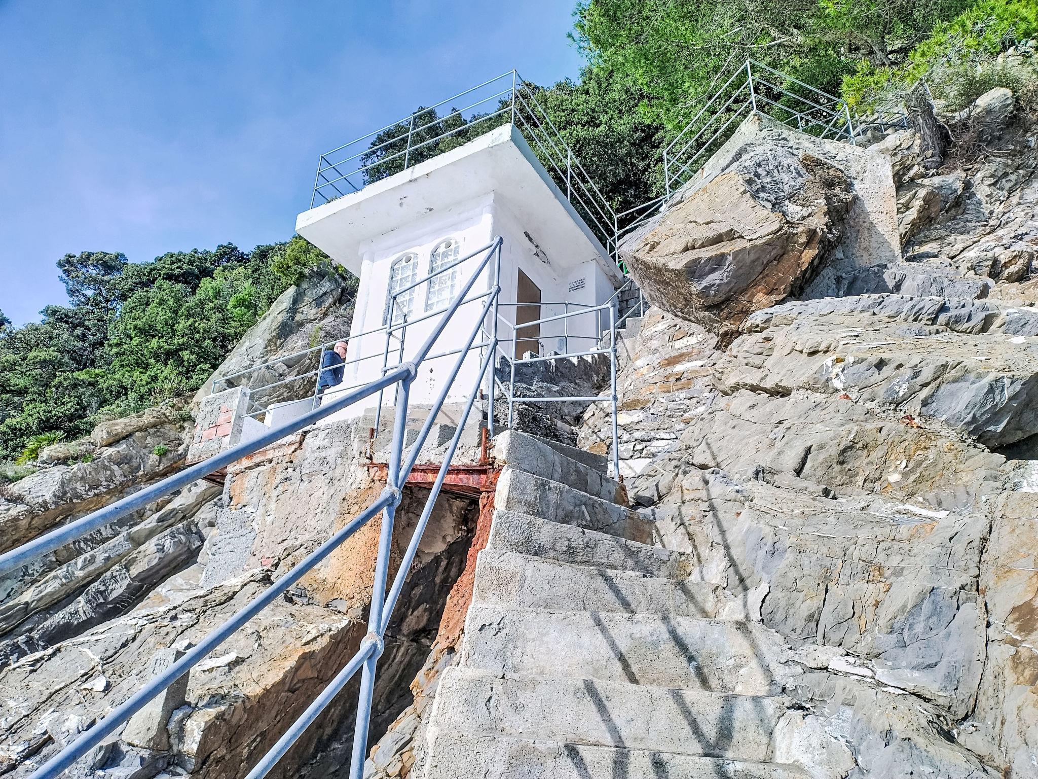 Comfortable apartment house. 11 apartments in the property. 2.2 km from the centre of Zoagli, 2.4 km from the centre of Rapallo, on a slope, 100 m from the sea. For shared use: property with trees. Private beach. Motor access to the house. Supermarket 2 km, restaurant 1.5 km, bar 1.5 km, bus stop 200 m, railway station "Rapallo" 2.8 km, pebble beach "Marina di Bardi" 400 m, rocky beach 100 m. Golf course (18 hole) 4.5 km. Nearby attractions: Santa Margherita Ligure 5.6 km, Chiavari 9 km. Please note: car recommended, no lift. Neighbourhood highly sensitive to noise. Quietness and good behaviour expected. The rocky beach can be reached via a steep staircase (about 300 steps).