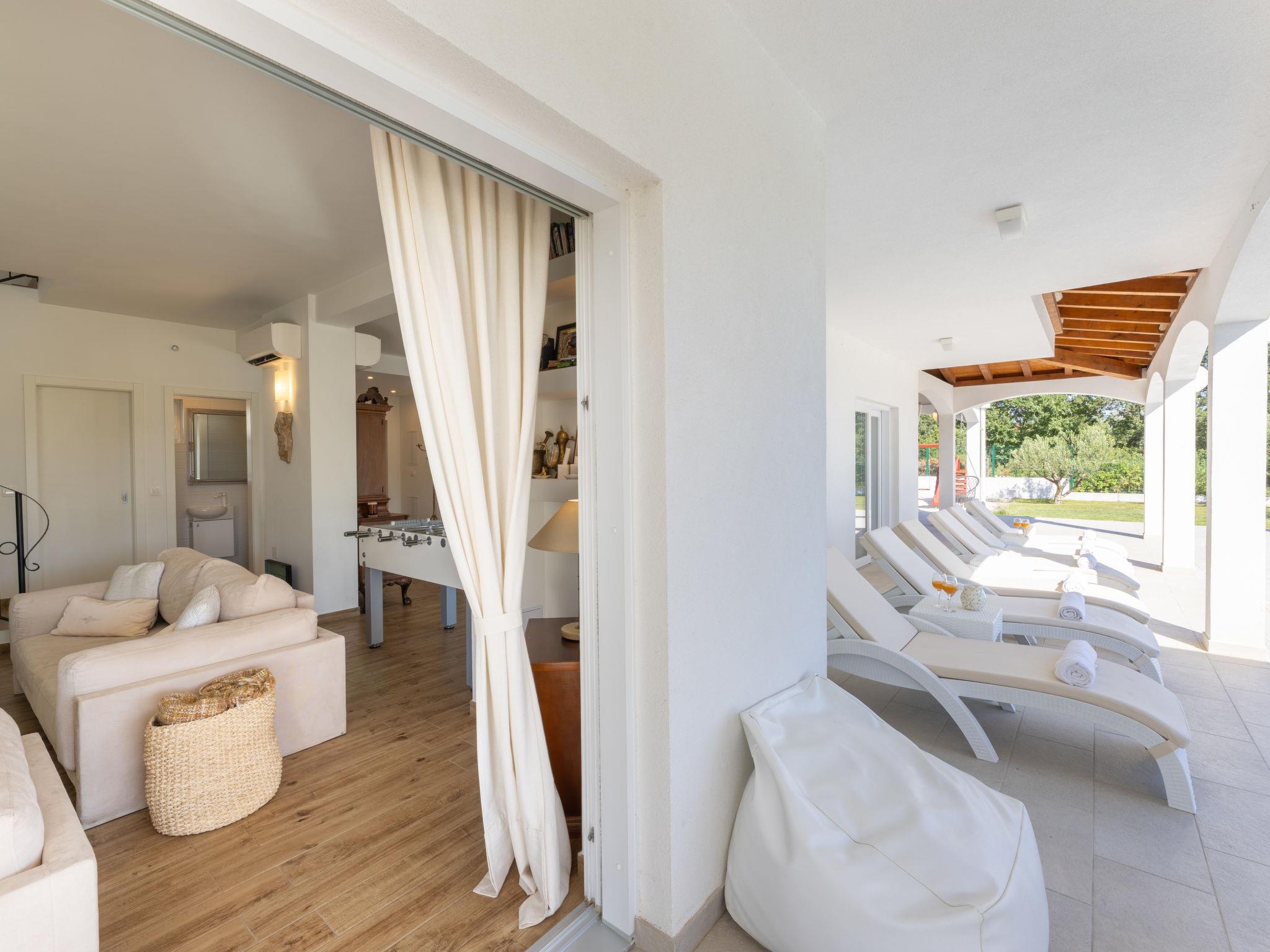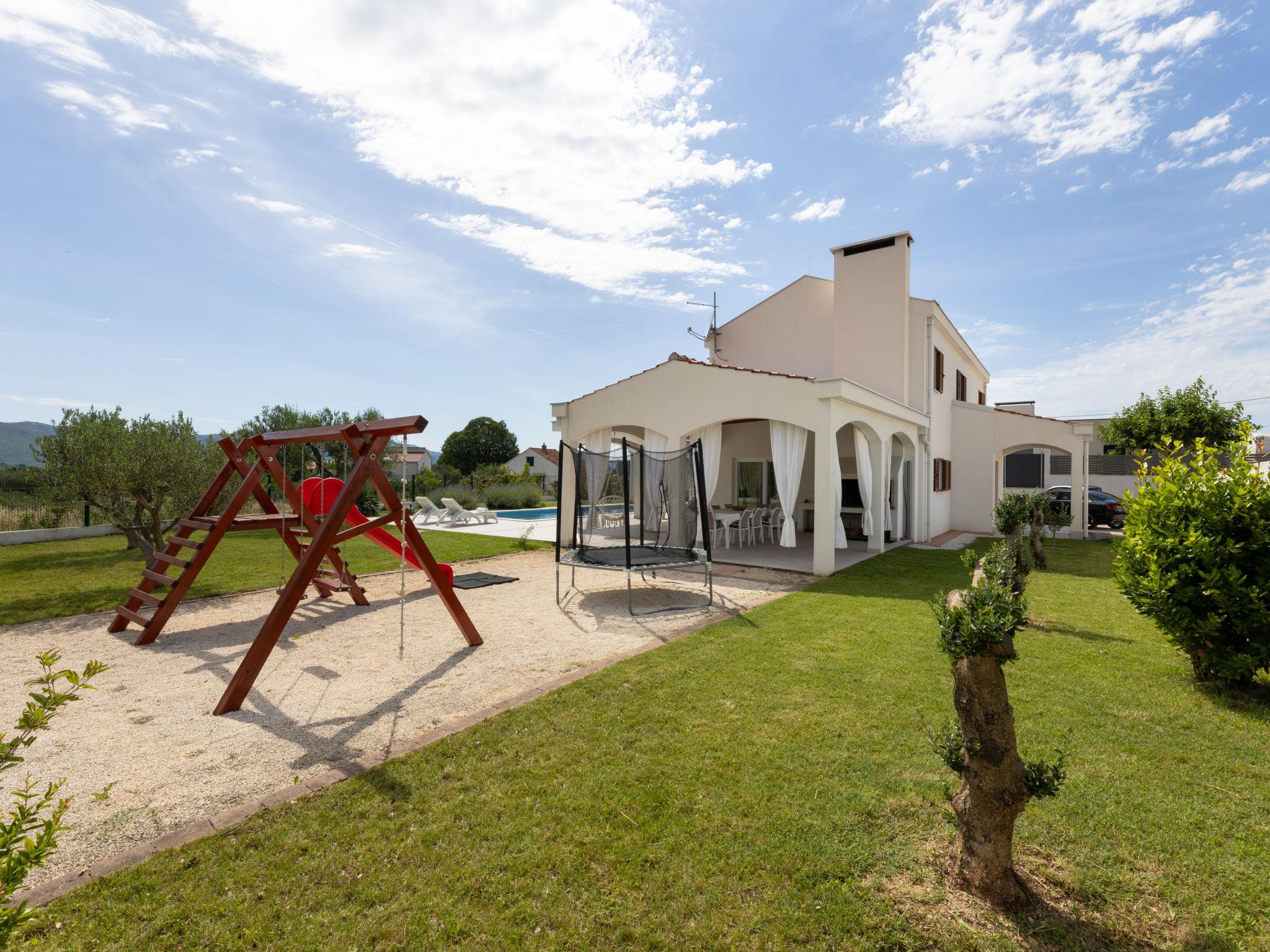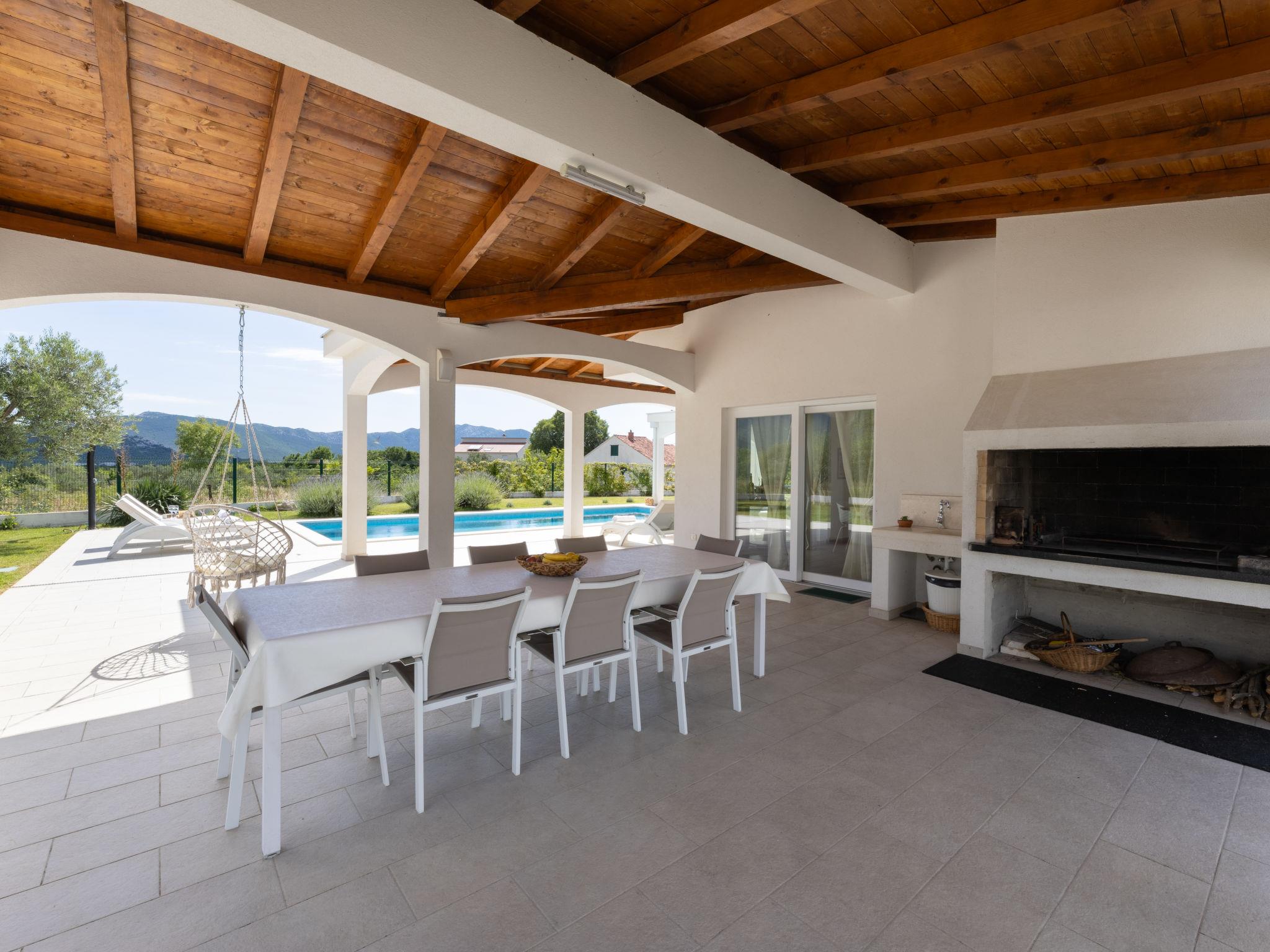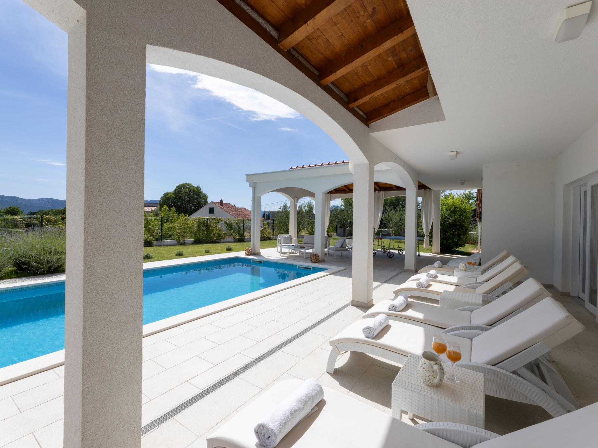 Large villa "Olivia", 2 storeys. 300 m from the centre of Šestanovac, in a quiet, sunny position, 12 km from the sea, 20 km from the beach, 7 km from the river. Private: property 1'300 m2 (fenced), beautiful, well-kept garden with lawn, swimming pool angular (40 m2, seasonal availability: 15.Apr. - 01.Nov.) with internal staircase and salt-electrolysis pool-cleaning system. Outdoor shower, pergola (106 m2), children's playground (slide, swing), pool maintenance by the owner/gardener. In the house: internet access, table tennis, table football, trampoline, washing machine. Parking (for 5 cars) at the house on the premises. Supermarket 330 m, restaurant 3.2 km, café 275 m, bus stop 340 m, pebble beach 20 km. Please note: airfield 65 km from the property.