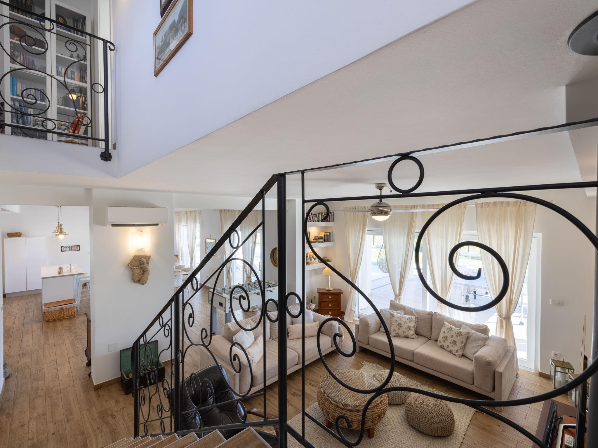 5-room villa 170 m2 on 2 levels. Large living/dining room 68 m2 with satellite TV and air conditioning. Exit to the terrace. Open kitchen (oven, dishwasher, 4 ceramic glass hob hotplates, toaster, kettle, freezer, electric coffee machine). Exit to the terrace. Sep. WC. Upper floor: 1 room with 1 double bed (180 cm, length 200 cm), satellite TV and air conditioning. 1 room with 1 french bed (160 cm, length 200 cm), shower/WC, satellite TV and air conditioning. Exit to the balcony. 1 room with 1 double sofabed (150 cm, length 200 cm), 1 double bed (180 cm, length 200 cm), shower/WC, satellite TV and air conditioning. Exit to the balcony. 1 room with 1 french bed (160 cm, length 200 cm), shower/WC, satellite TV and air conditioning. Exit to the balcony. Shower/WC. Balcony 13 m2, balcony 5 m2. Barbecue, deck chairs (8). Facilities: safe, iron, children's high chair, baby cot for up to 2 year olds, hair dryer. Internet (WiFi, free). Maximum 2 pets/ dogs allowed.