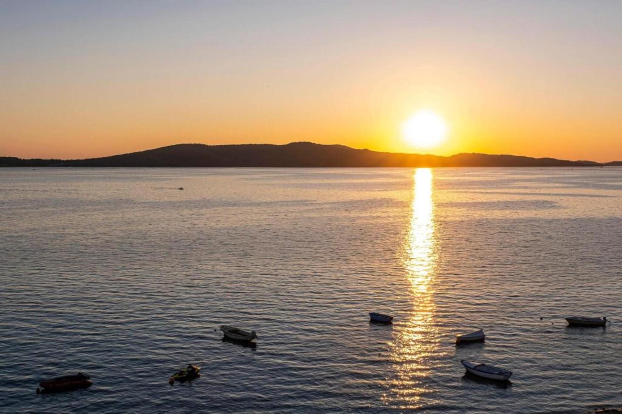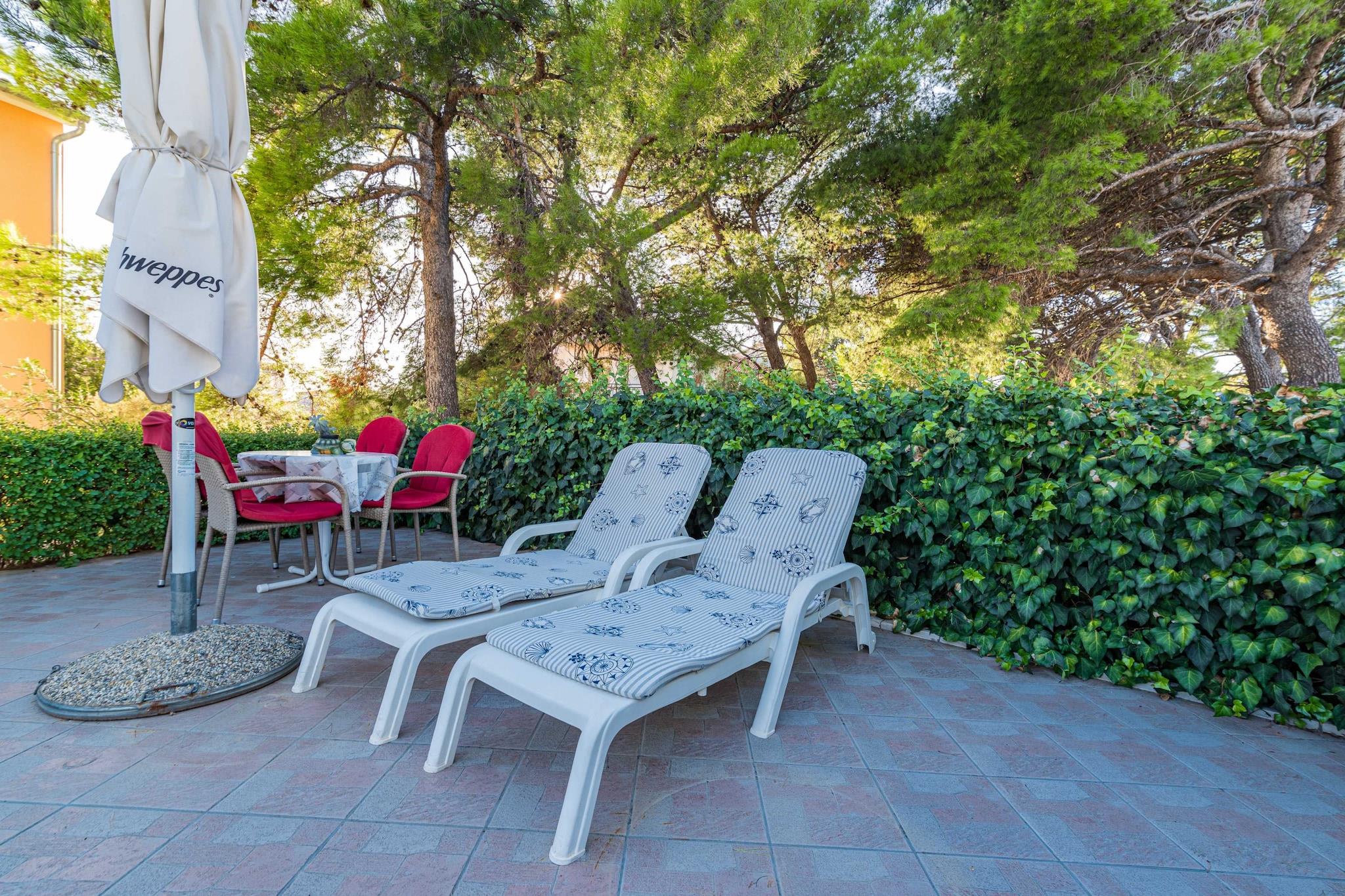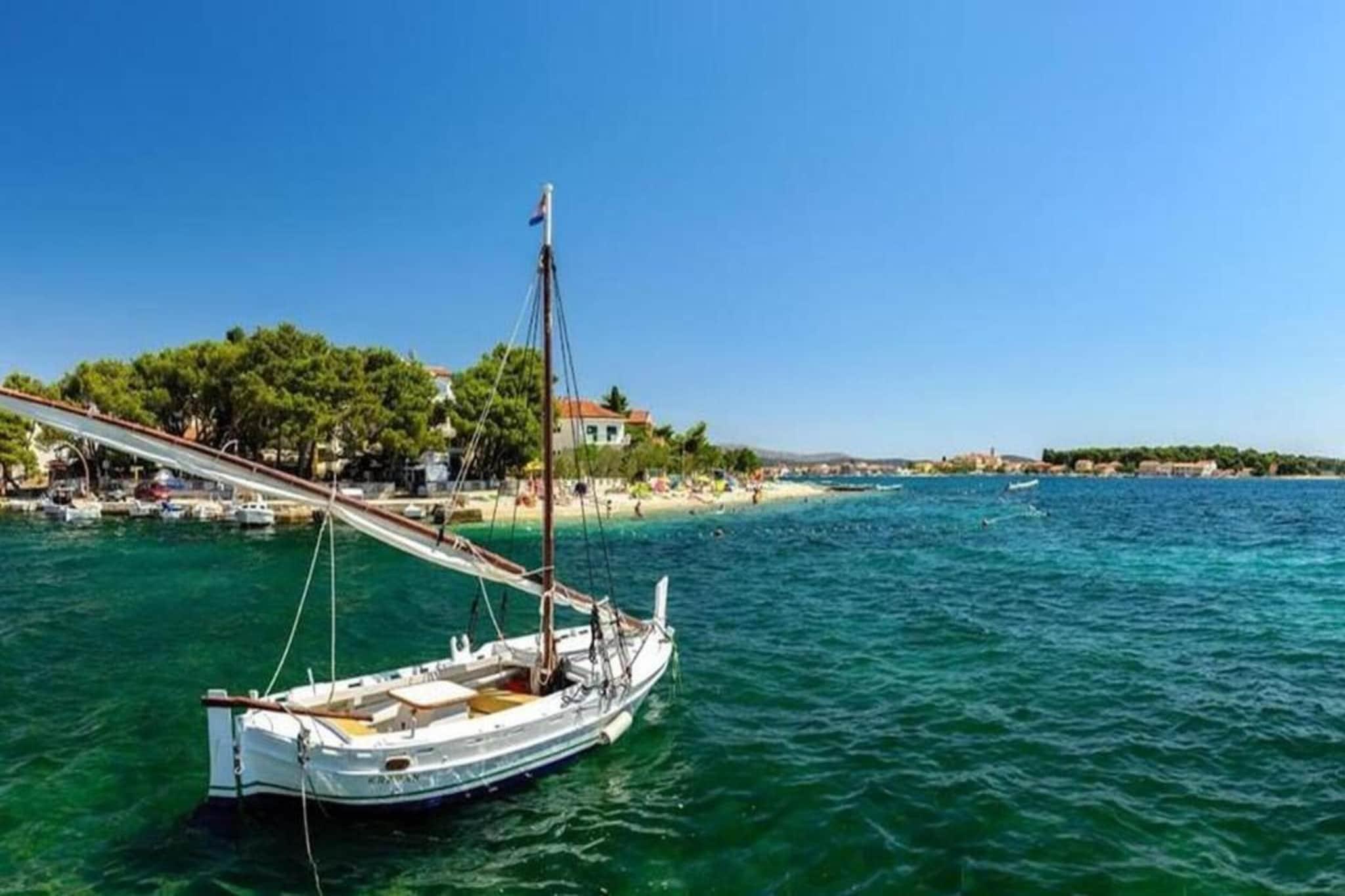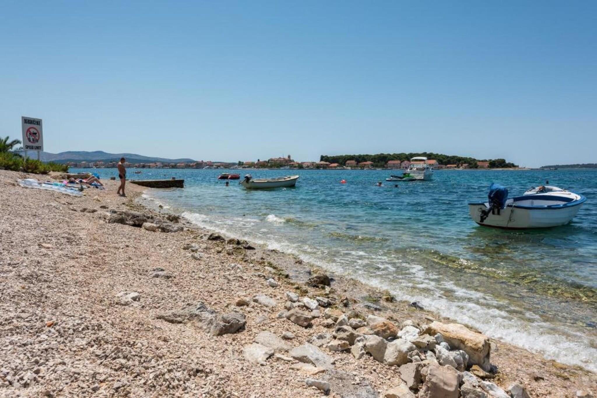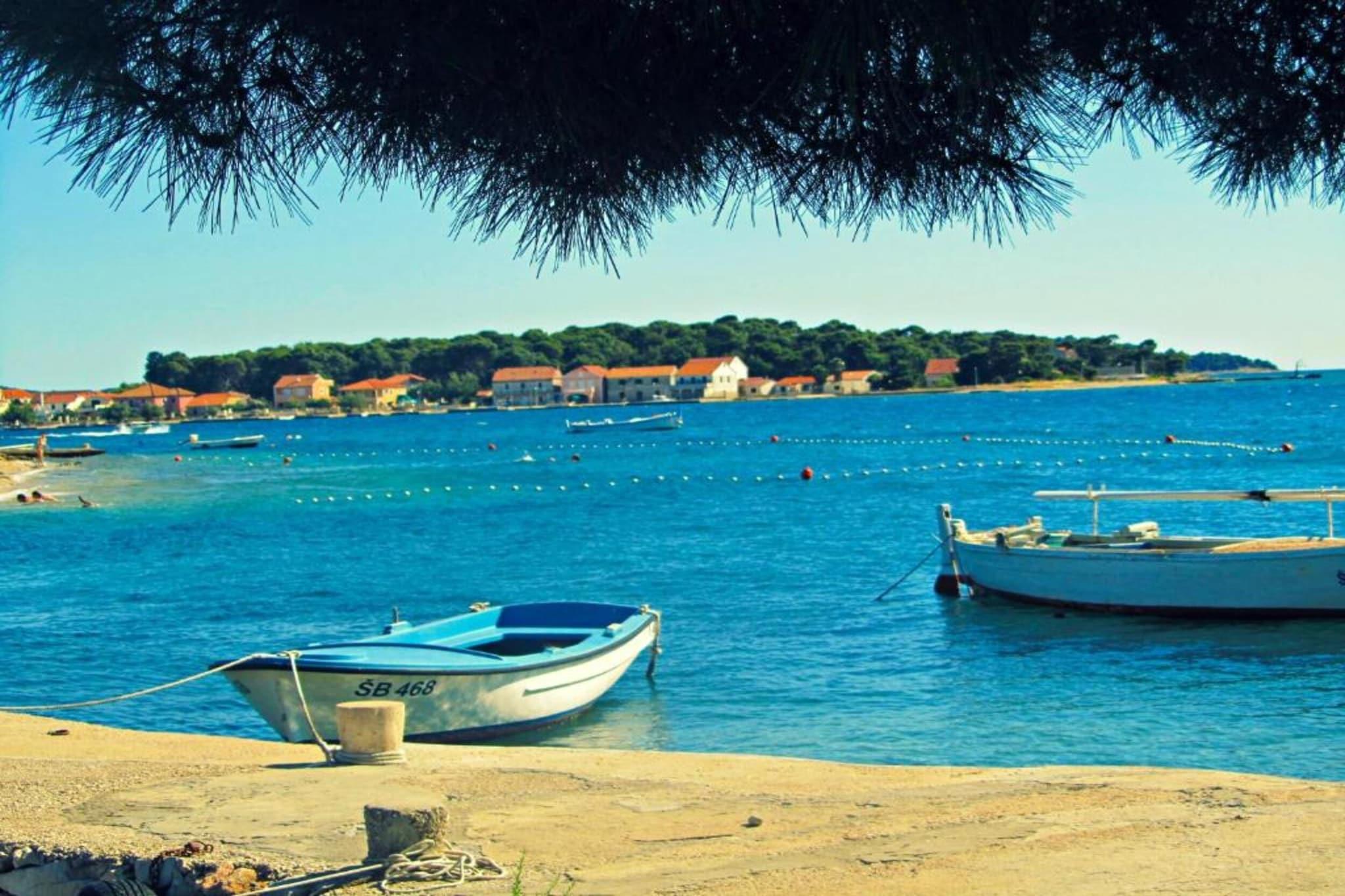 Charmerende lejlighed beliggende i det fredfyldte kystområde i Šibenik-Brodarica, dette feriehus med 1 soveværelse tilbyder et behageligt ophold for op til fire gæster. Med en queen-size seng i soveværelset og en dobbelt sovesofa i opholdsstuen er den ideel til familier eller par, der søger et roligt tilflugtssted. Ejendommen tillader ikke kæledyr eller indendørs rygning og inkluderer en privat parkeringsplads. En privat indgang og aircondition giver ekstra komfort, mens WiFi er inkluderet for problemfri tilslutning. Kun 210 meter fra sand- og klippestranden Gaj har lejligheden en bekvem beliggenhed nær Adriaterhavskysten. Væsentlige faciliteter såsom et supermarked (150 m) og populære lokale spisesteder som Konoba Oceanik (230 m) er inden for gåafstand. For kultur- og naturentusiaster ligger den UNESCO-listede Šibenik gamle bydel 8 km derfra, og den betagende Krka Nationalpark er tilgængelig inden for 17 km, og tilbyder muligheder for naturskønne dagsture. Lejligheden har et fuldt udstyret uafhængigt køkken med induktionskogeplader, køleskab, fryser, opvaskemaskine, ovn, mikroovn og kaffemaskine, hvilket sikrer lethed til selvforplejning. Et fladskærms-tv med kabelkanaler tilbyder underholdning, og udendørsområdet omfatter terrasse, have og fælles grill. Mens der ikke er havudsigt, åbner terrassen til en privat gårdhave, der giver et roligt sted til spisning og afslapning nær hovedvejen.