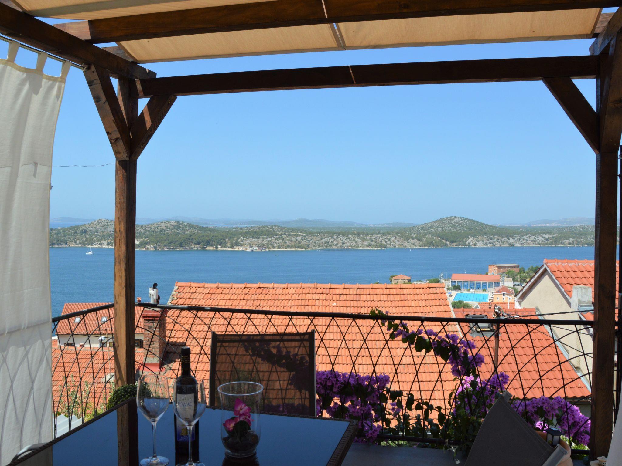 Single-family house "Elin". 700 m from the centre of Šibenik, 11 km from the centre of Vodice, in a sunny position, 700 m from the sea, 1 km from the beach, located by a road. Private: property 280 m2 (fenced), garden with flowers. Barbecue. In the house: internet access, washing machine. Parking at the house on the premises. Shop 280 m, restaurant 700 m, bus stop 300 m, pebble beach 1 km. Marina 3.5 km, tennis 1.4 km. Nearby attractions: NP Krka 13 km. Ground floor is closed and not occupied.